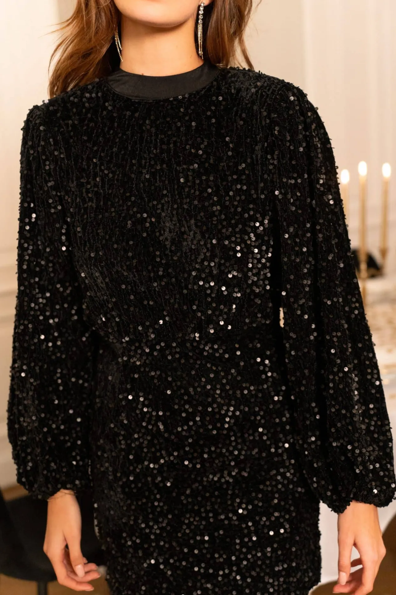 – Robe courte à sequins