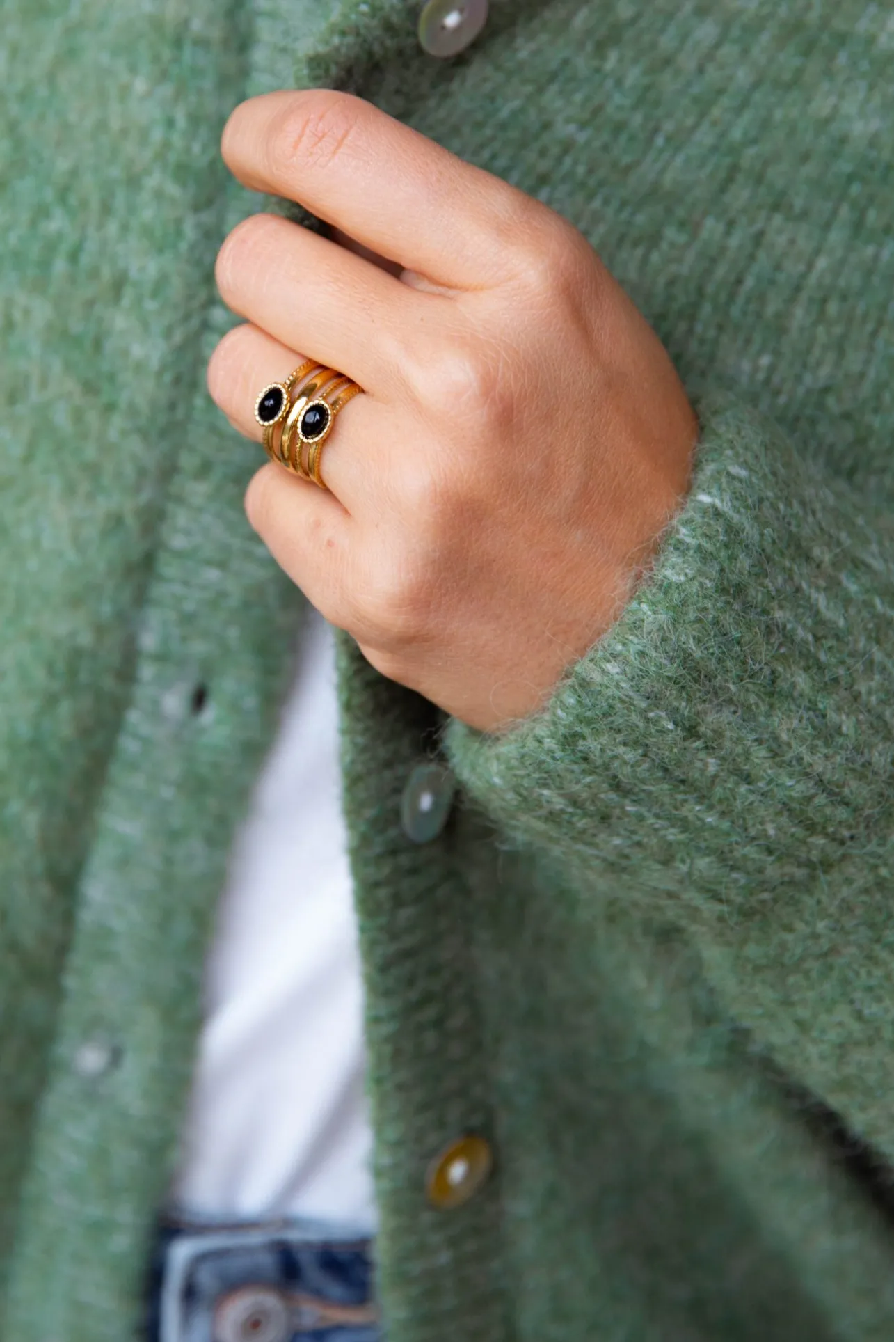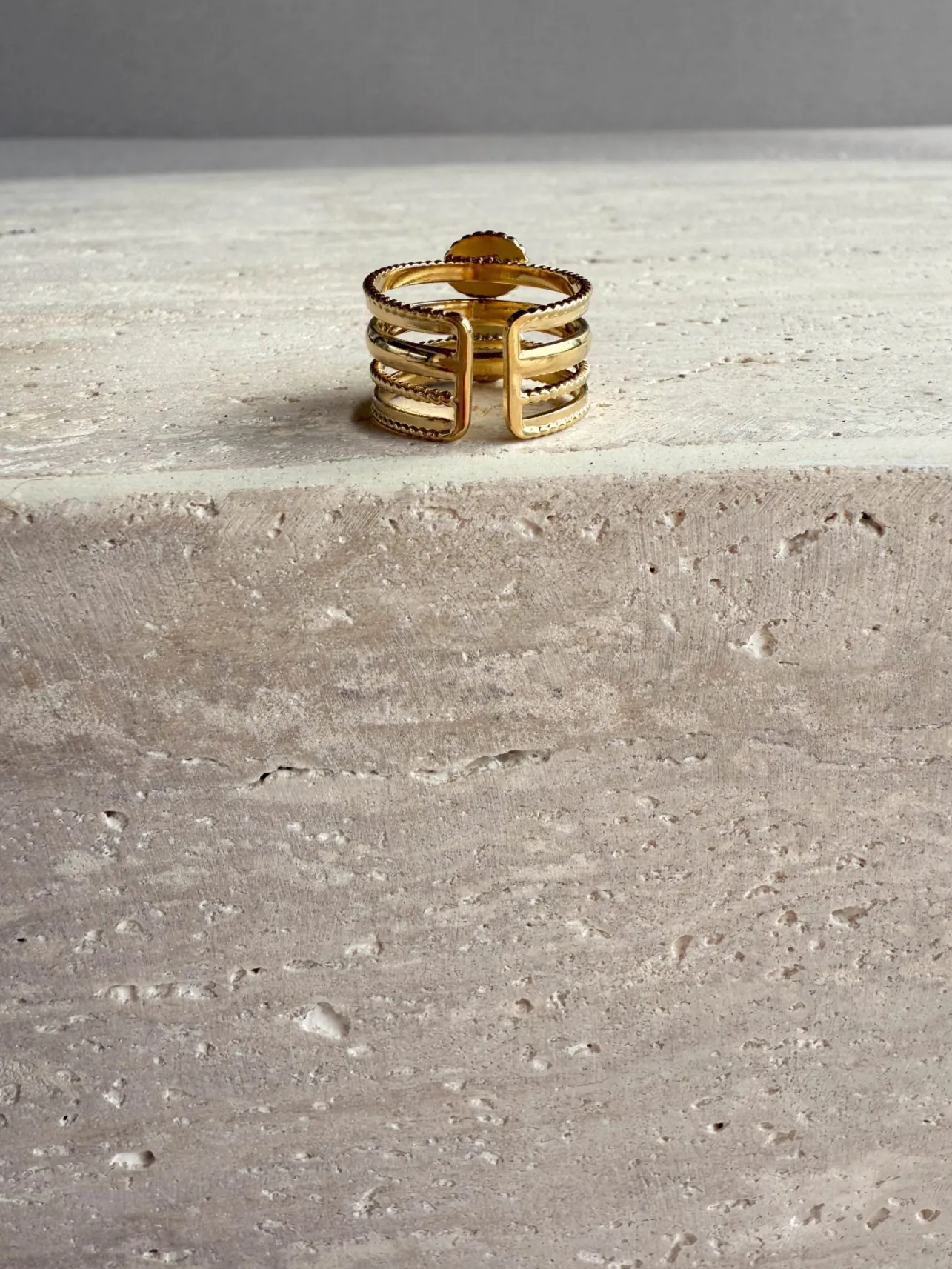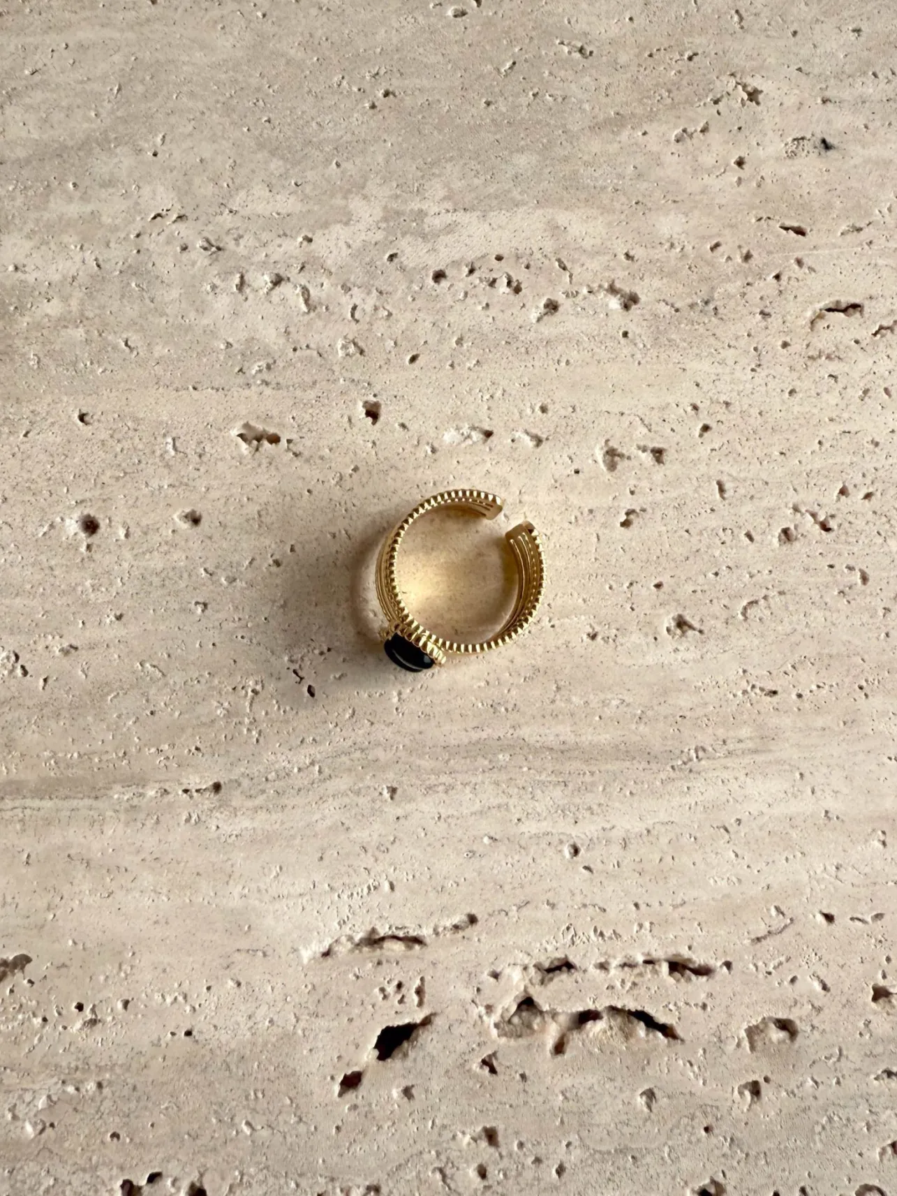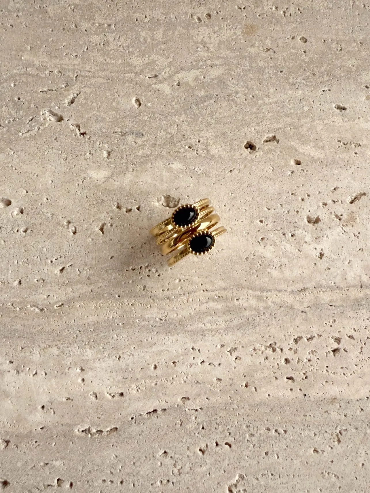 – Bague ouverte ajustable– Quatre anneaux ouverts– ornée de deux pierres noires– En acier inoxy…