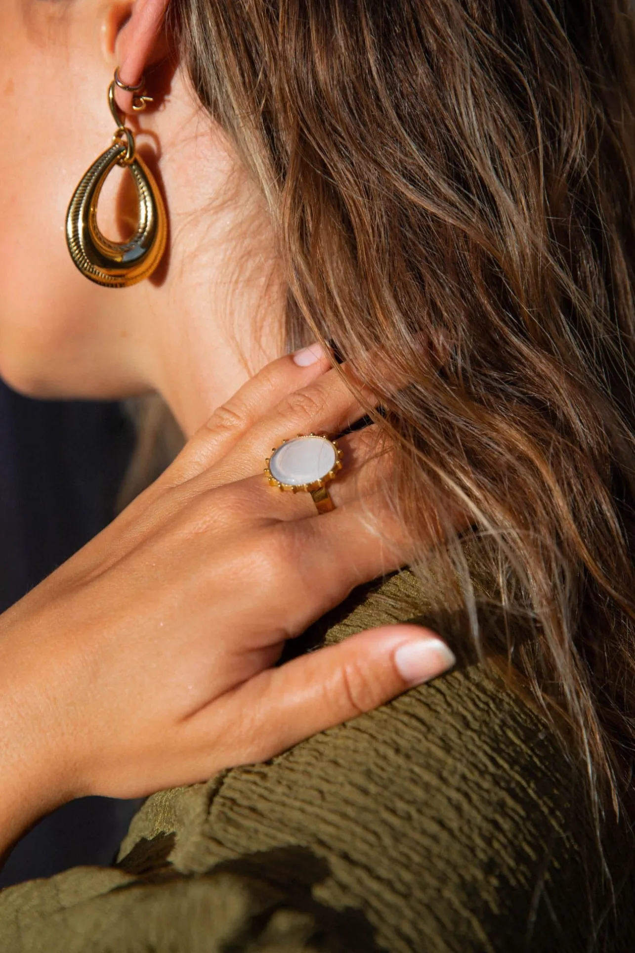 – Bague dorée– Taille unique ajustable– Acier inoxydable