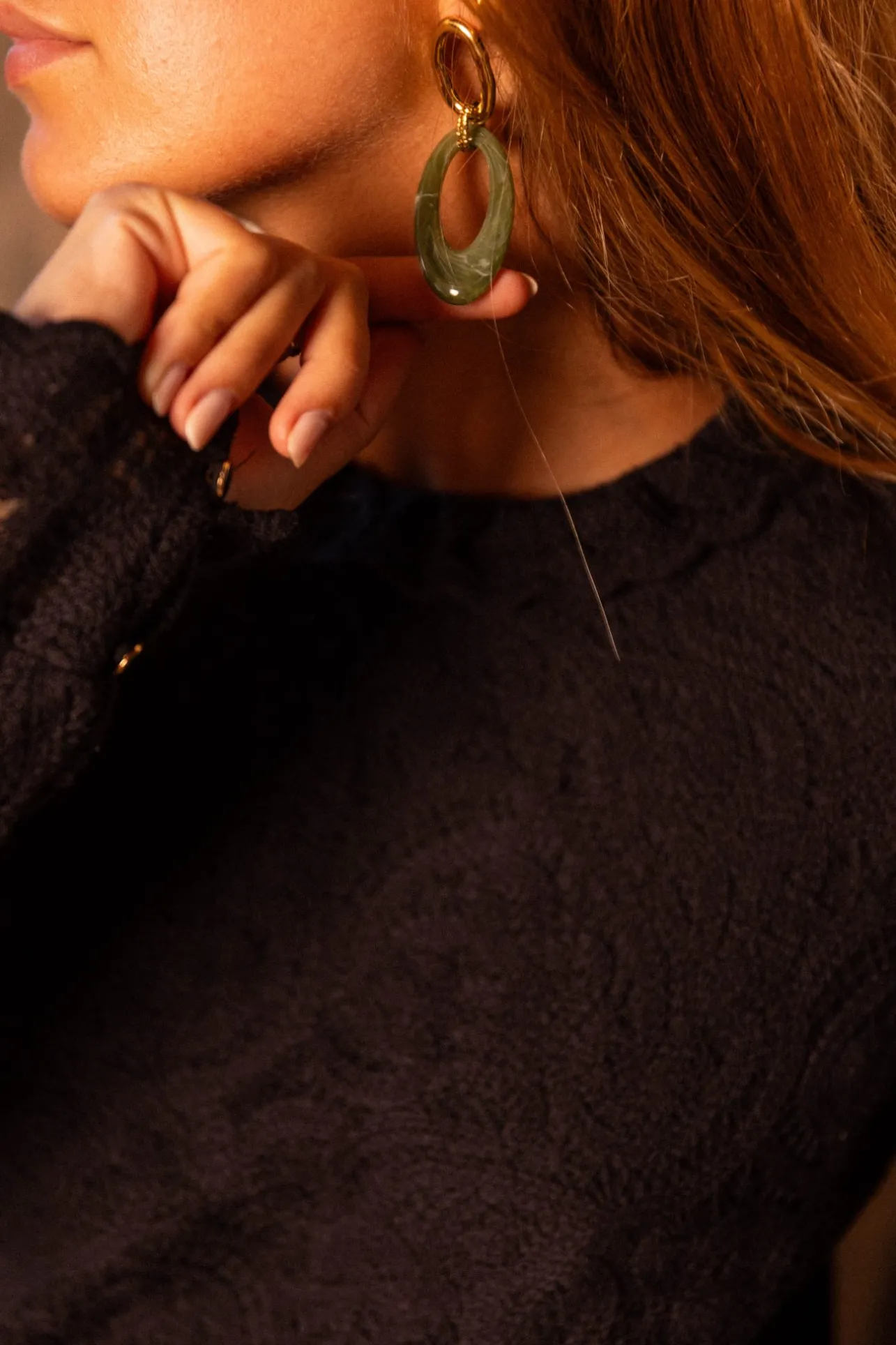 Boucles d’oreilles en acier inoxydable– Fermoir pour oreilles percées– Couleur : doré et vert