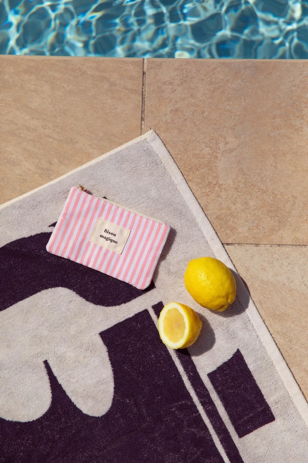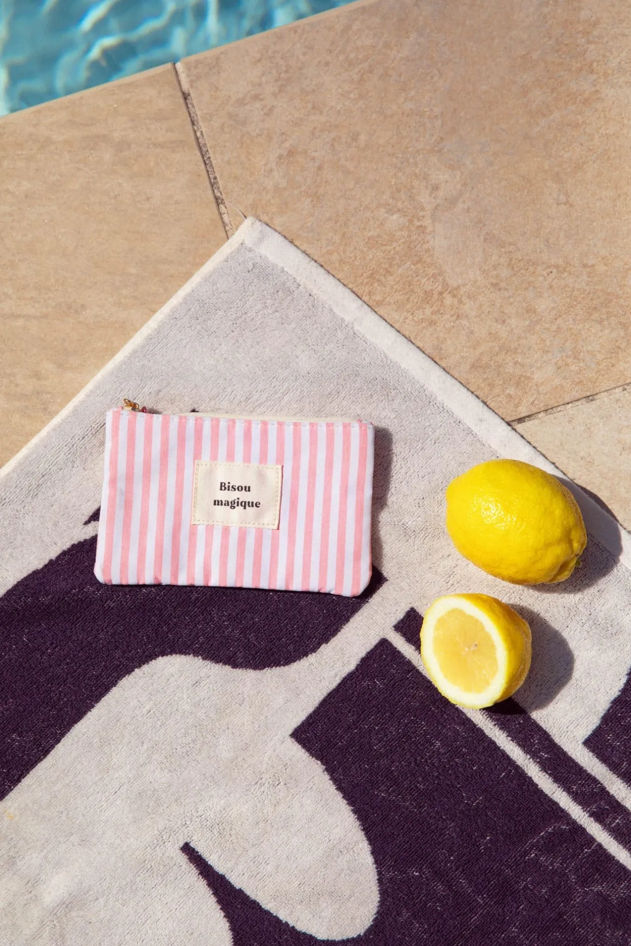 – Pochette à rayures– Fermeture dorée– Couleur : rose et blanc