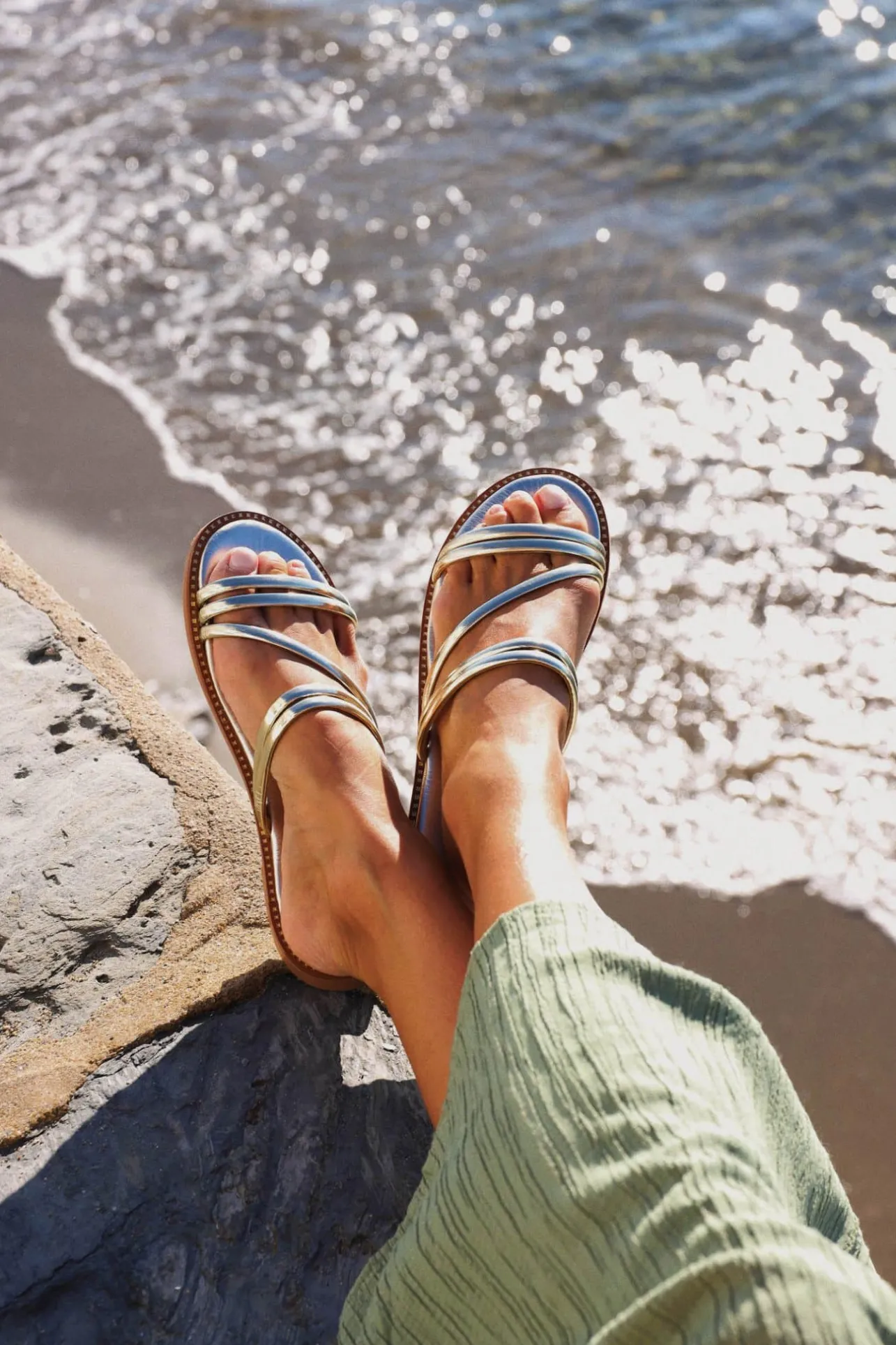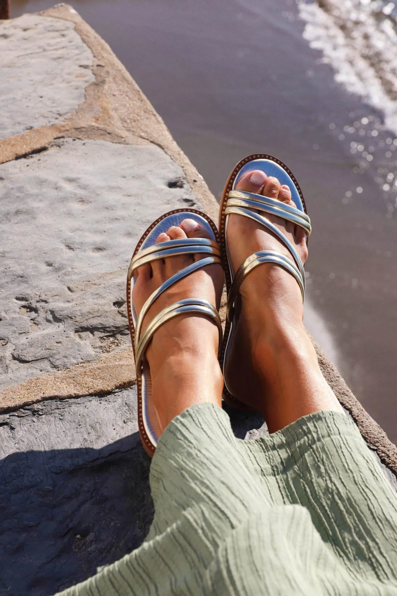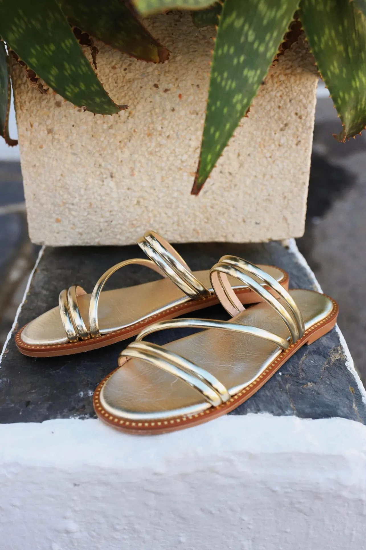 – Sandales dorées en cuir– Fabriquées en Grèce– Semelle intérieure en mousse pour un confort absol…