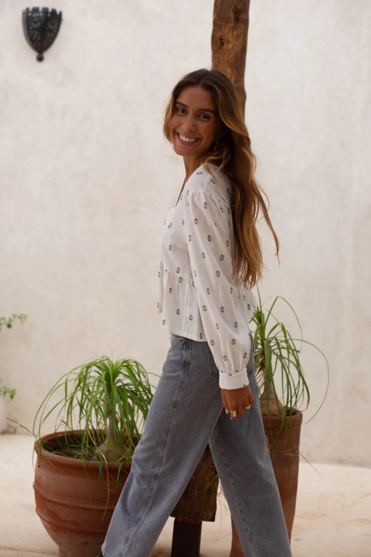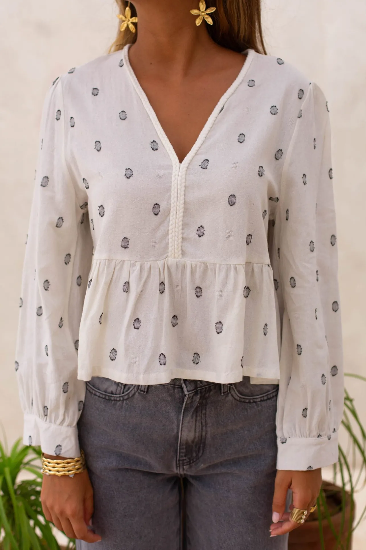 – Blouse manches longues– Détail tressé sur le decolleté– Détails broderies– Couleur : blanc et noirLe manne…