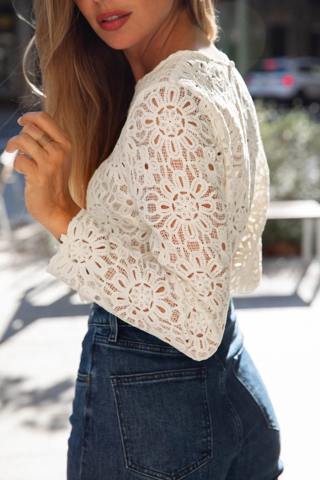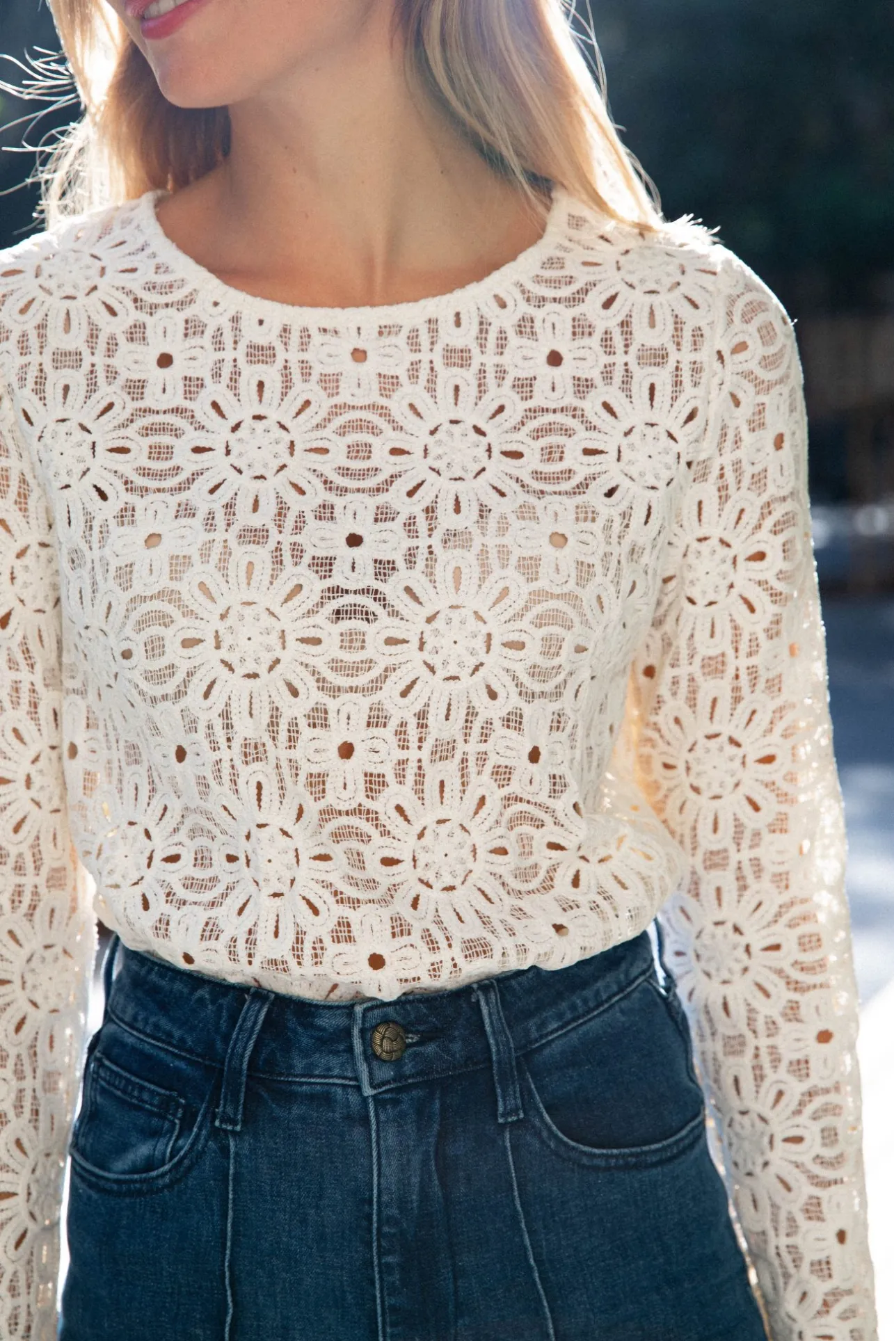 – Blouse en dentelle– Manches longues– Fermeture par bouton au dos– Couleur : écru