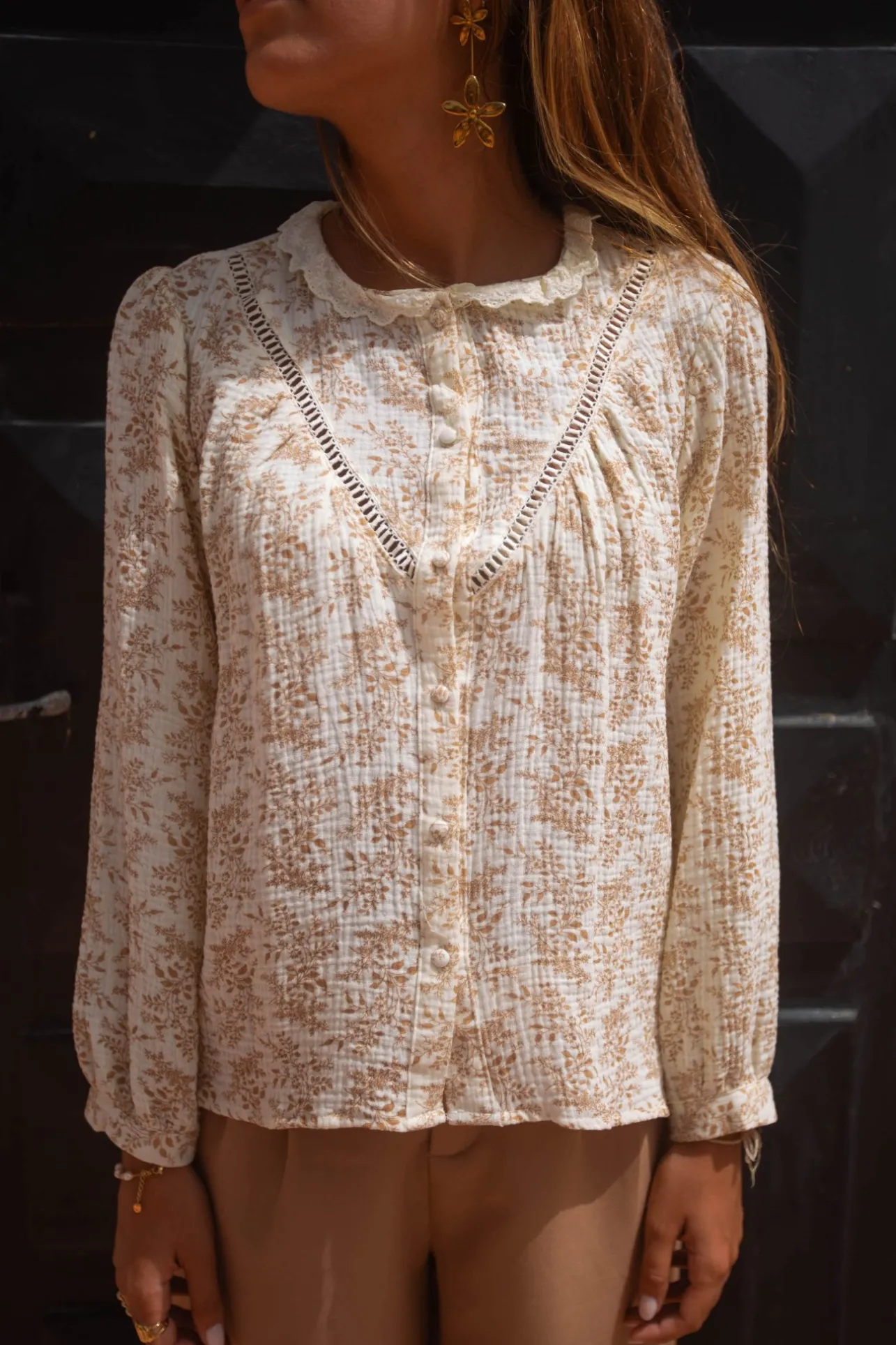 – Chemise en gaze de coton– Manches longues resserrées aux poignets– Fermeture par boutons à l’…