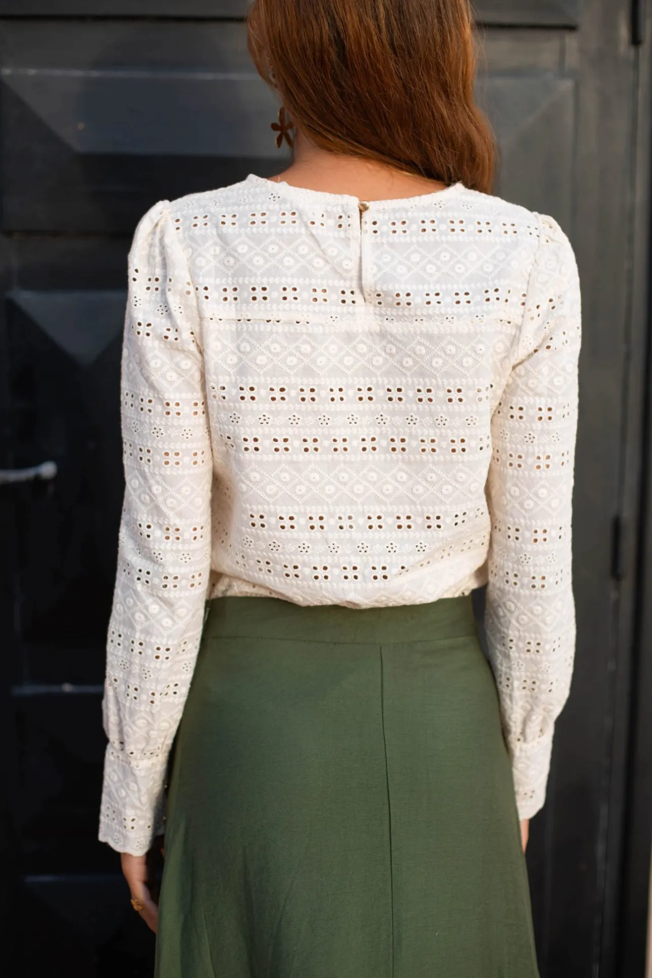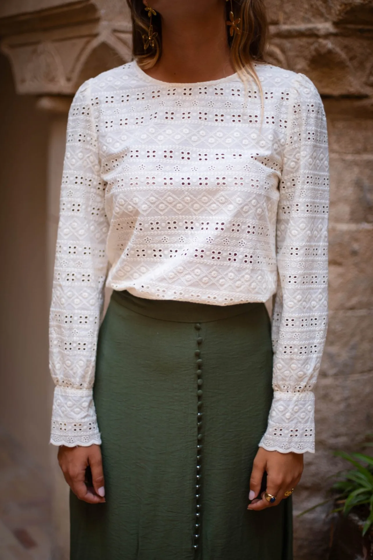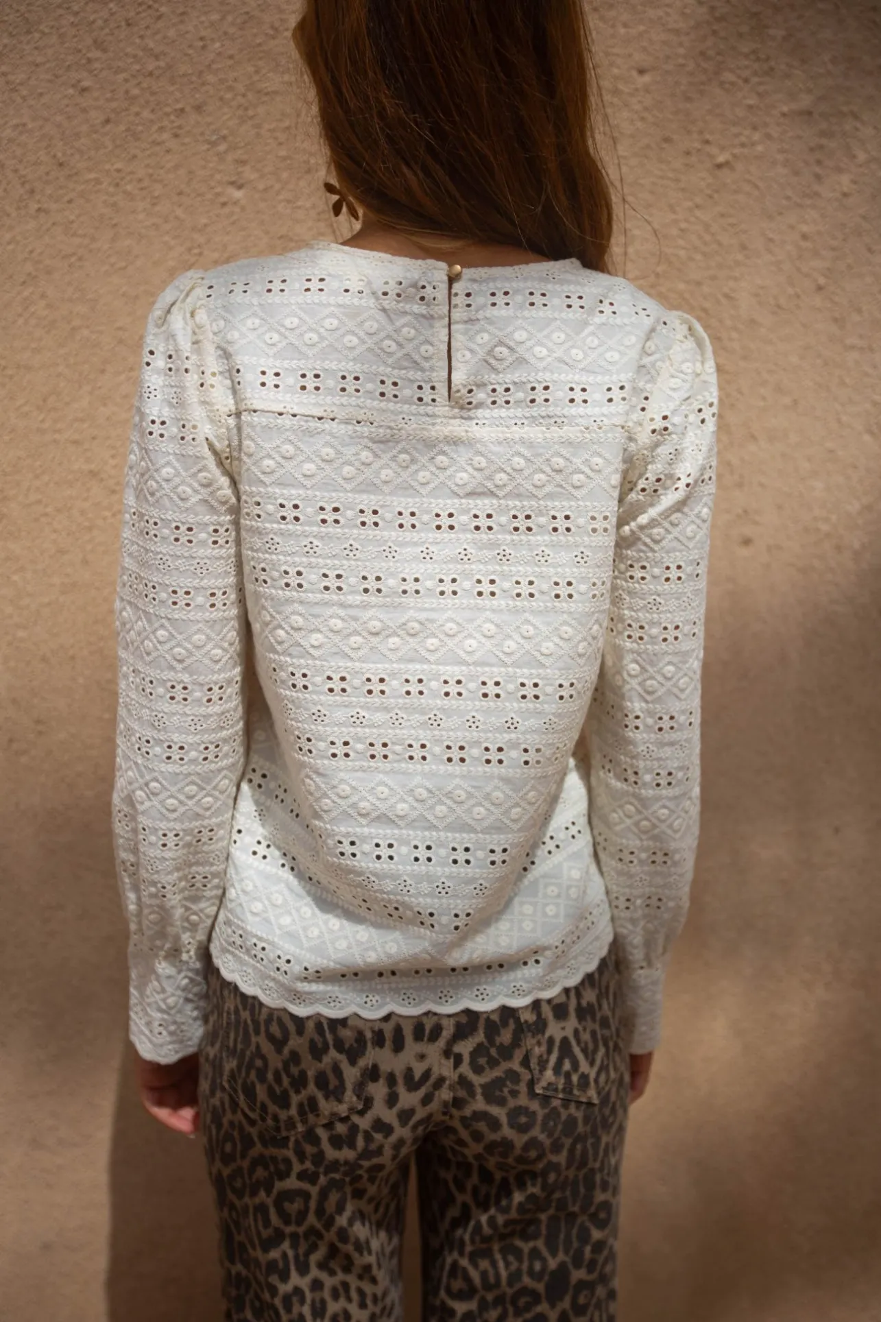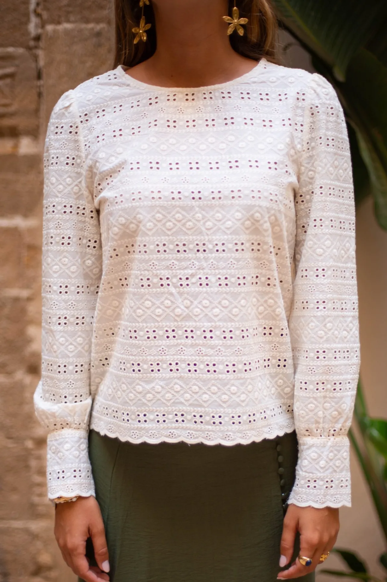 – Blouse manches longues– Tissu ajouré– Boutons dorés aux manchettes– Fermeture par bouton à …