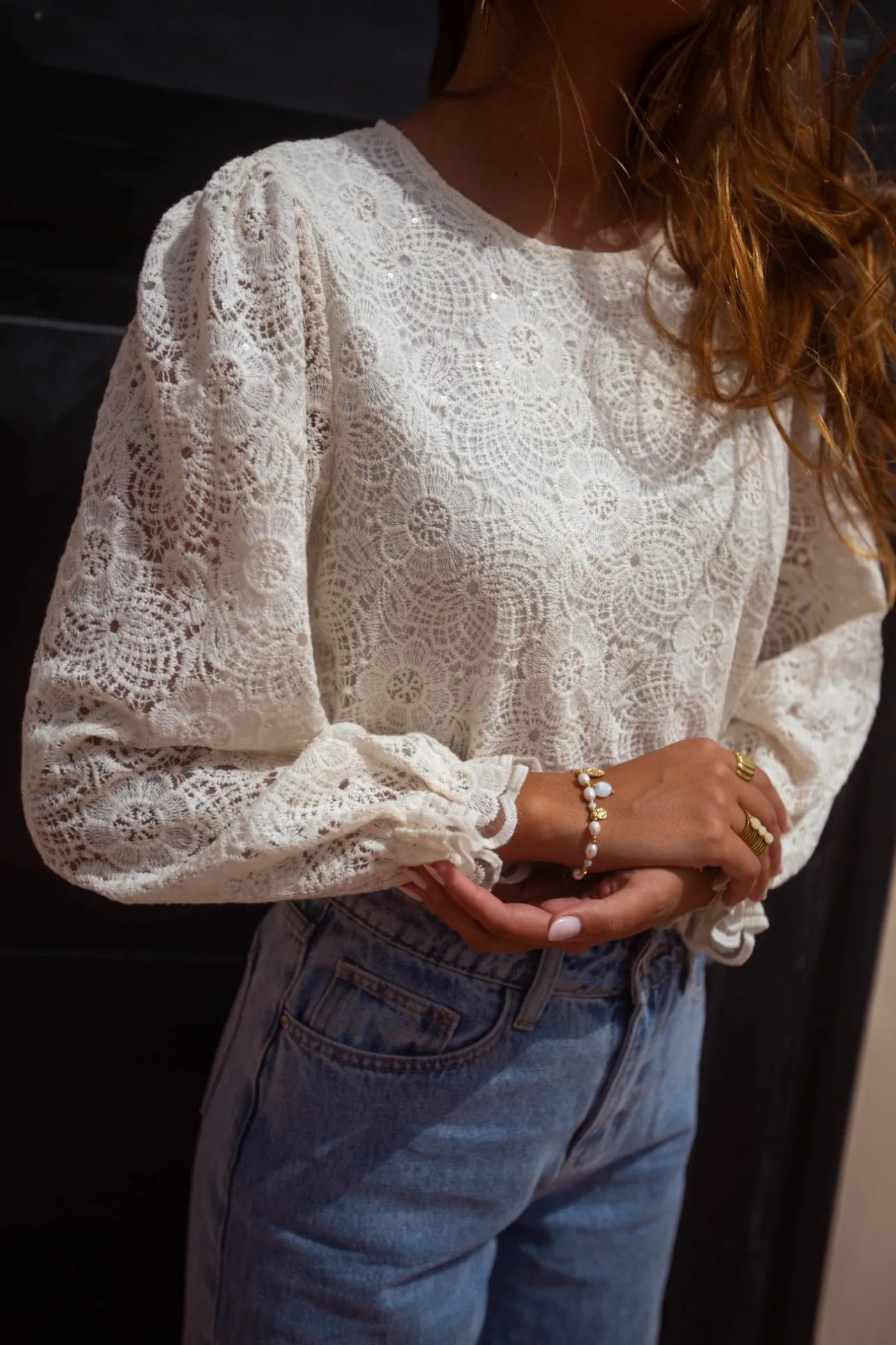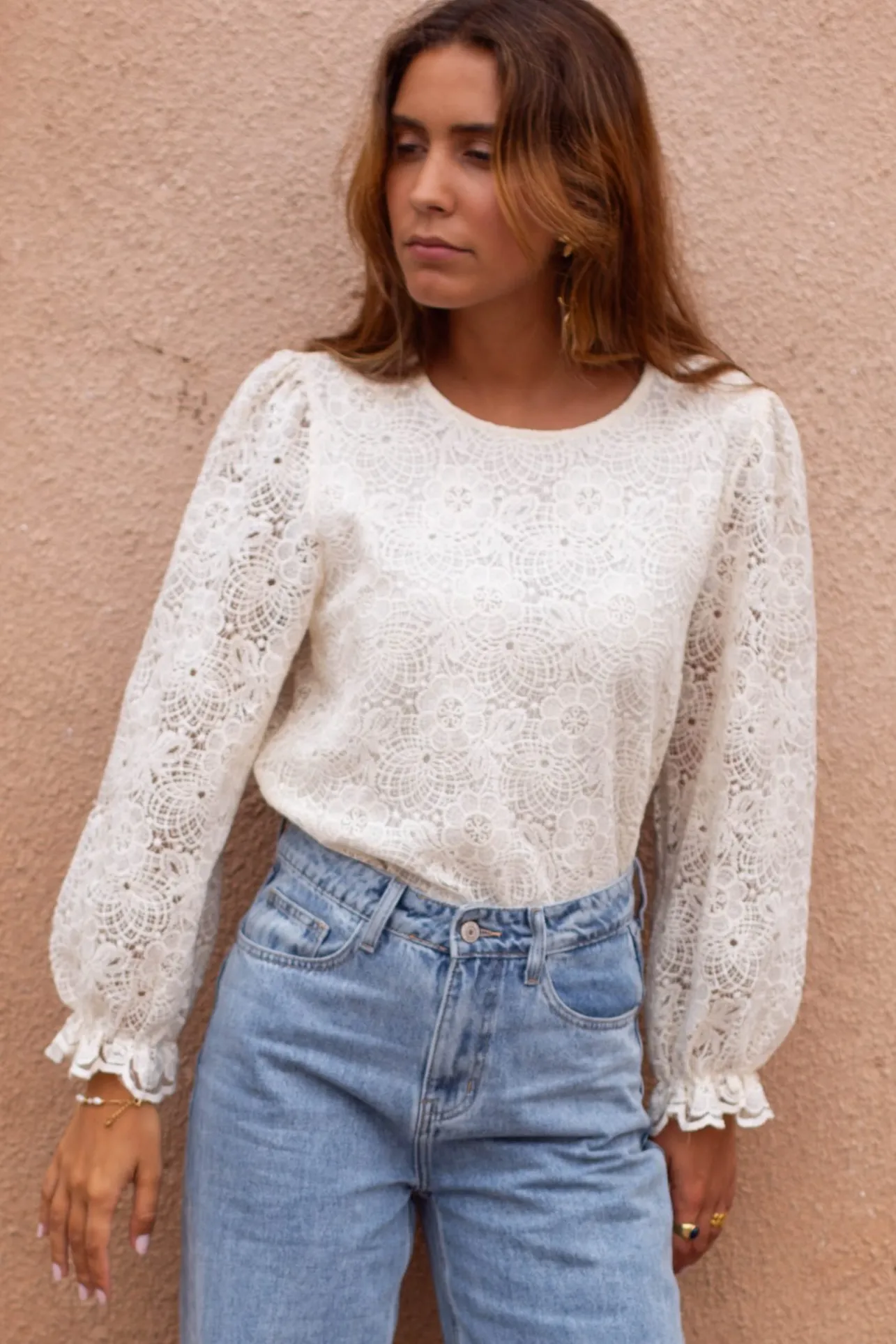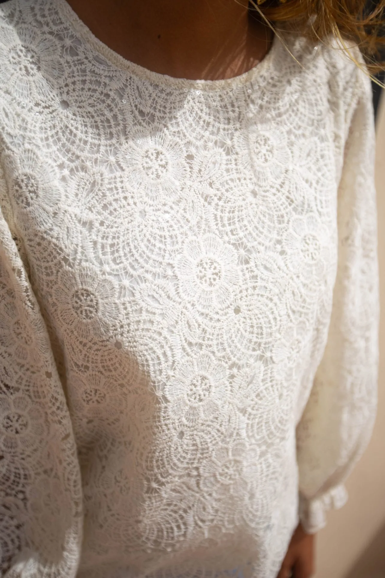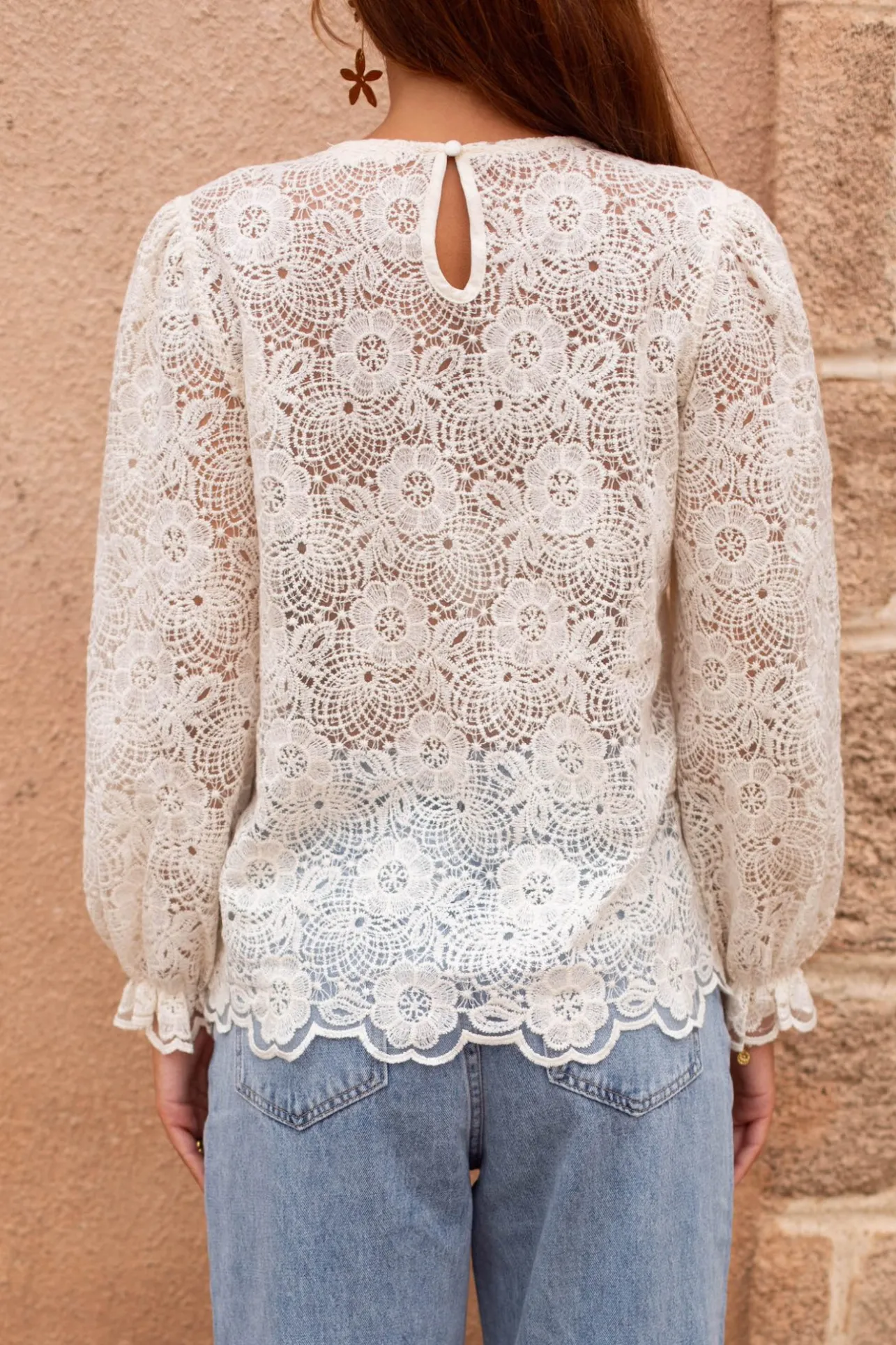 – Blouse en dentelle– Doublée sur l’avant– Col rond– Fermeture par bouton à l’arri…
