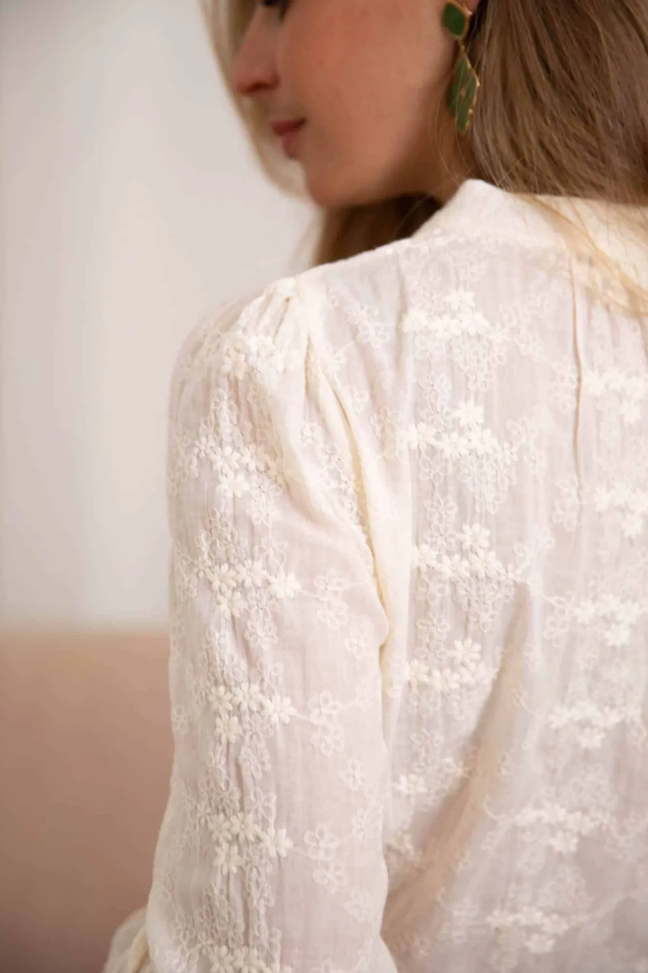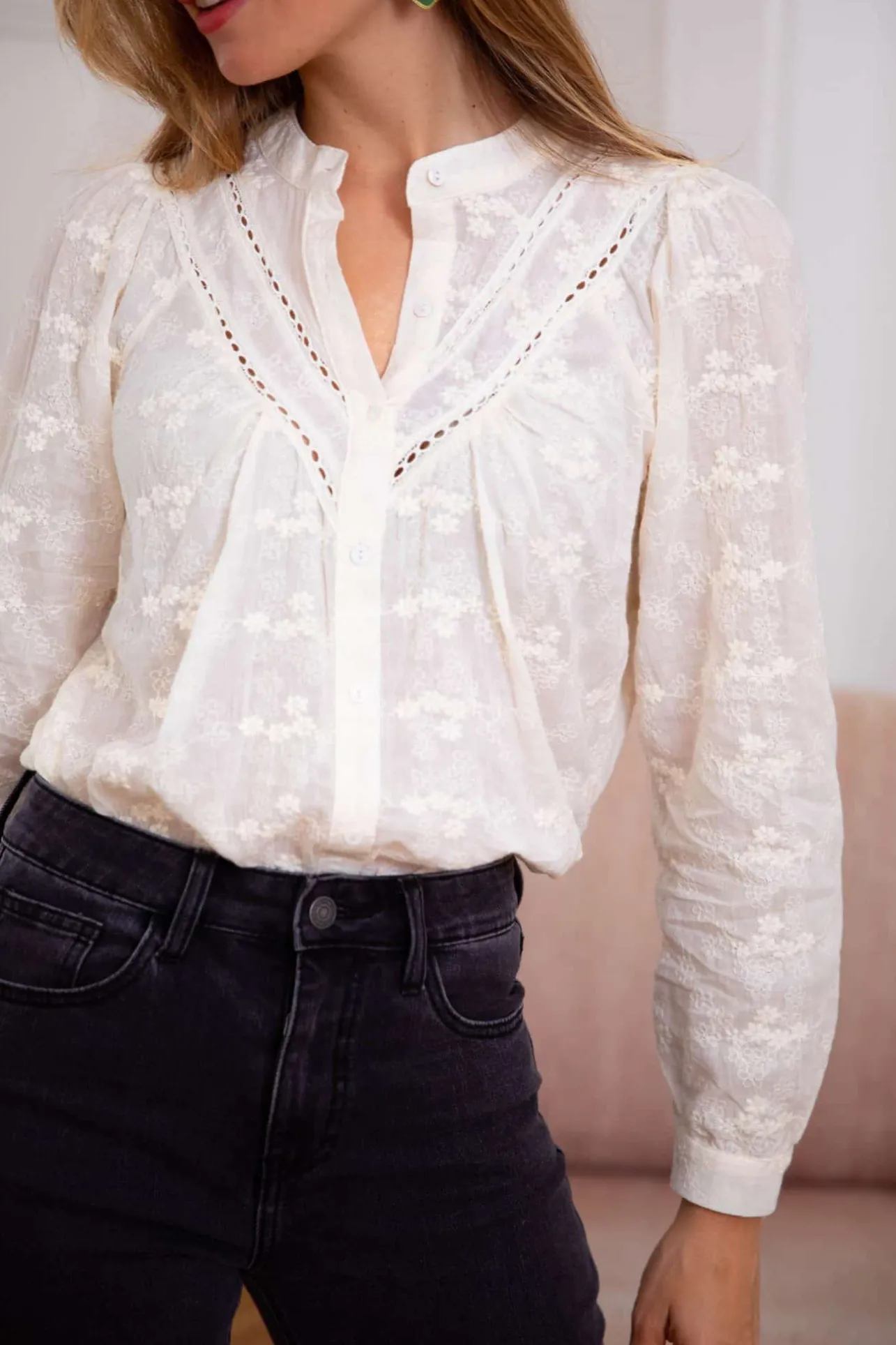 – Chemise manches longues– Coupe droite– Fermeture par boutons à l’avant– Broderies fleur…