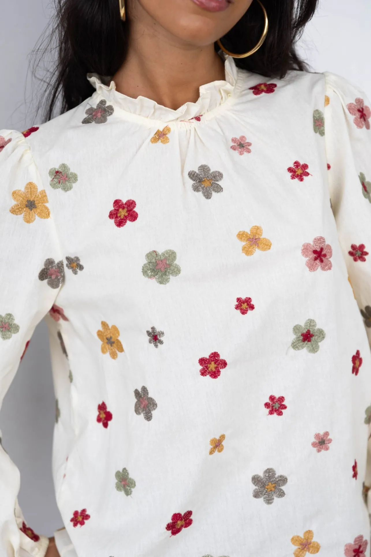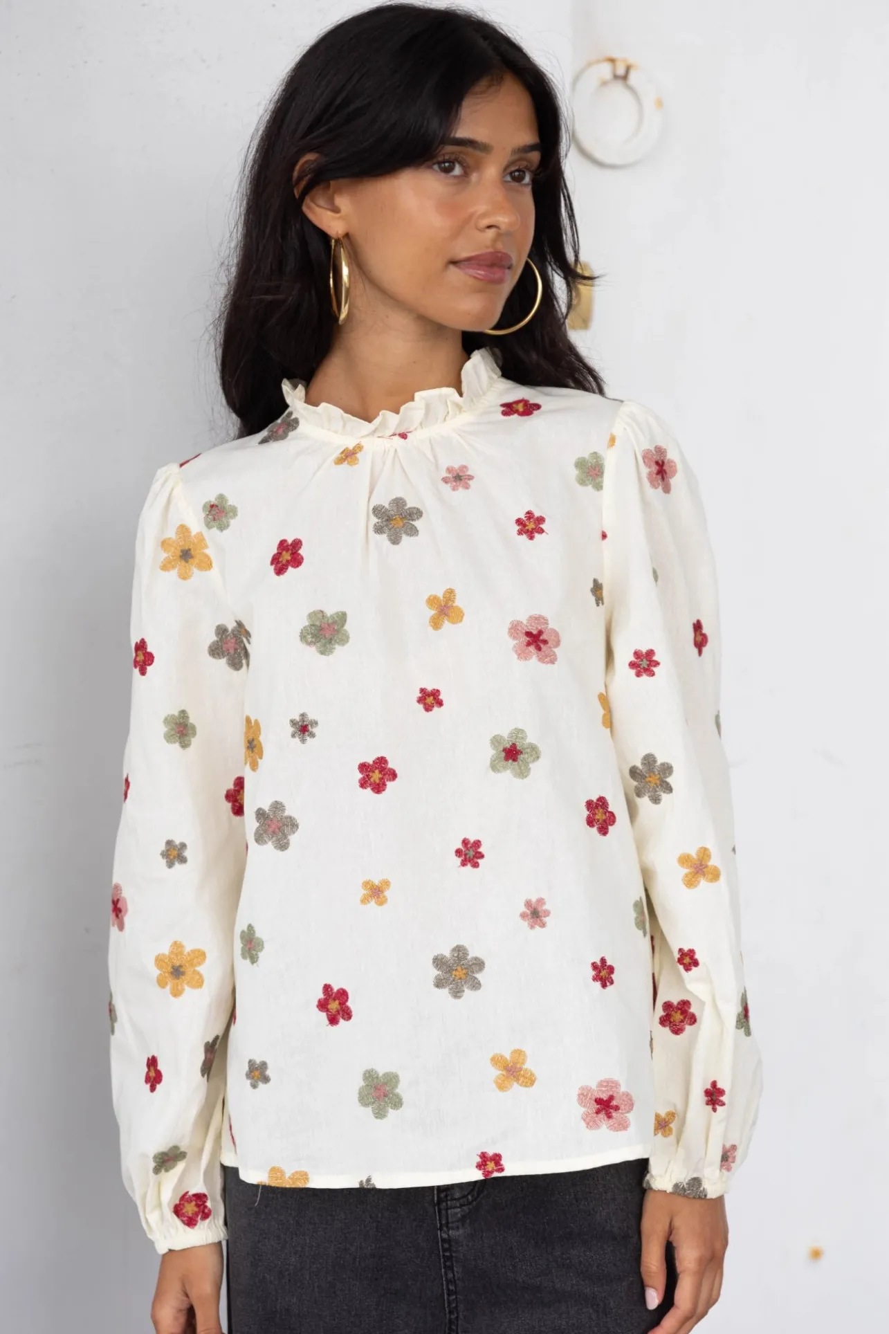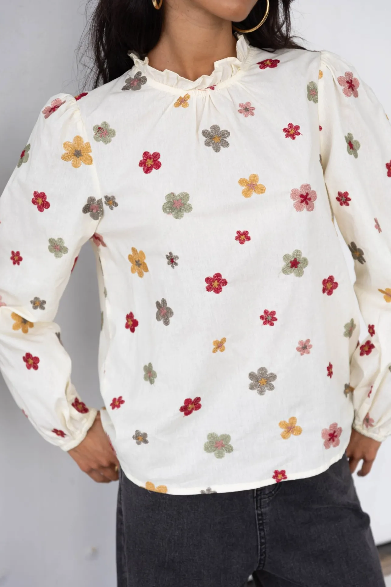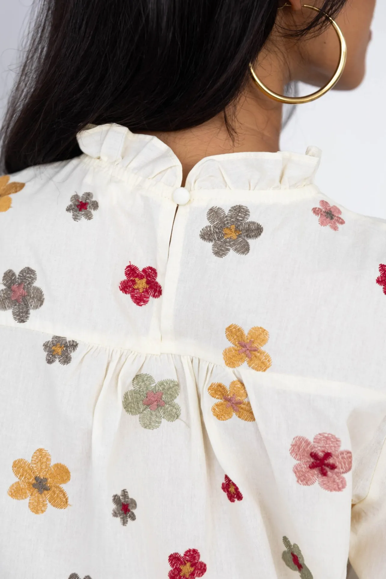 – Col montant– Manches longues– Fermeture par bouton au dos– Couleur : Fond écru imprimé fleur…