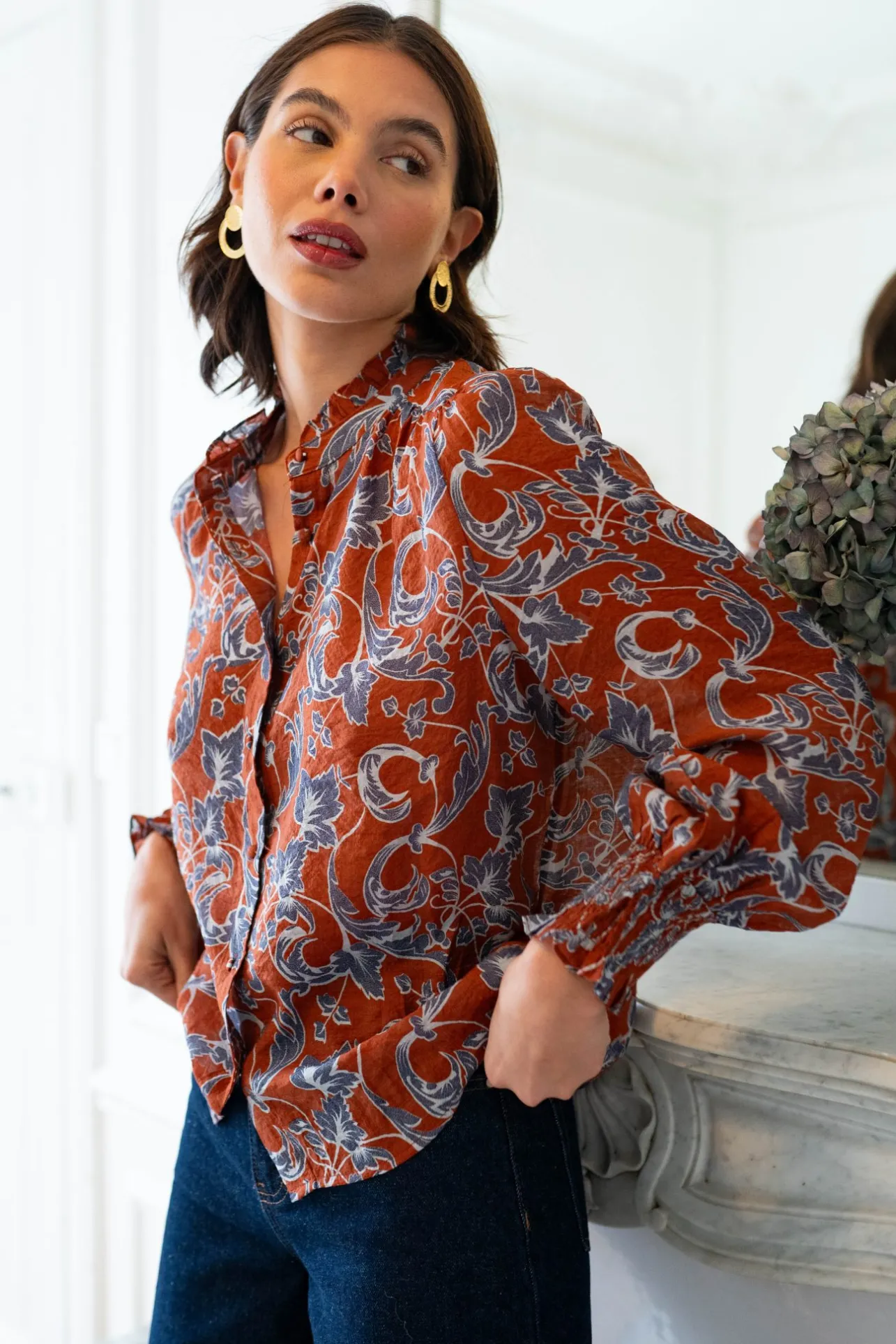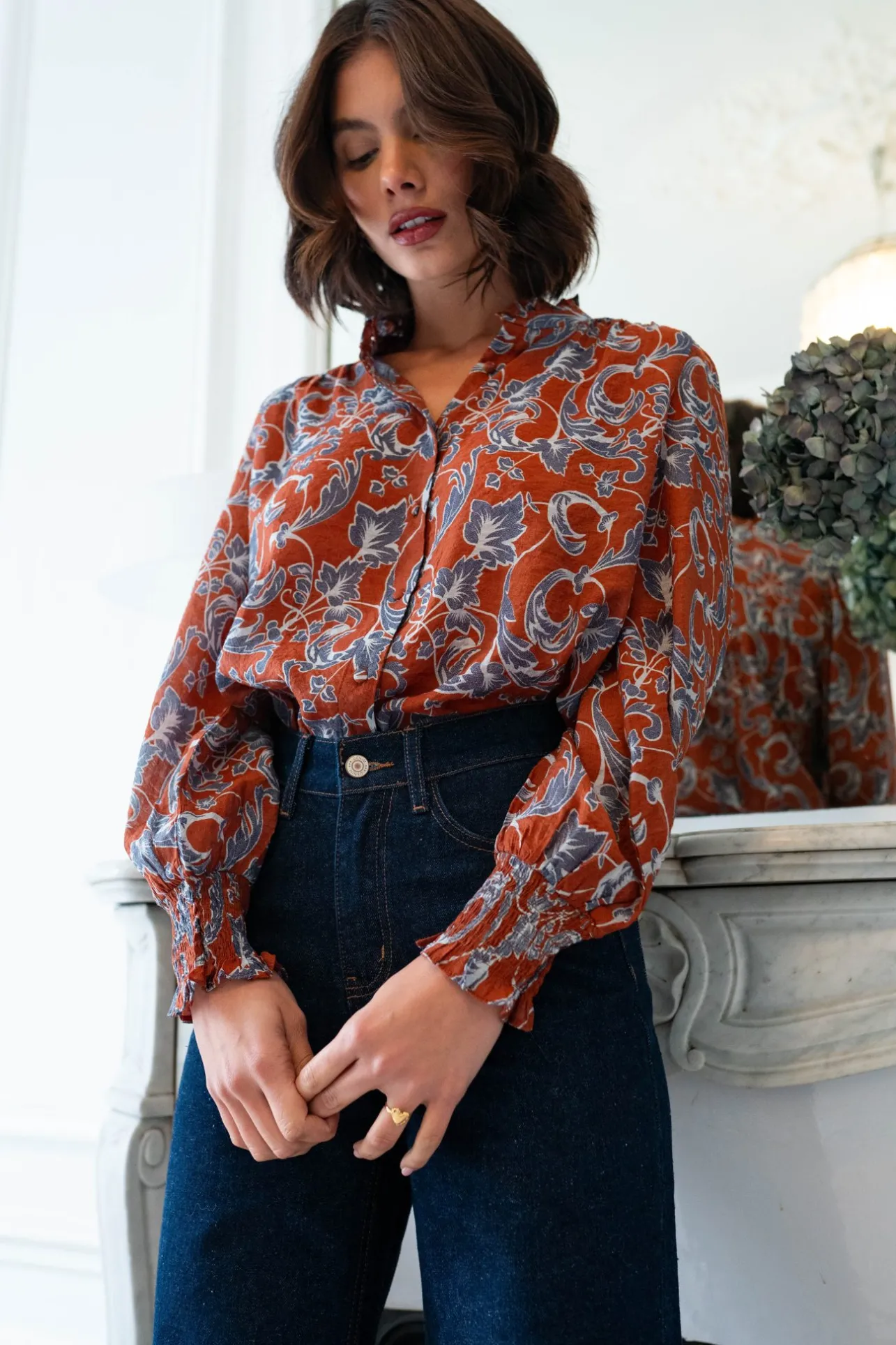 – Chemise col montant à volants