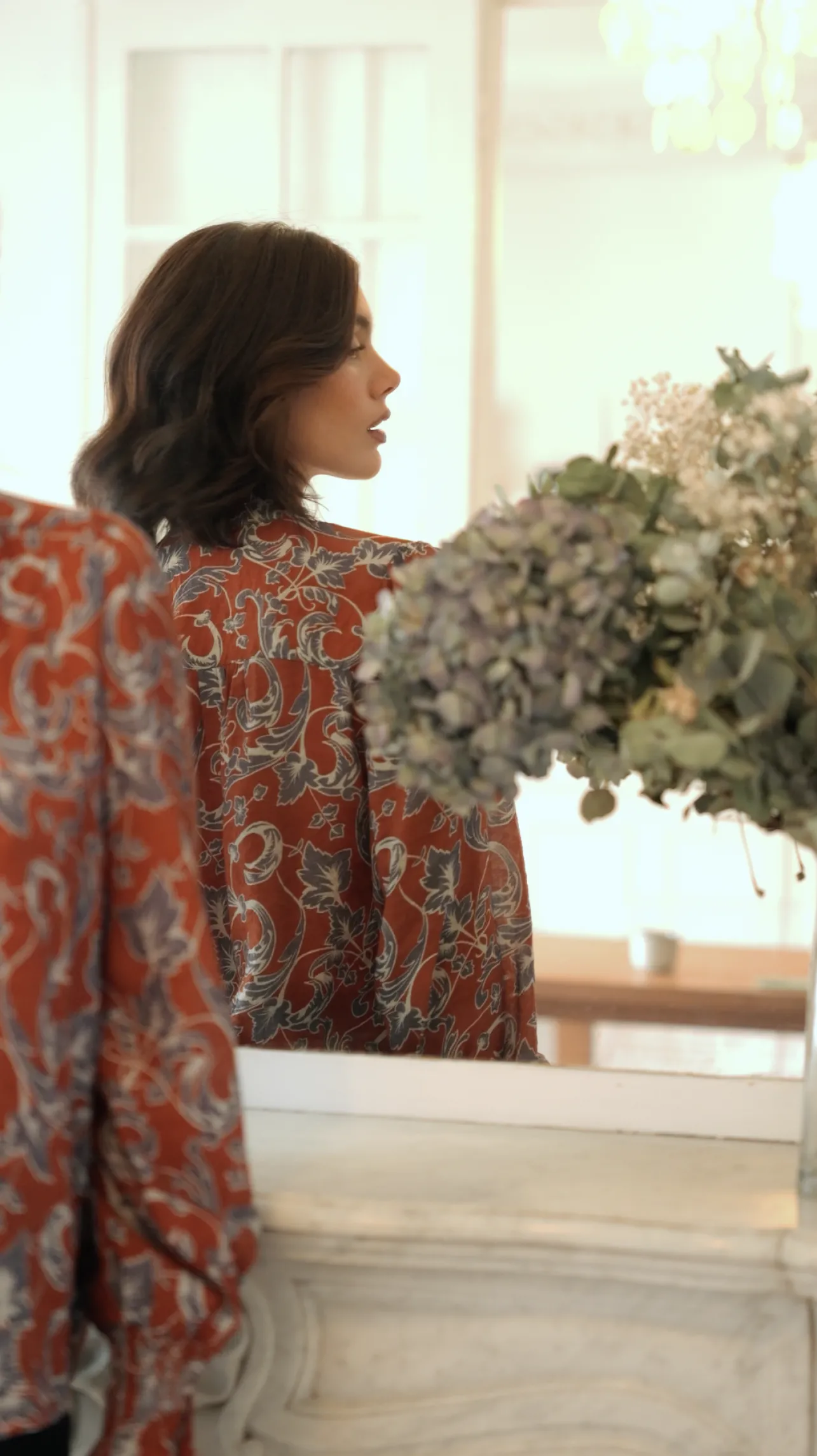 – Couleur : terracotta imprimé fleuri