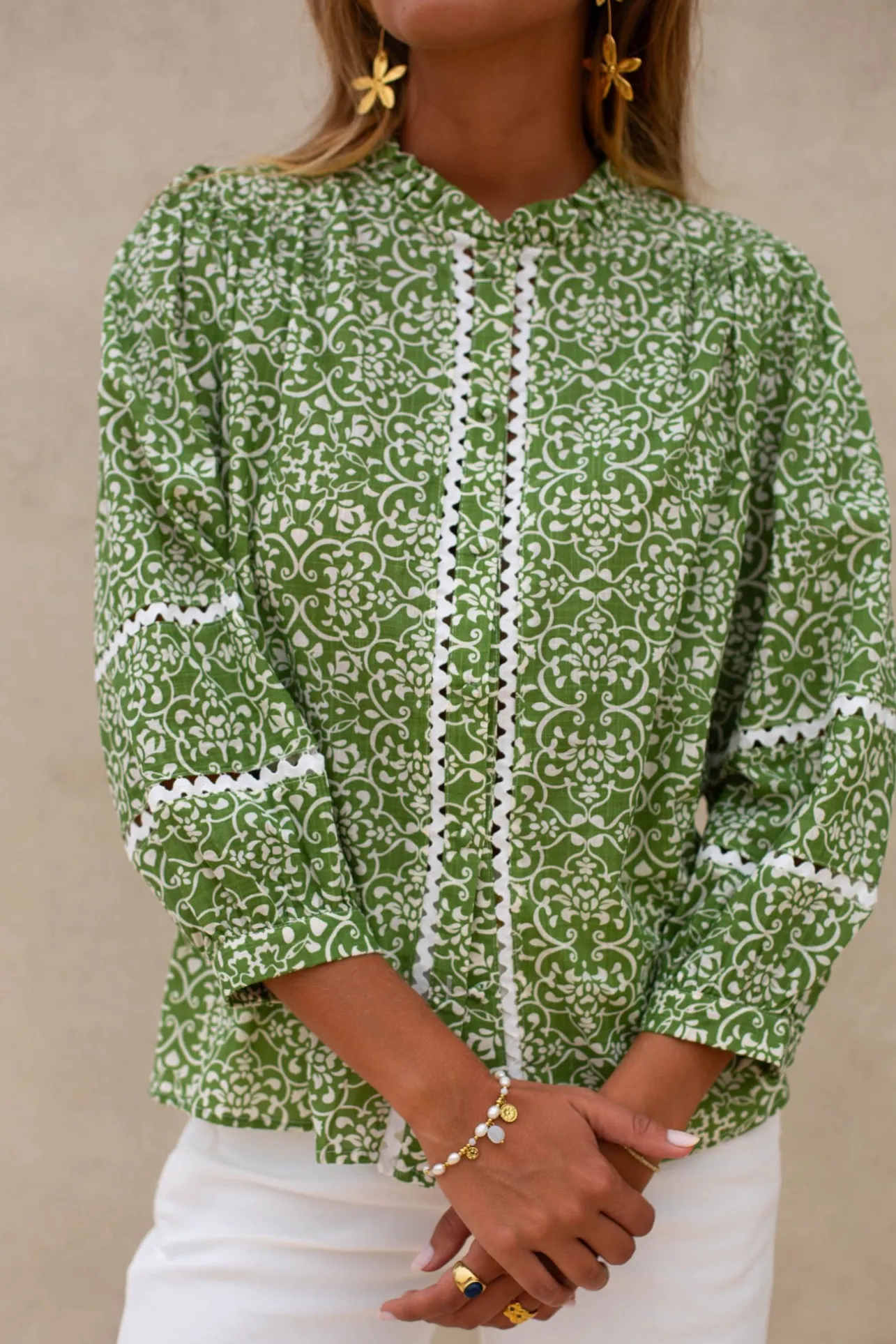 – Couleur : vert et imprimé fleuri blanc