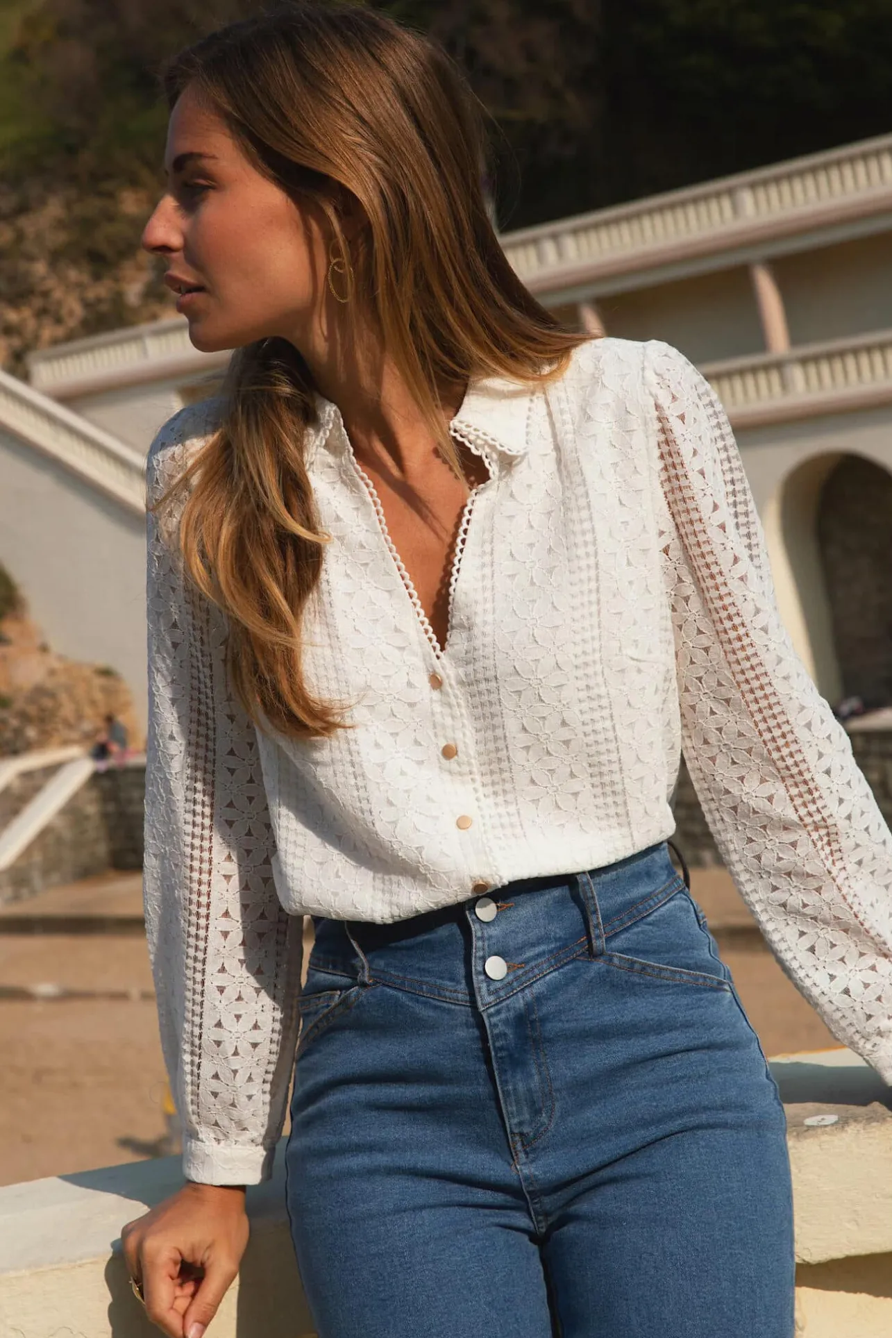 – Blouse en dentelle– Doublée sur l’avant– Manches longues– Fermeture par bouton aux poig…