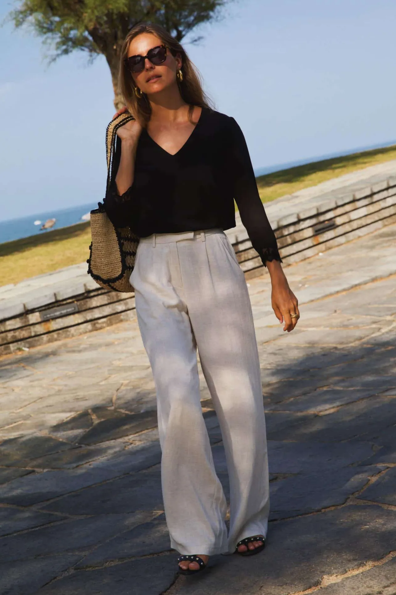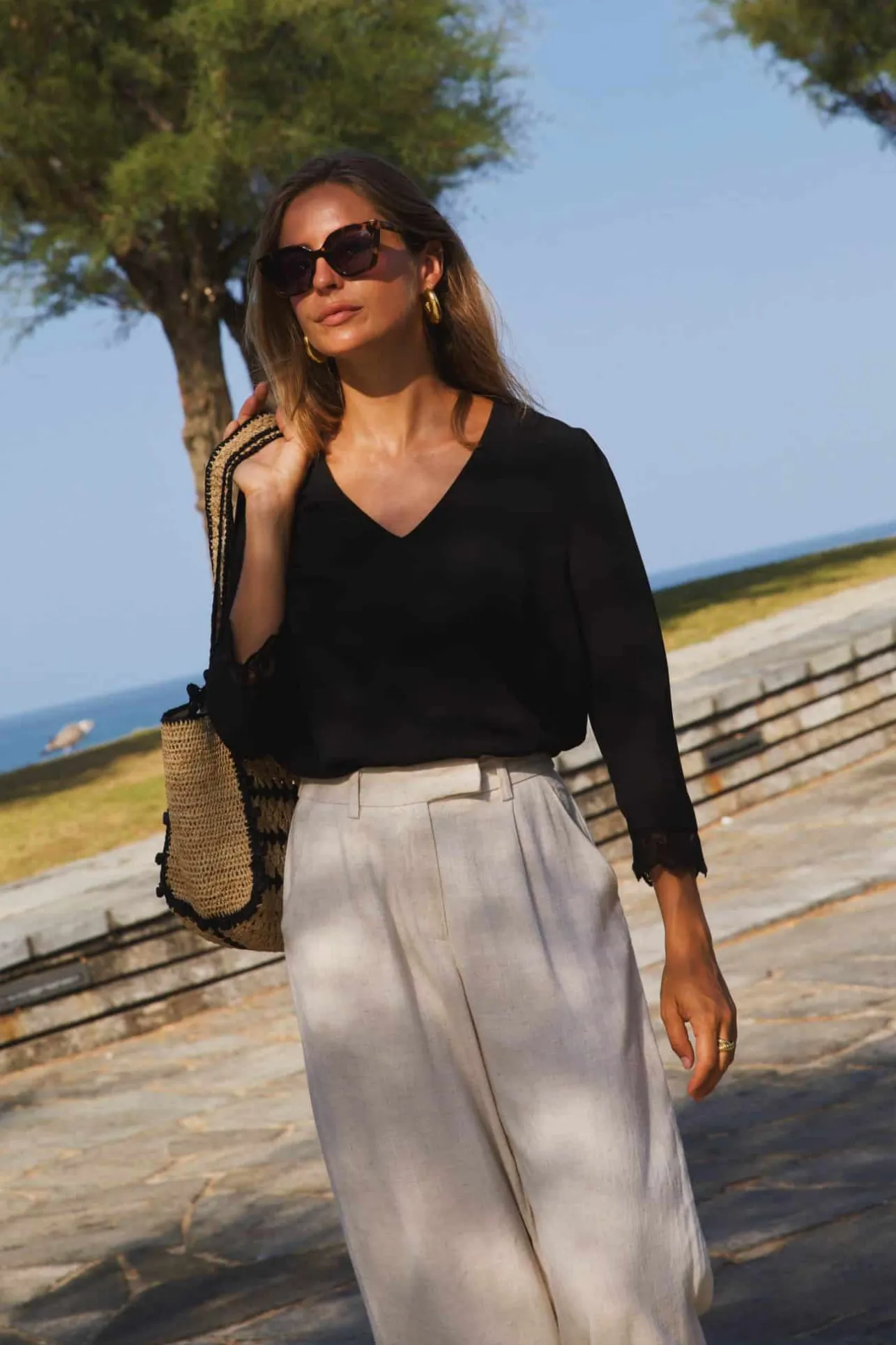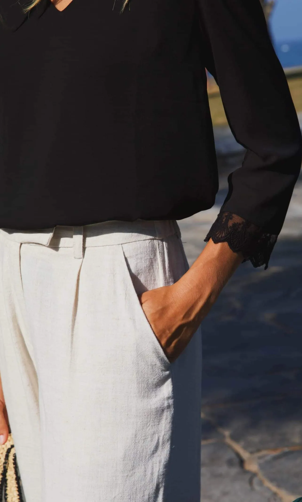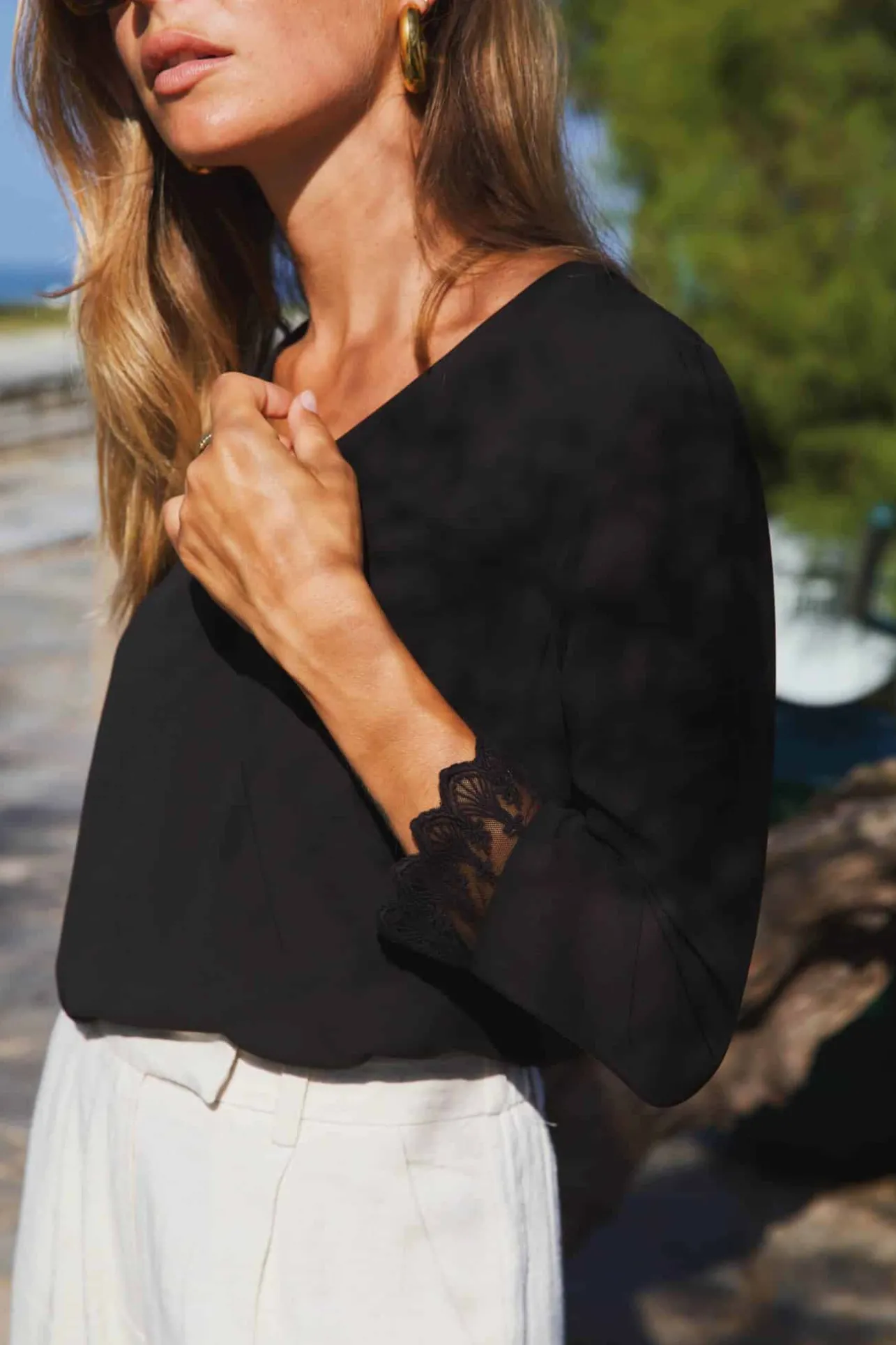 – Blouse col V– Dentelle sur le bout des manches– Dentelle au dos– Doublée sur l’avant…