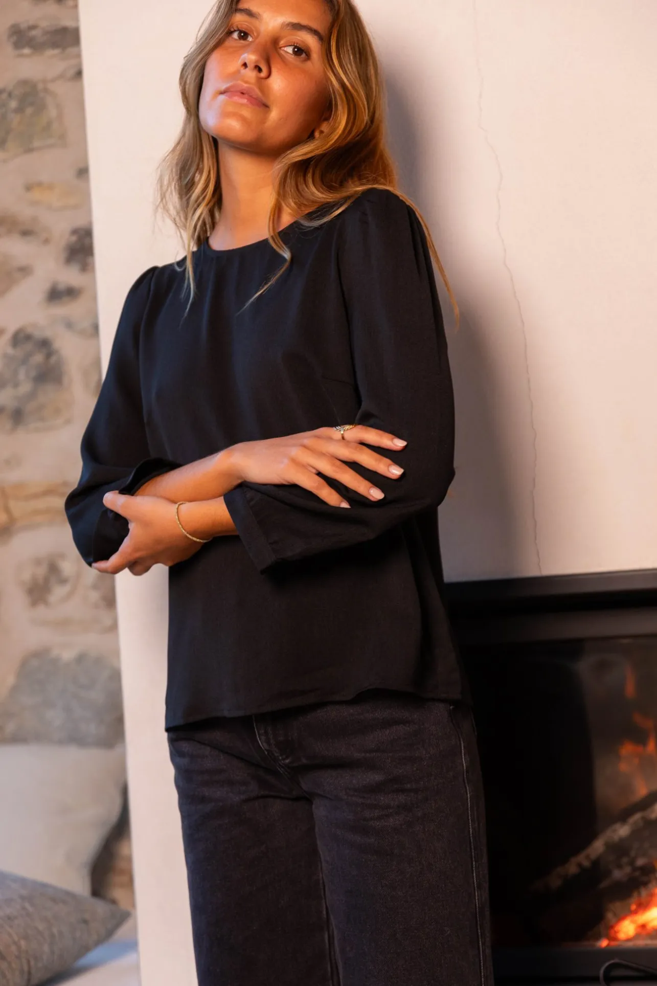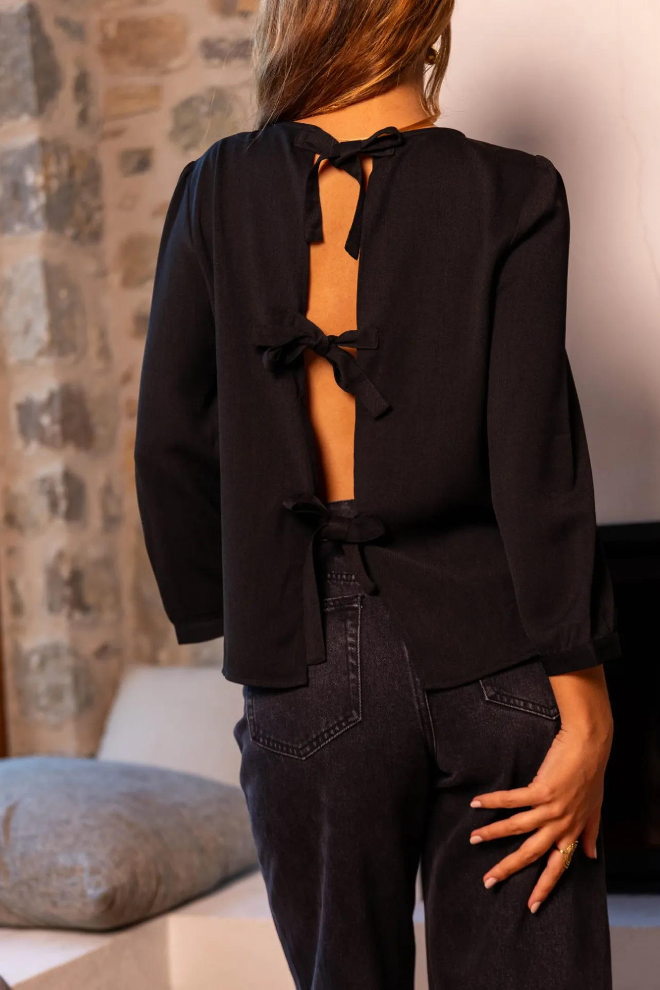 – Blouse dos nu– Col rond– Manches longues– Fermeture au dos par lacets– Couleur : noirLe …