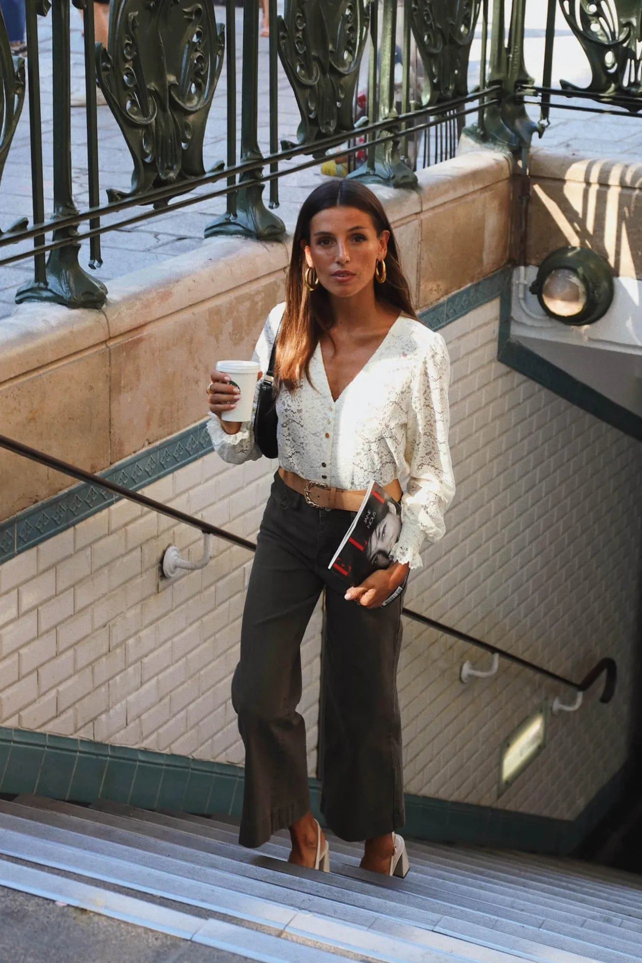 – Blouse en dentelle– Décolleté en V– Fermeture par boutons dorés– Elastique aux poignetsR…