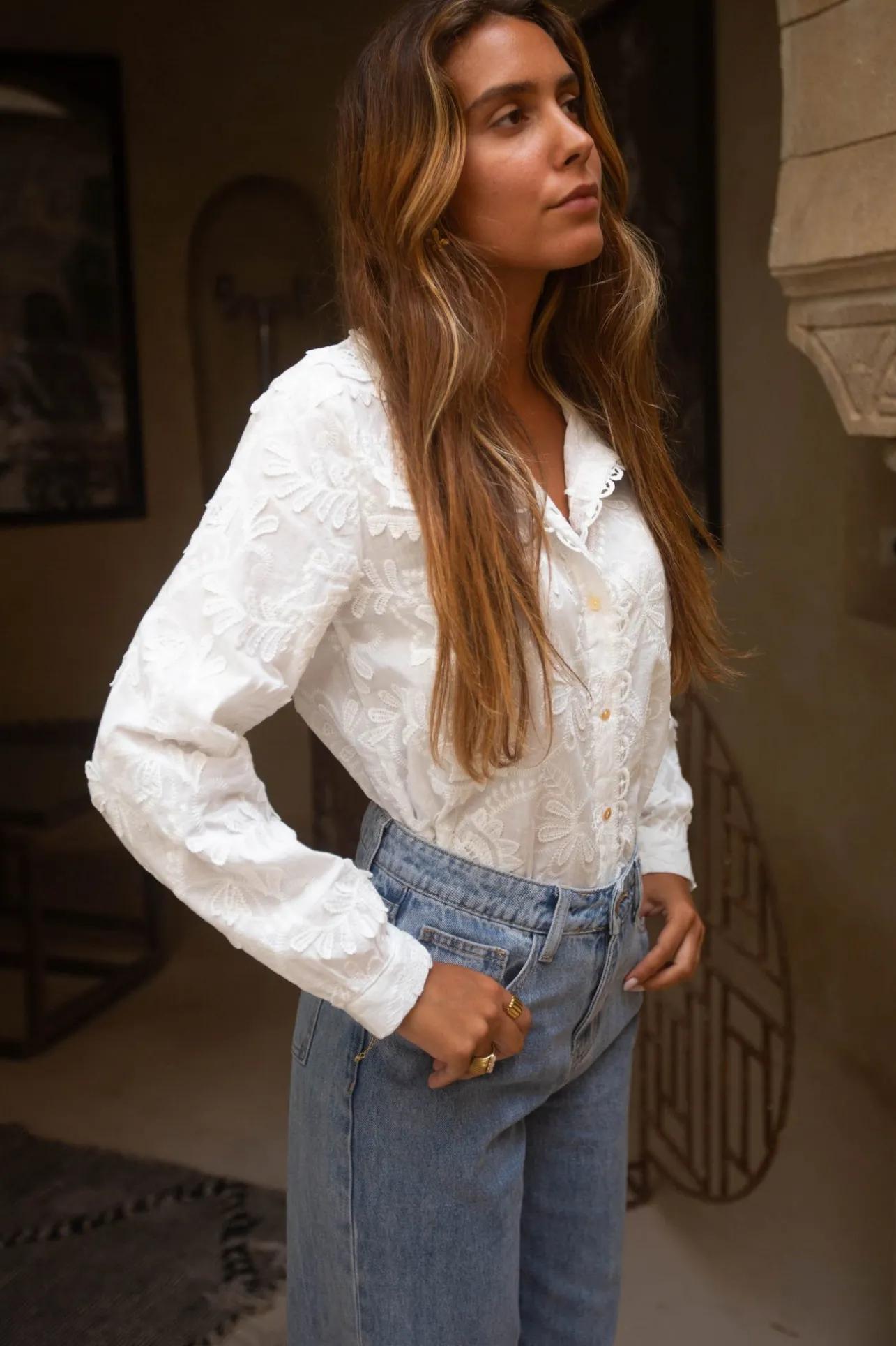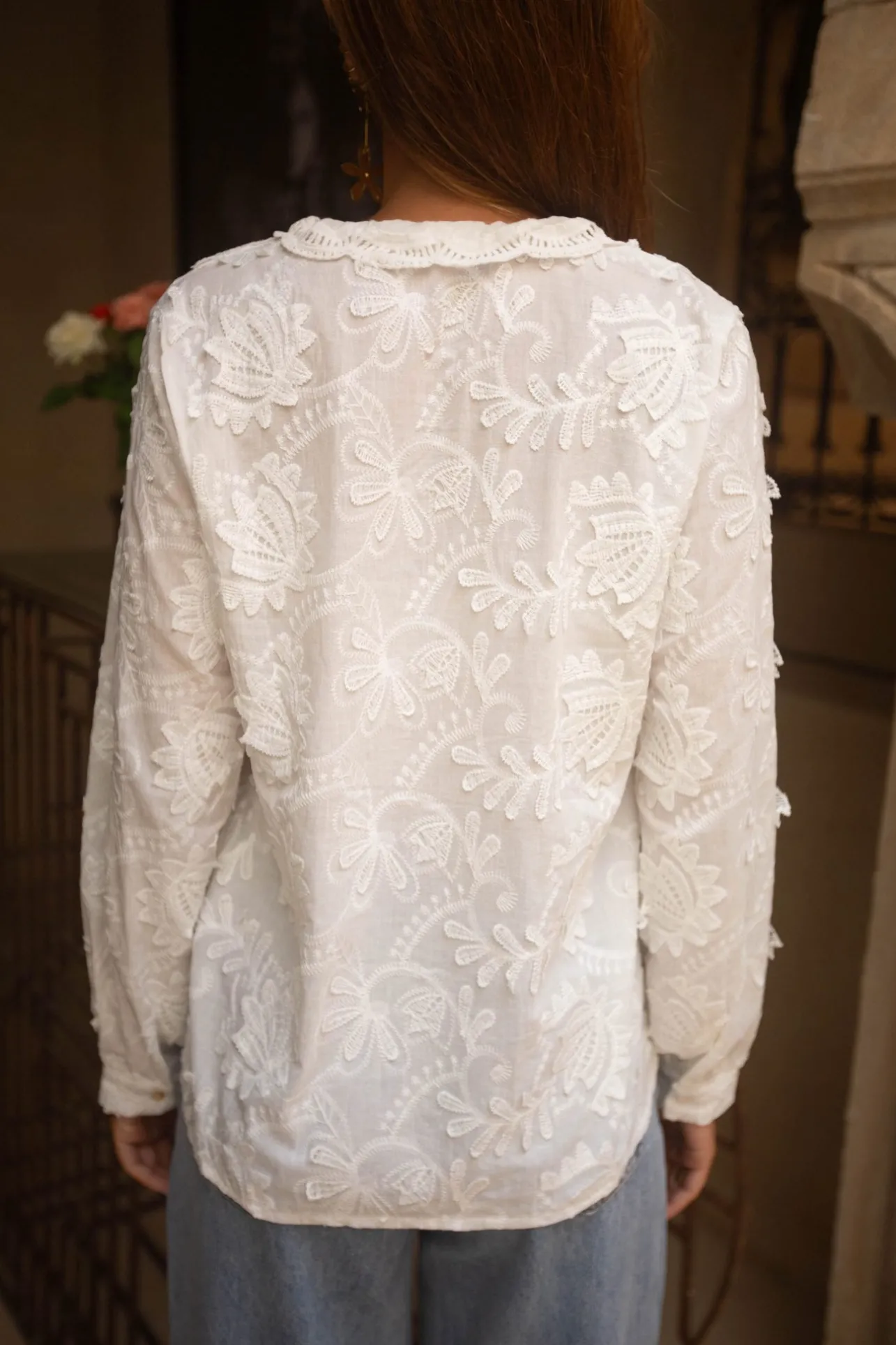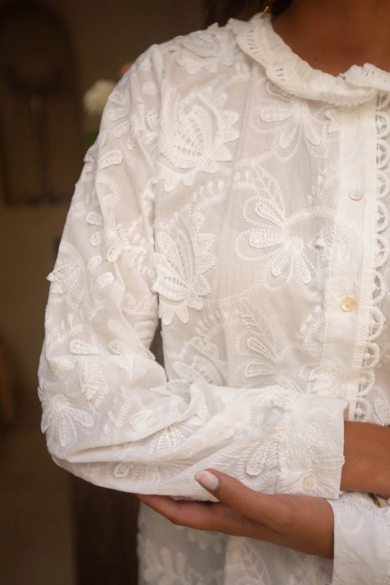 – Col rond à dentelle– Manches longues– Fermeture par boutons– Broderies– Couleur : blanc…