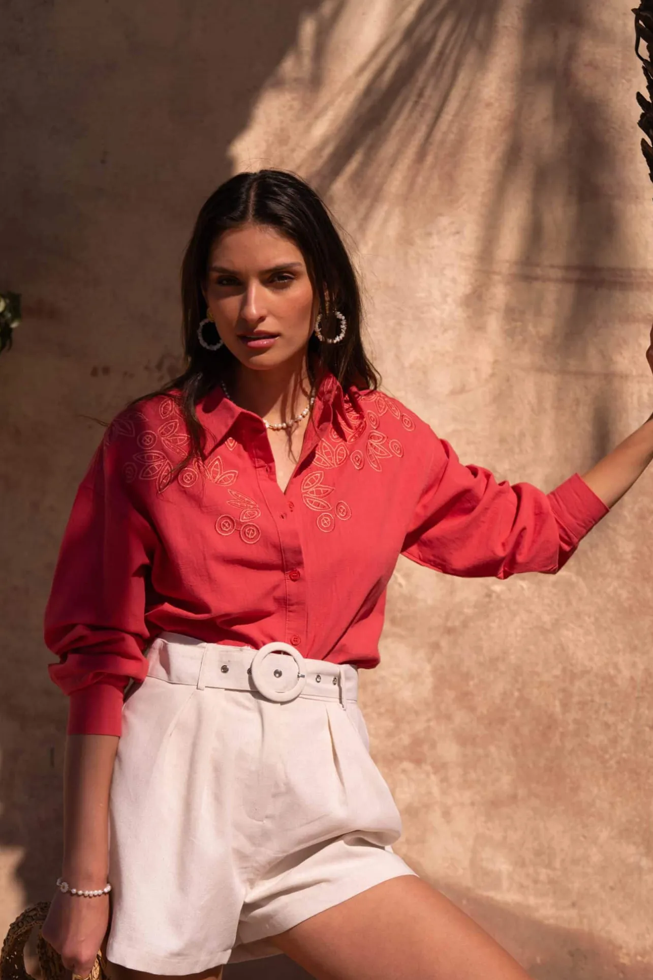 – Chemise manches longues– Coupe fluide– Fermeture par boutons à l’avant– Broderies fleur…