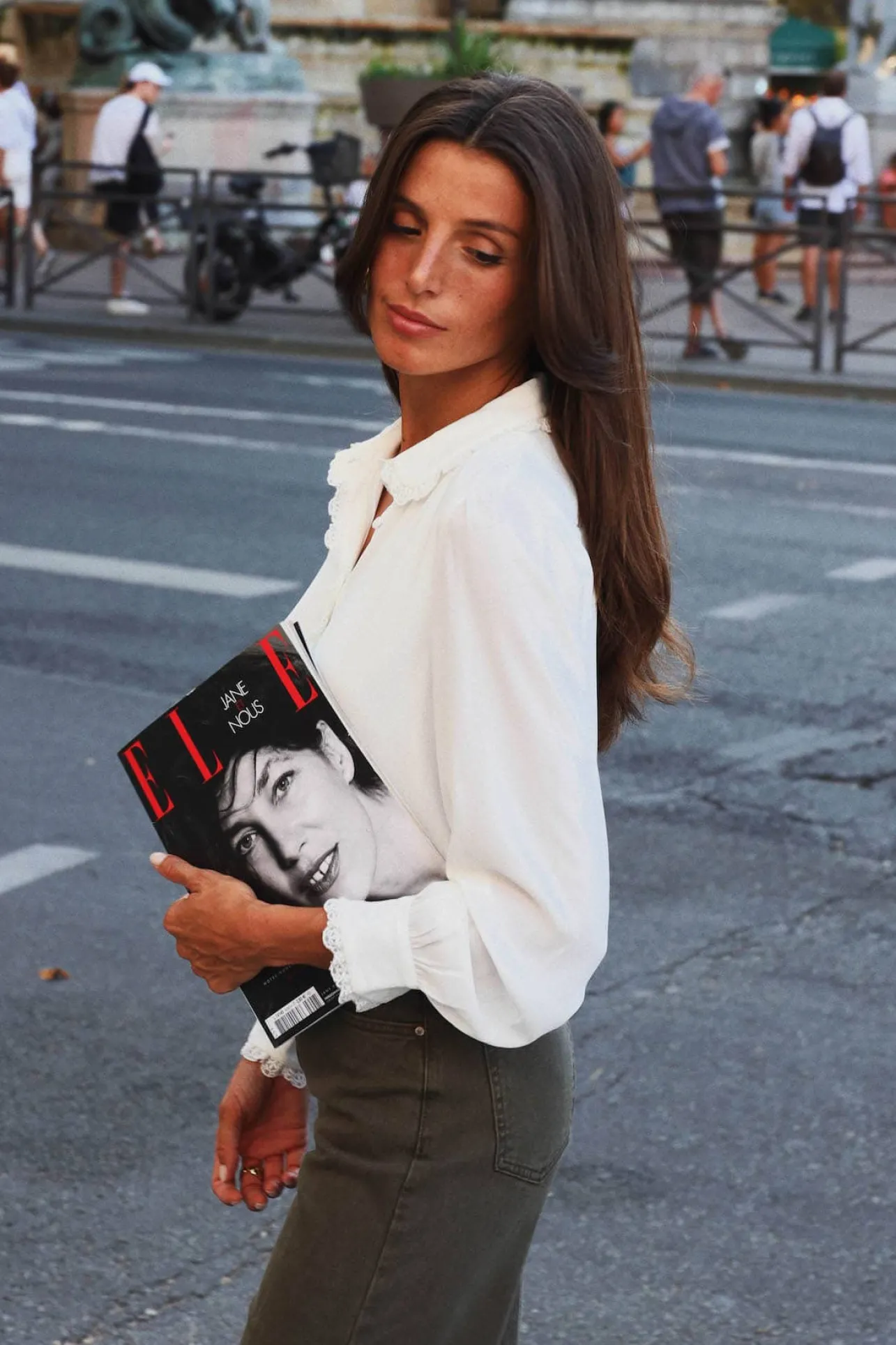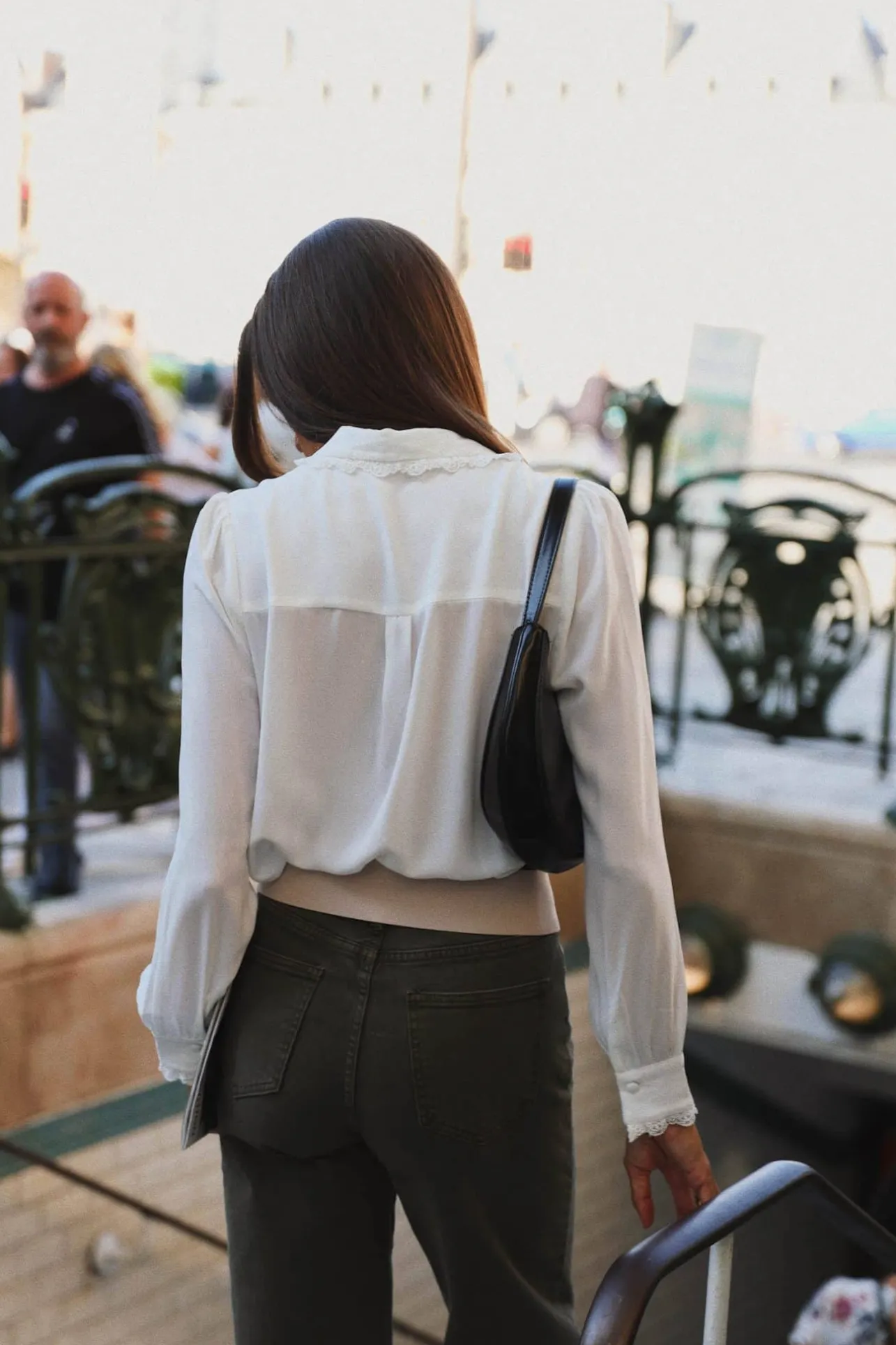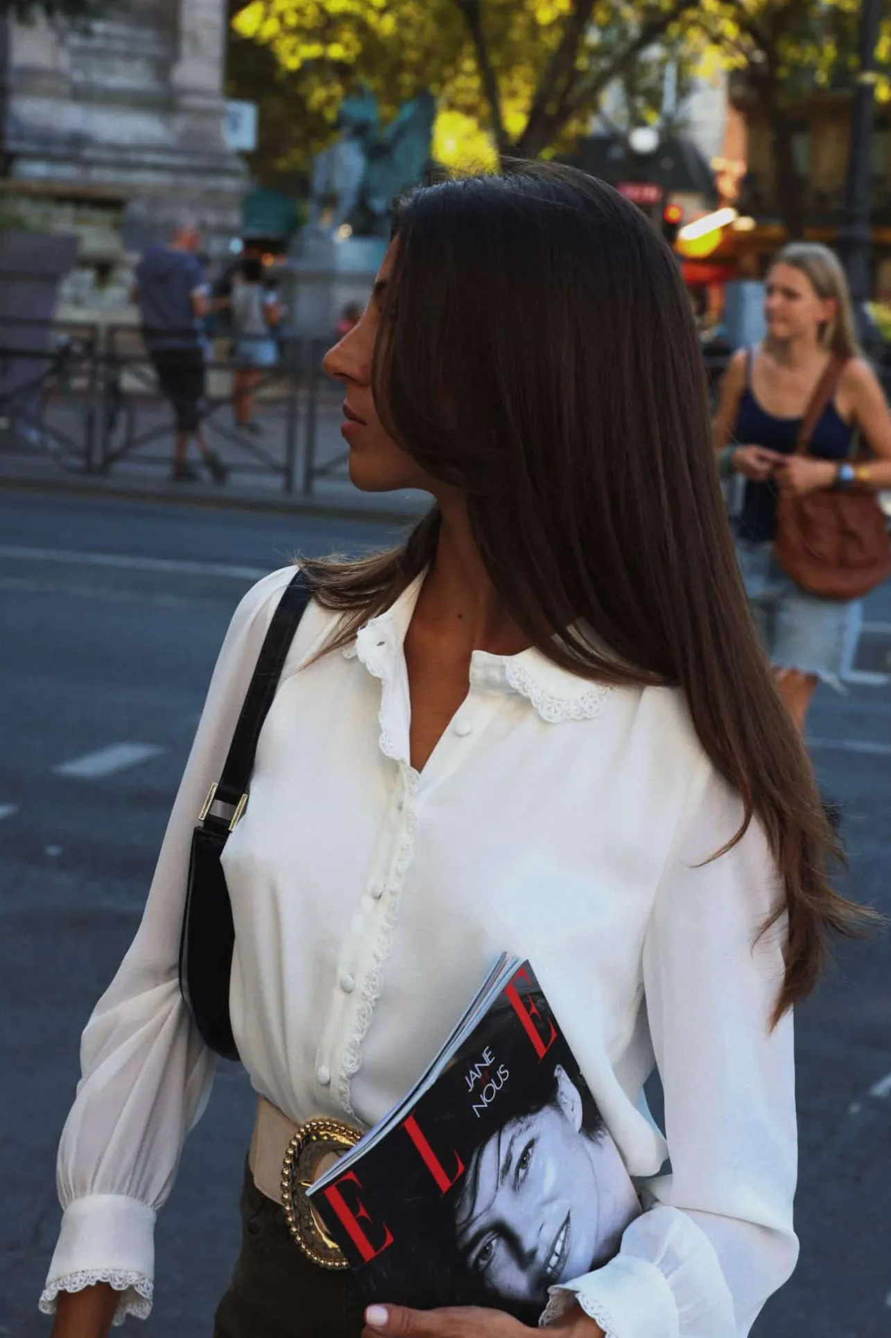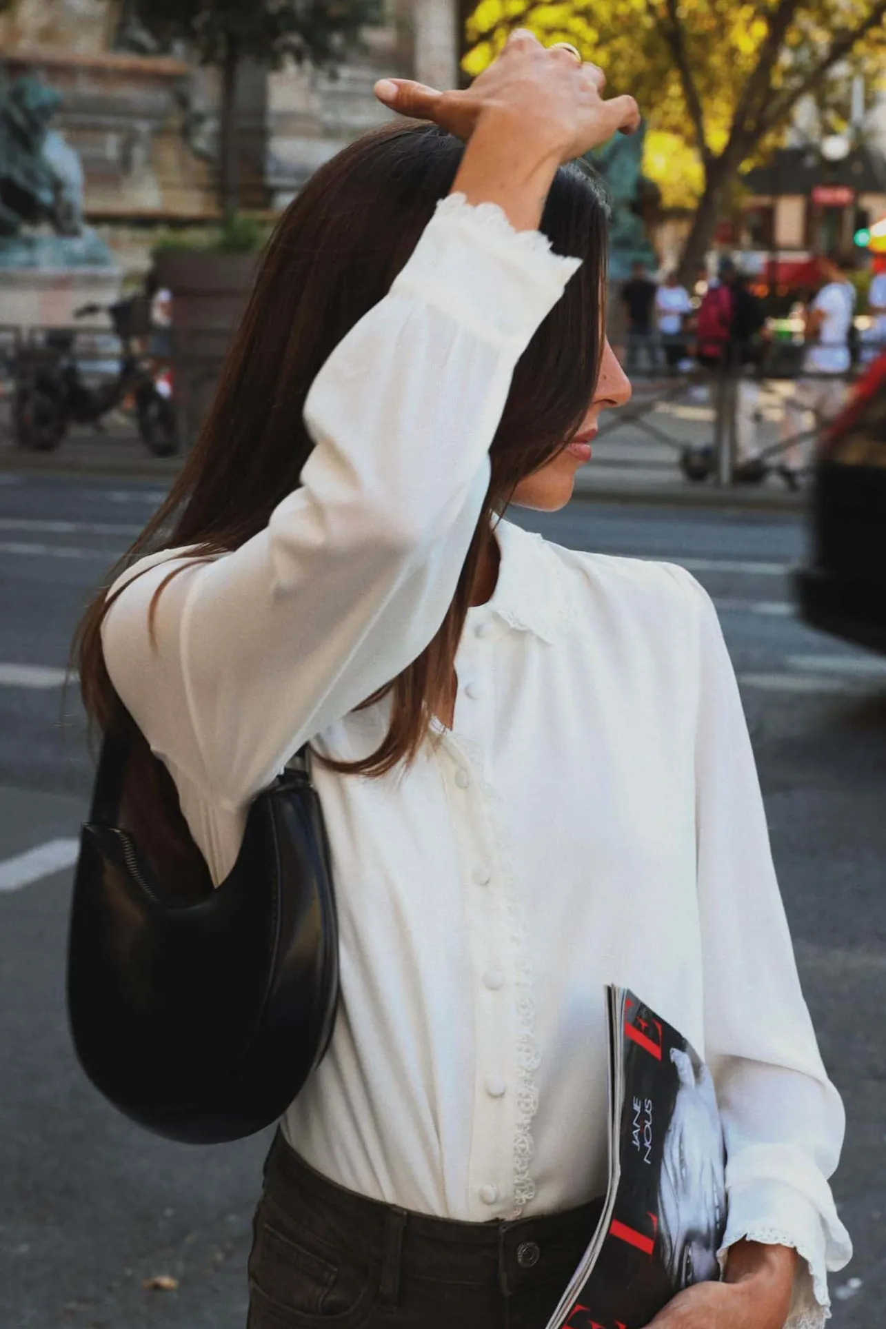– Dentelle sur le col et le devant– Doublée– Fermeture par bouton aux poignets– Dentelle sur le…