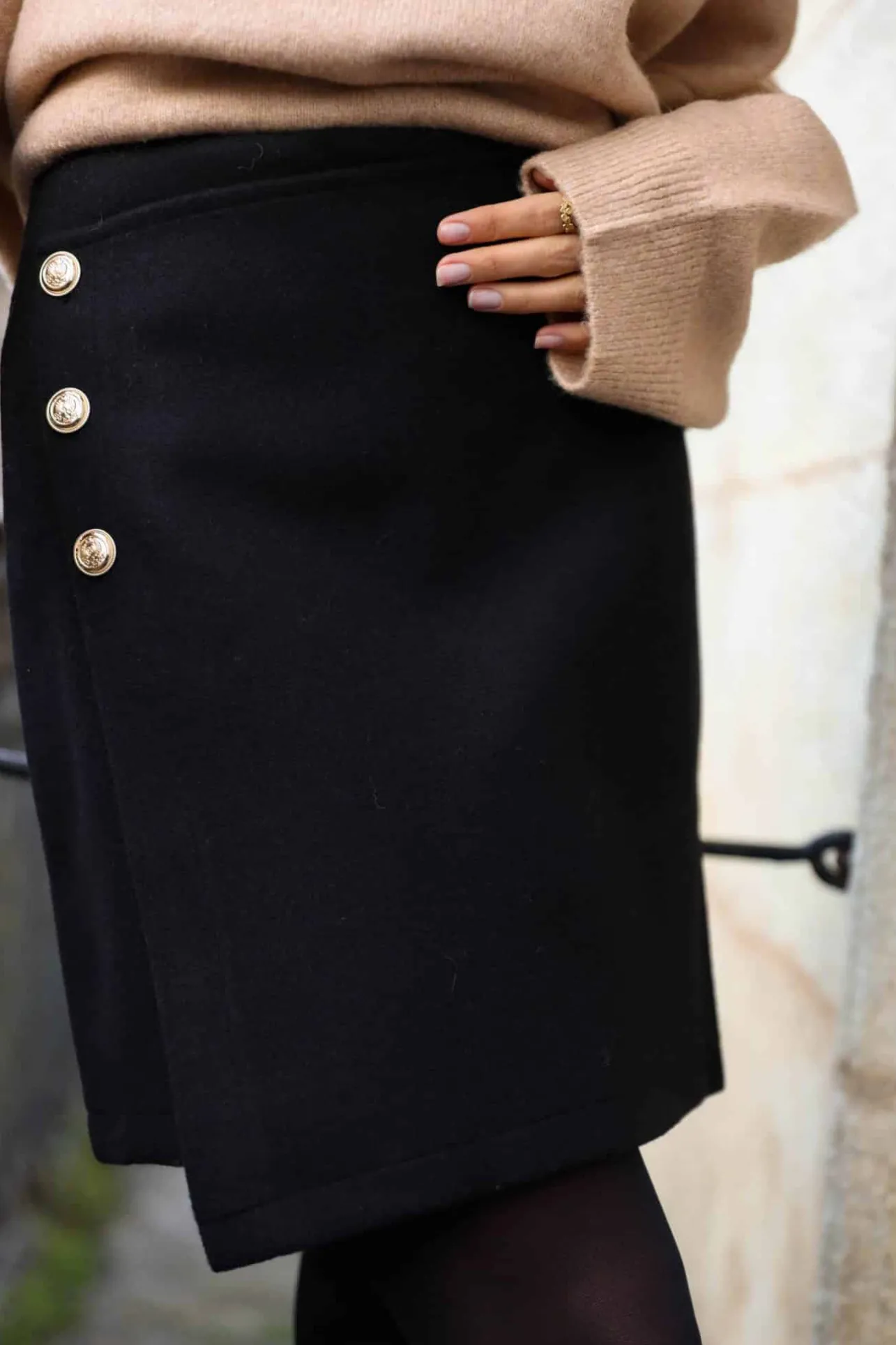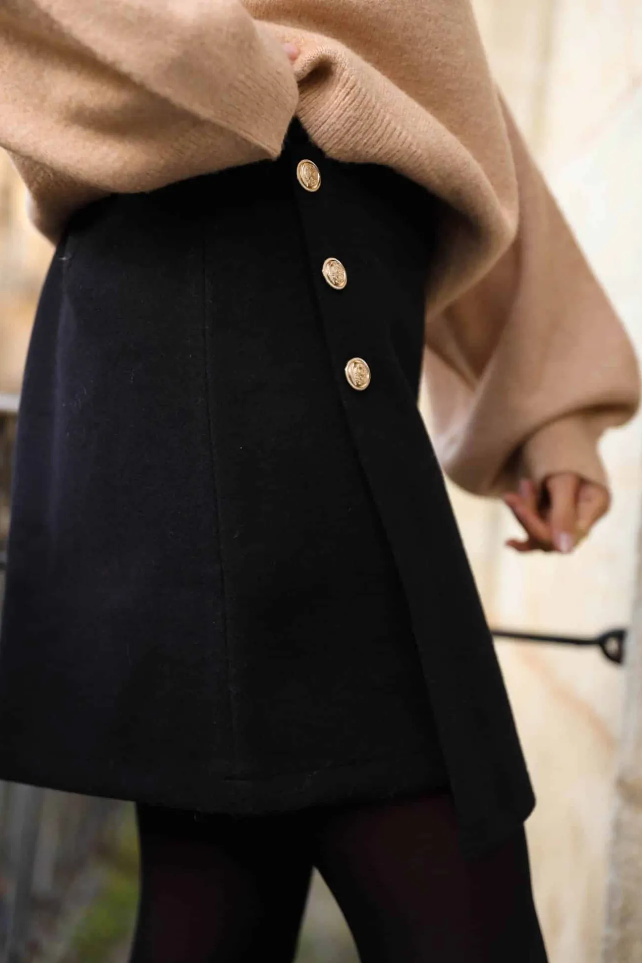 – Jupe courte– Coupe droite– Boutons dorés sur le côté– Doublée– Couleur : noirLe mann…