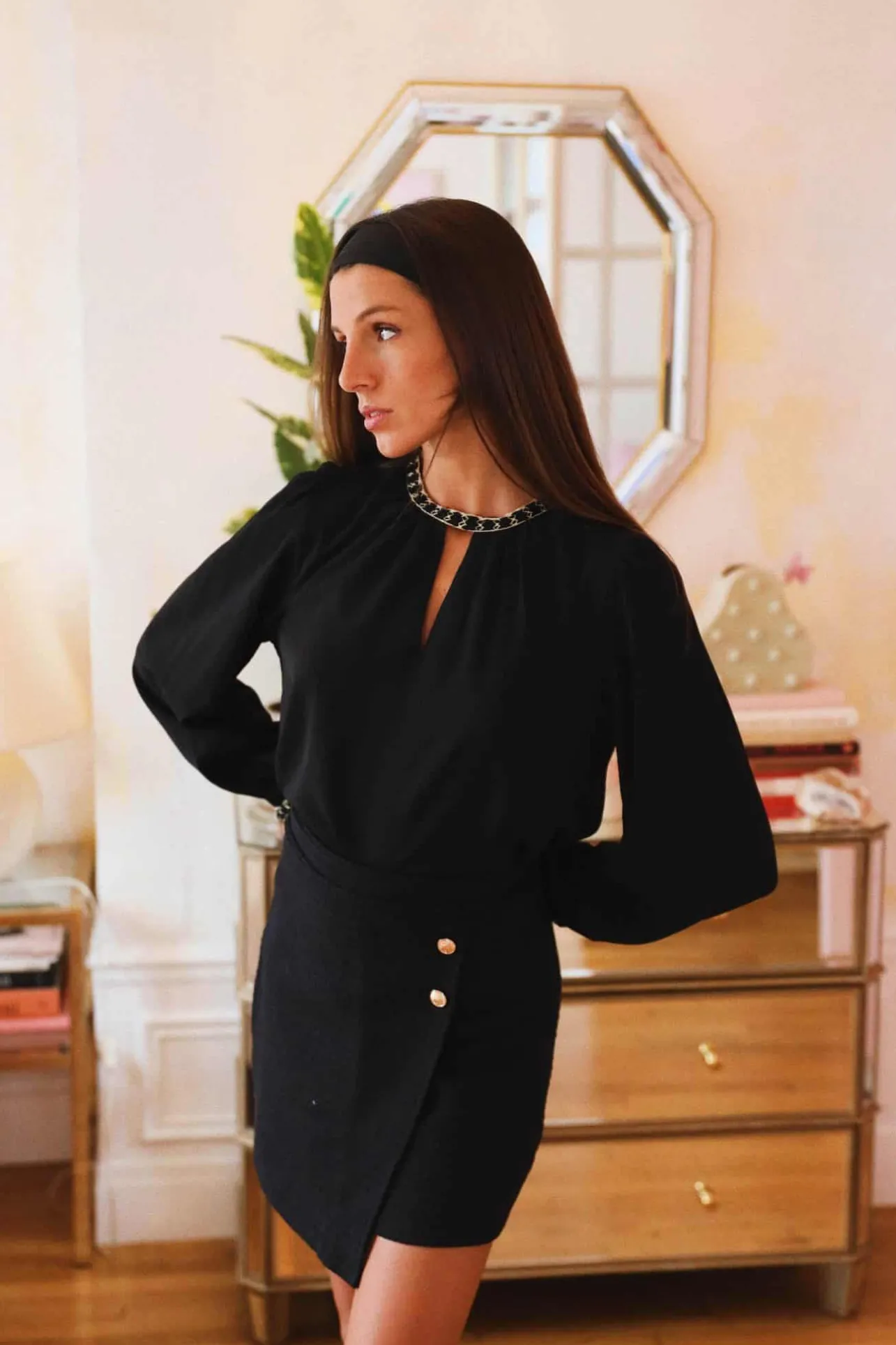 – Jupe courte– Boutons dorés décoratifs sur le devant– Tresses au niveau de la taille– Fermetu…