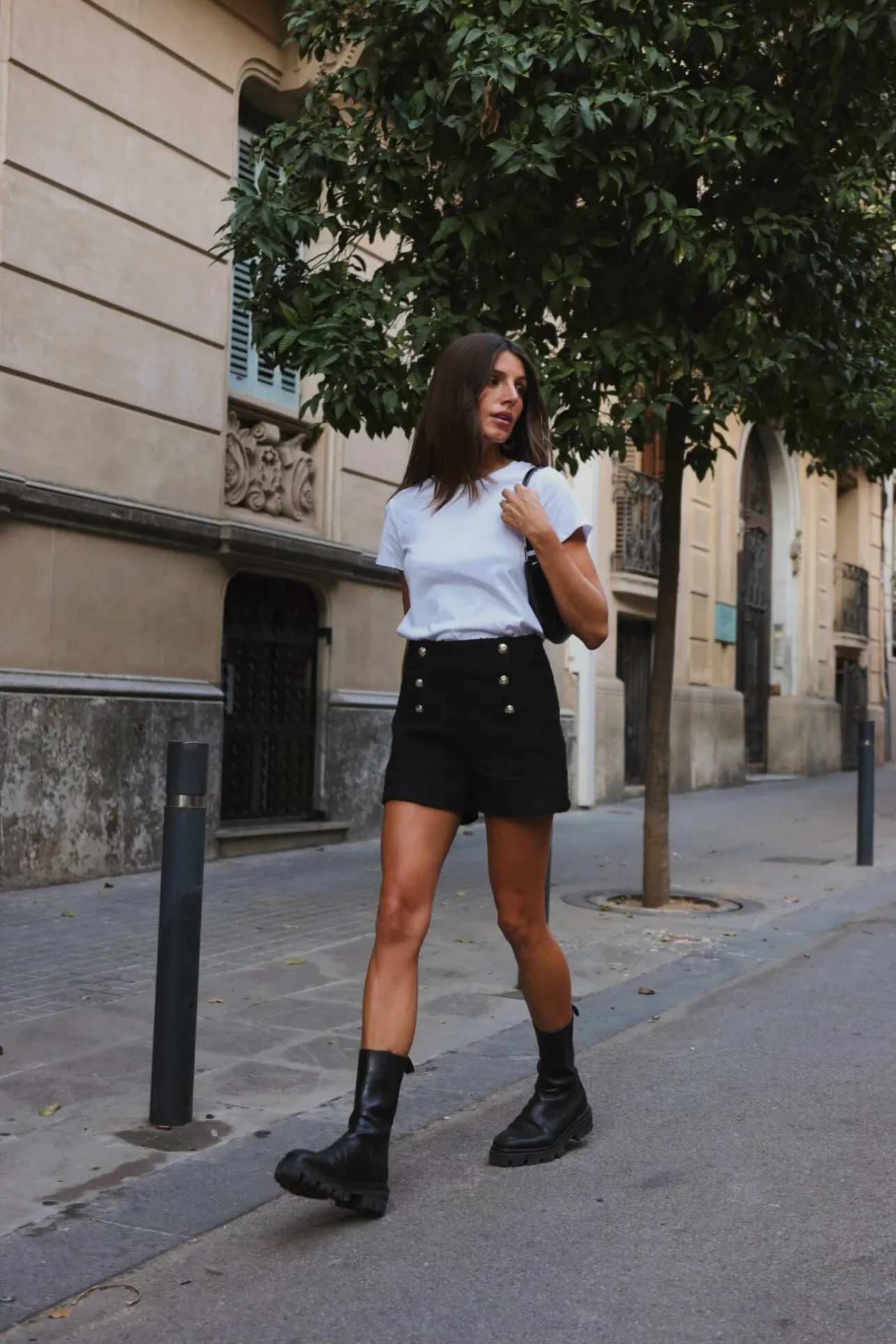 – Short en tweed– Boutons dorés décoratifs– Taille haute– Elastique à l’arrière de la …