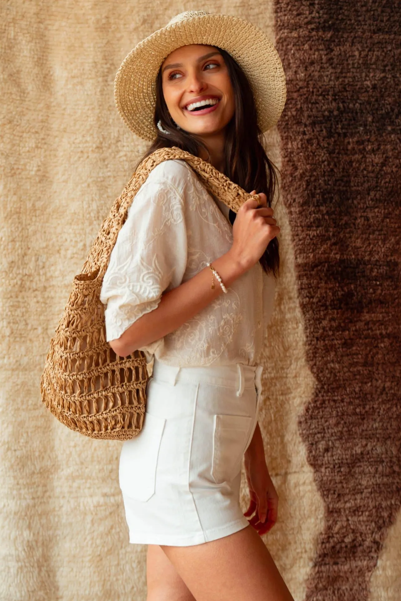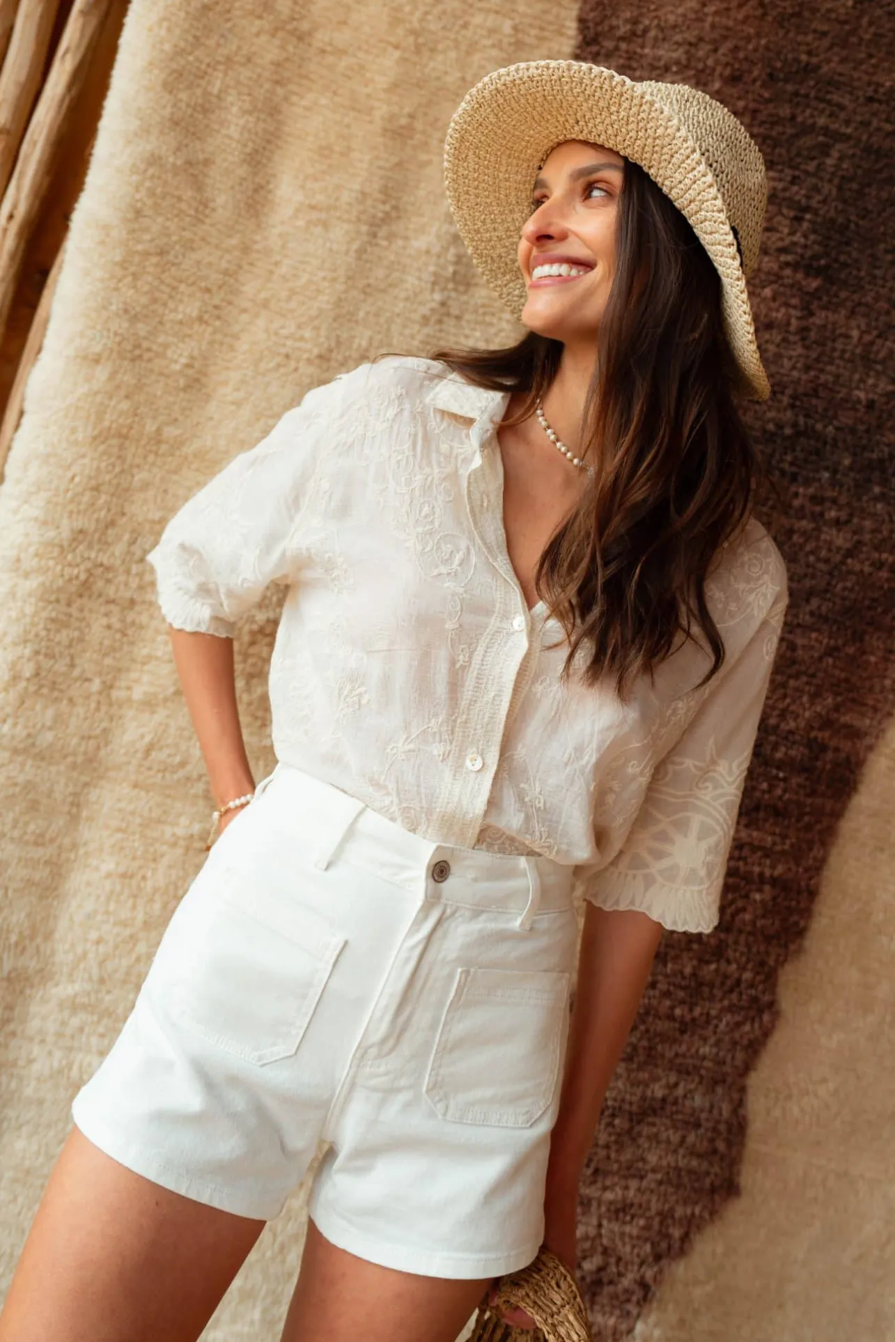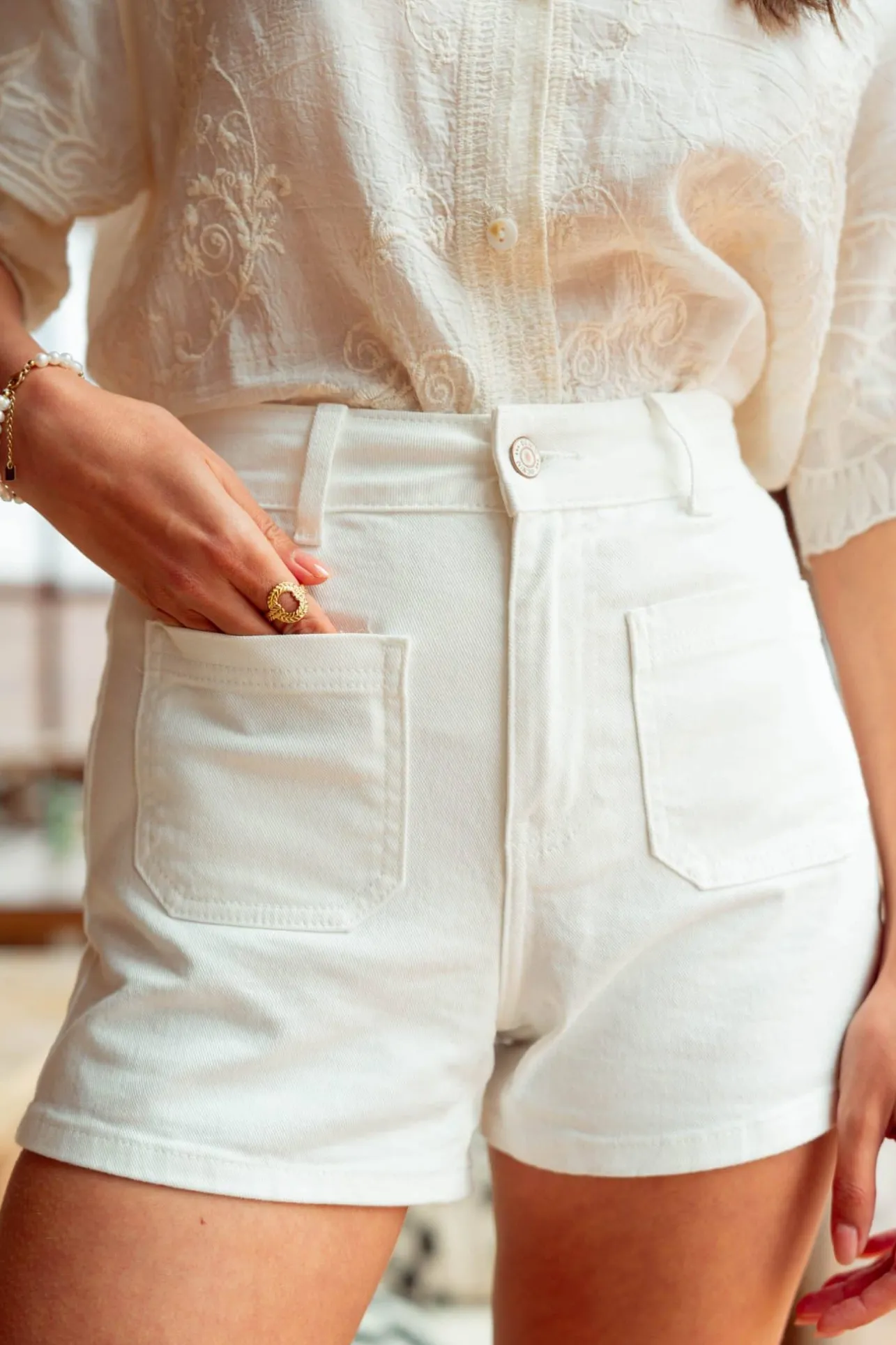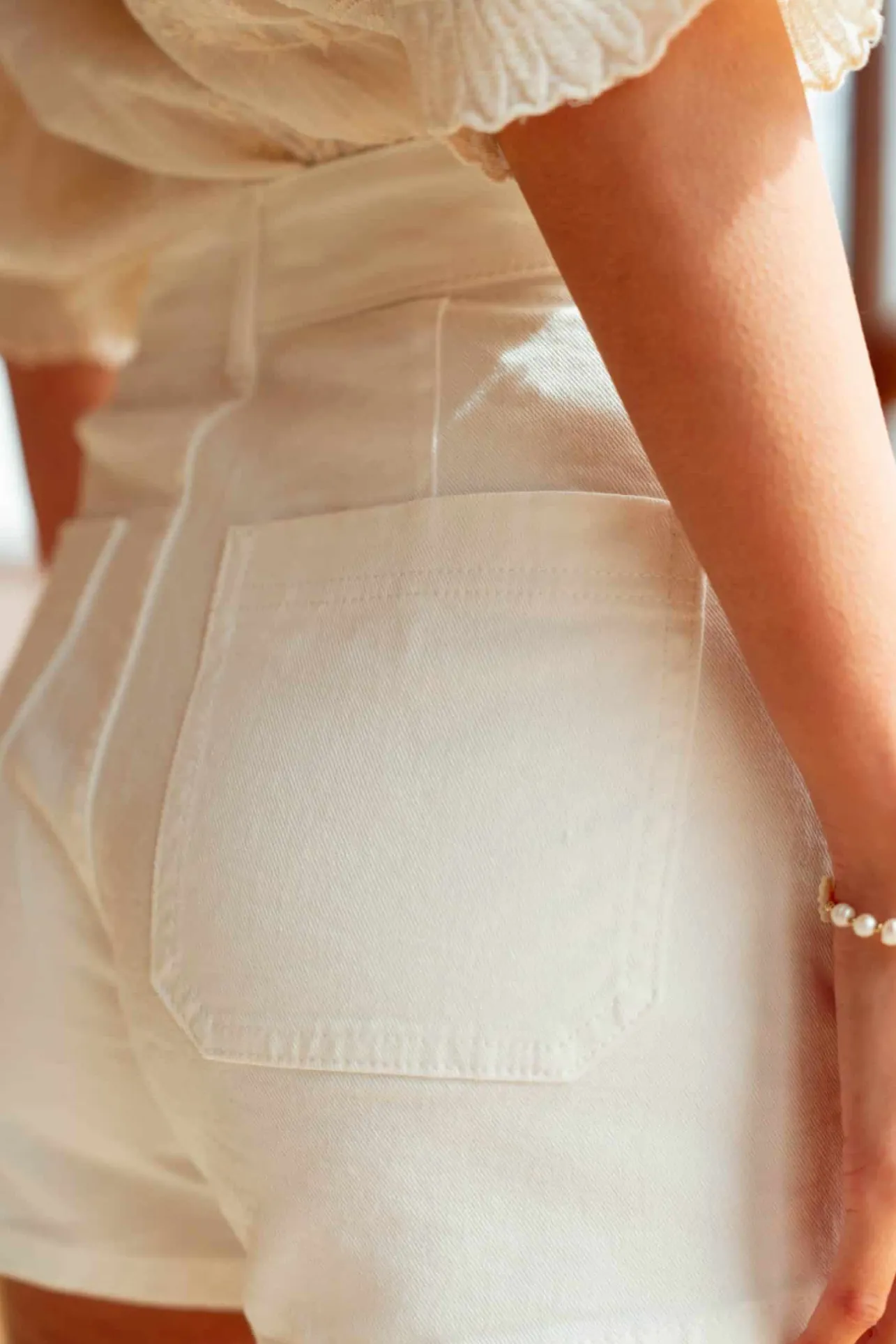 – Short taille haute– Fermeture par fermeture éclair et bouton– Deux poches à l’avant et à l’ar…