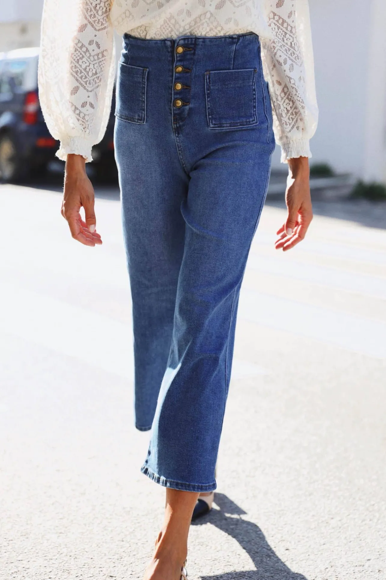 – Pantalon taille haute– Longueur 7/8– Deux poches à l’arrière– Deux poches plaquées à l’avant– Co…