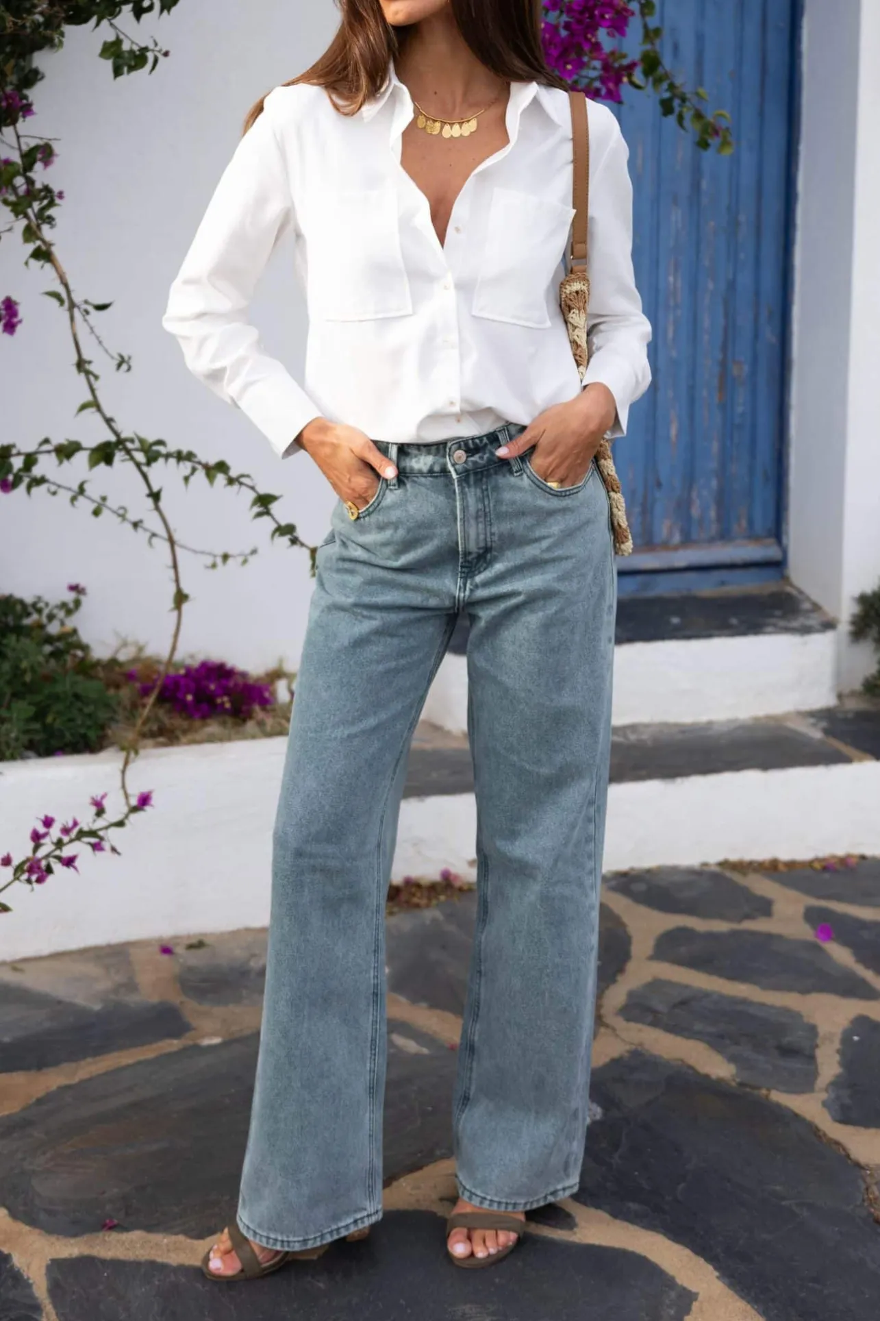 – Jeans taille haute– Deux poches avant– Deux poches arrière– Coupe droite– Couleur : ble…