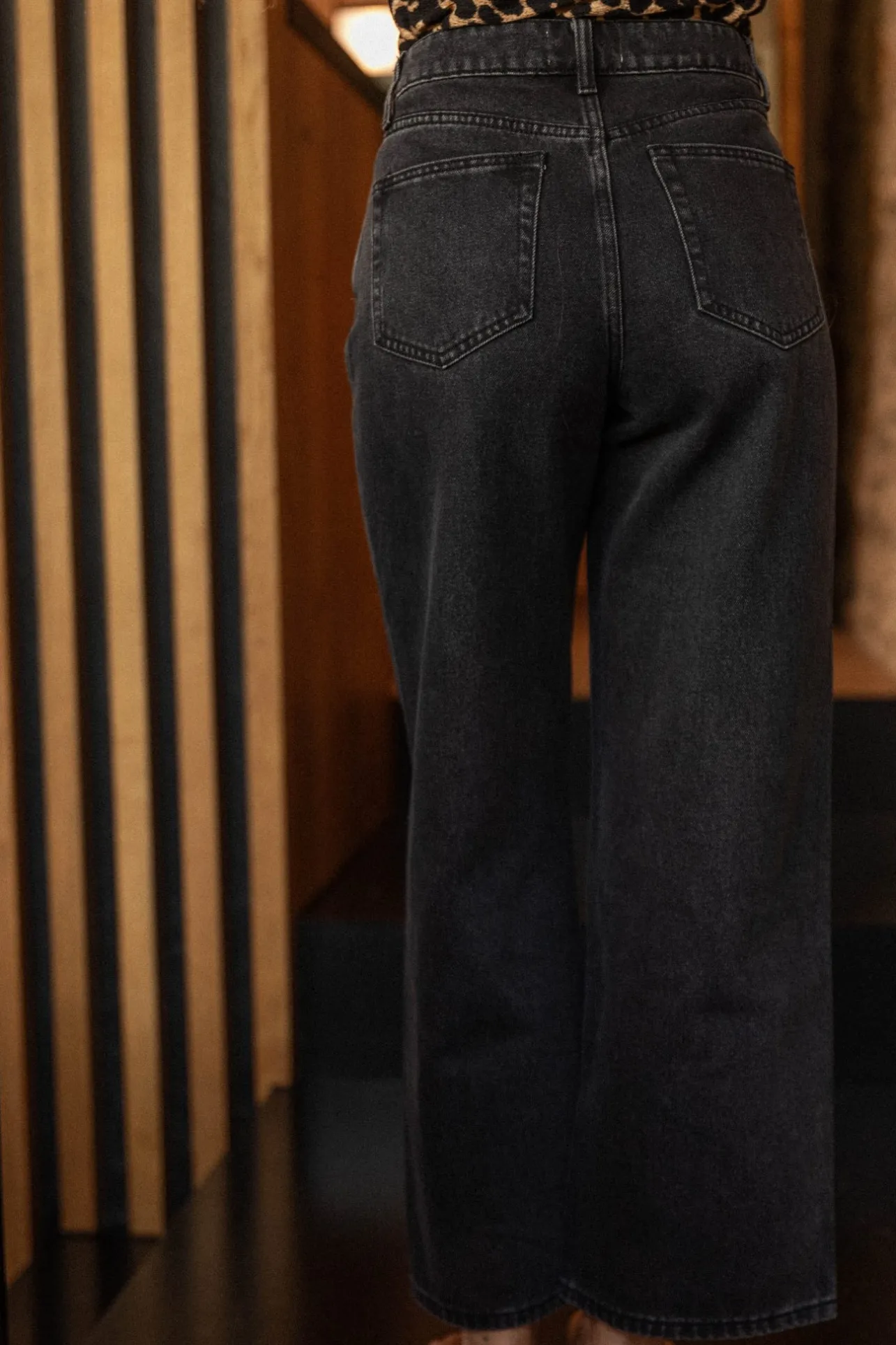 – Jeans taille haute– Deux poches avant– Deux poches arrière– Coupe courte évasée– Co…