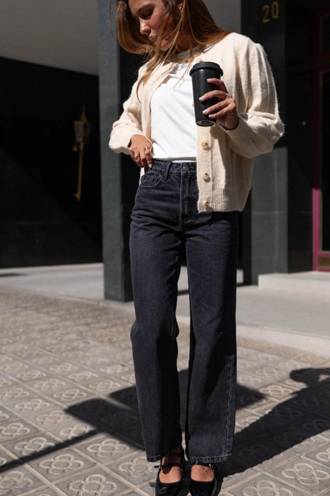 – Jeans taille haute– Deux poches avant– Deux poches arrière– Coupe droite– Couleur : noi…