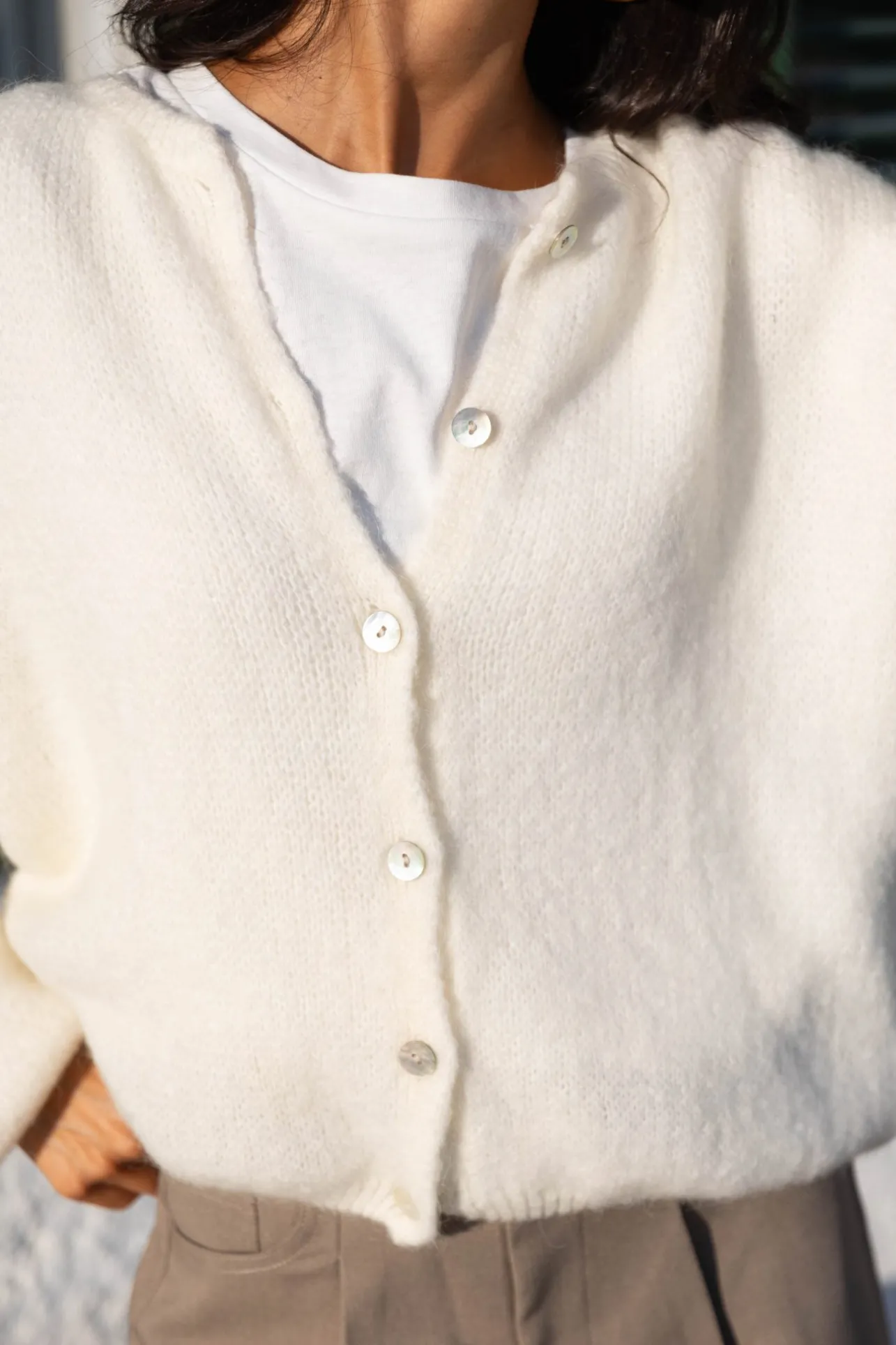 – Fermeture par boutons nacrés