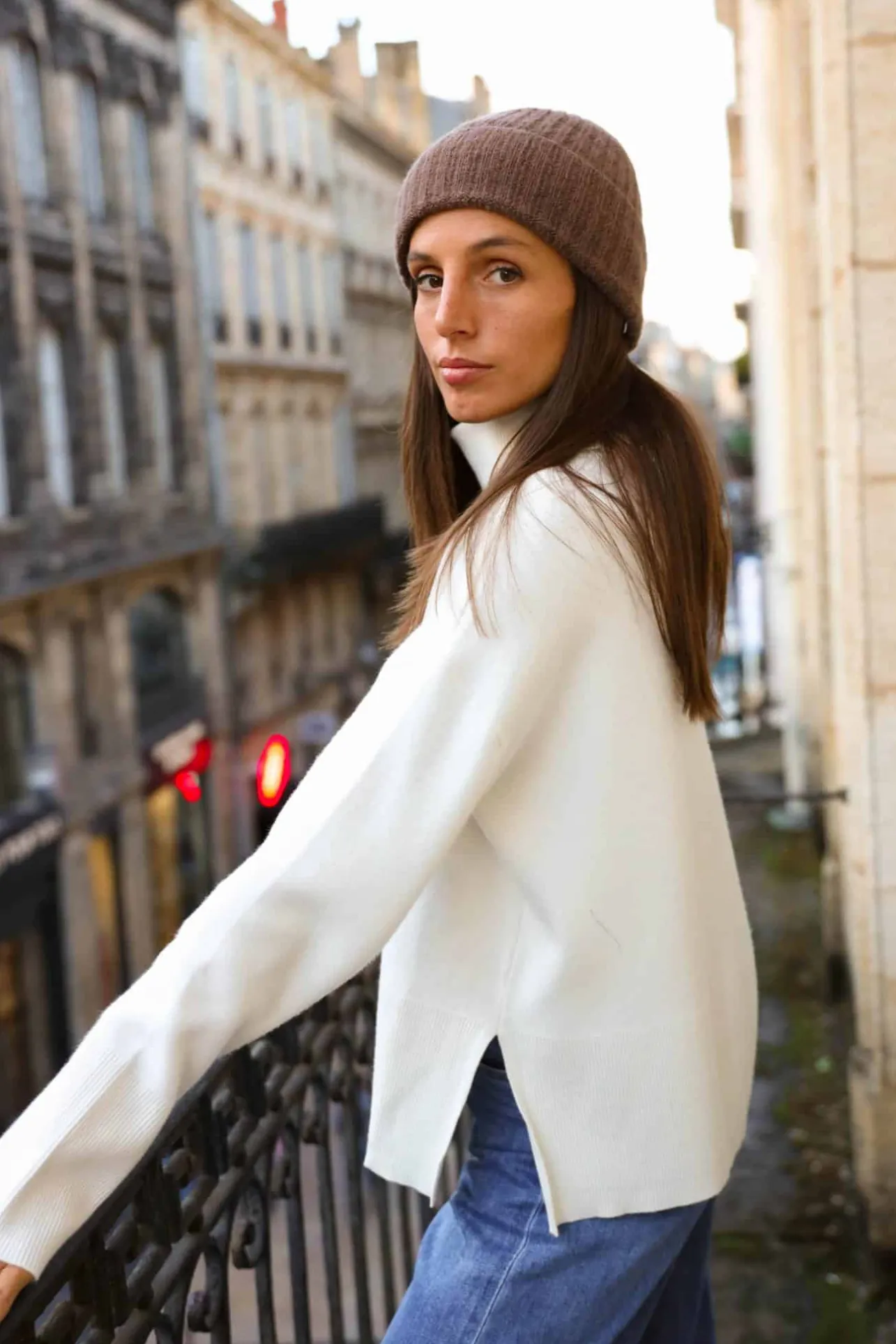 – Col roulé– Pull tout doux– Manches longues– Fendu sur les côtés– Couleur : écruLe ma…