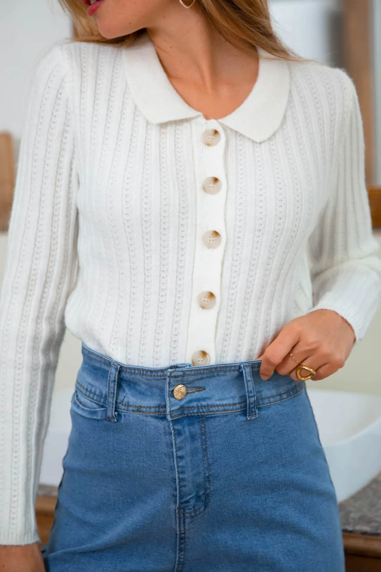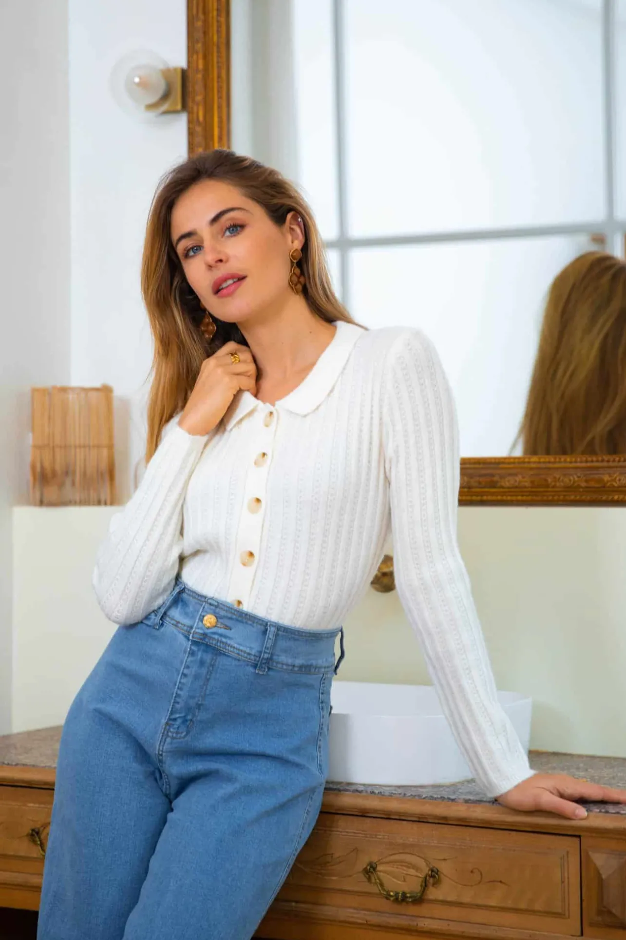 – Gilet col chemise– Manches longues– Fermeture par boutons à l’avant– Couleur : écruLe …