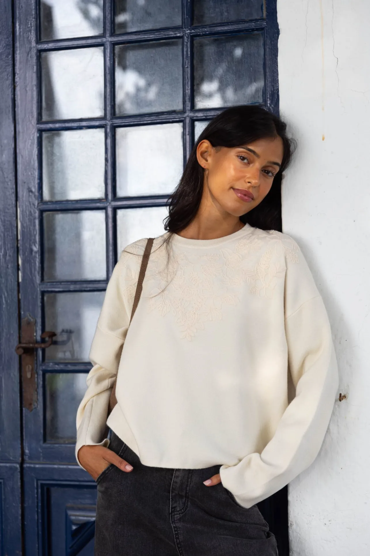 – Pull manches longues– Broderie fleurie– Couleur : écruLe mannequin mesure 1m70 et porte une taille …