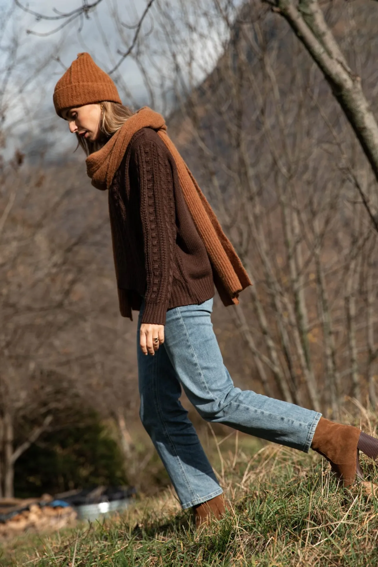 – Pull à torsades– Col montant– Manches longues– Coupe courte– Couleur : marronLe mannequ…