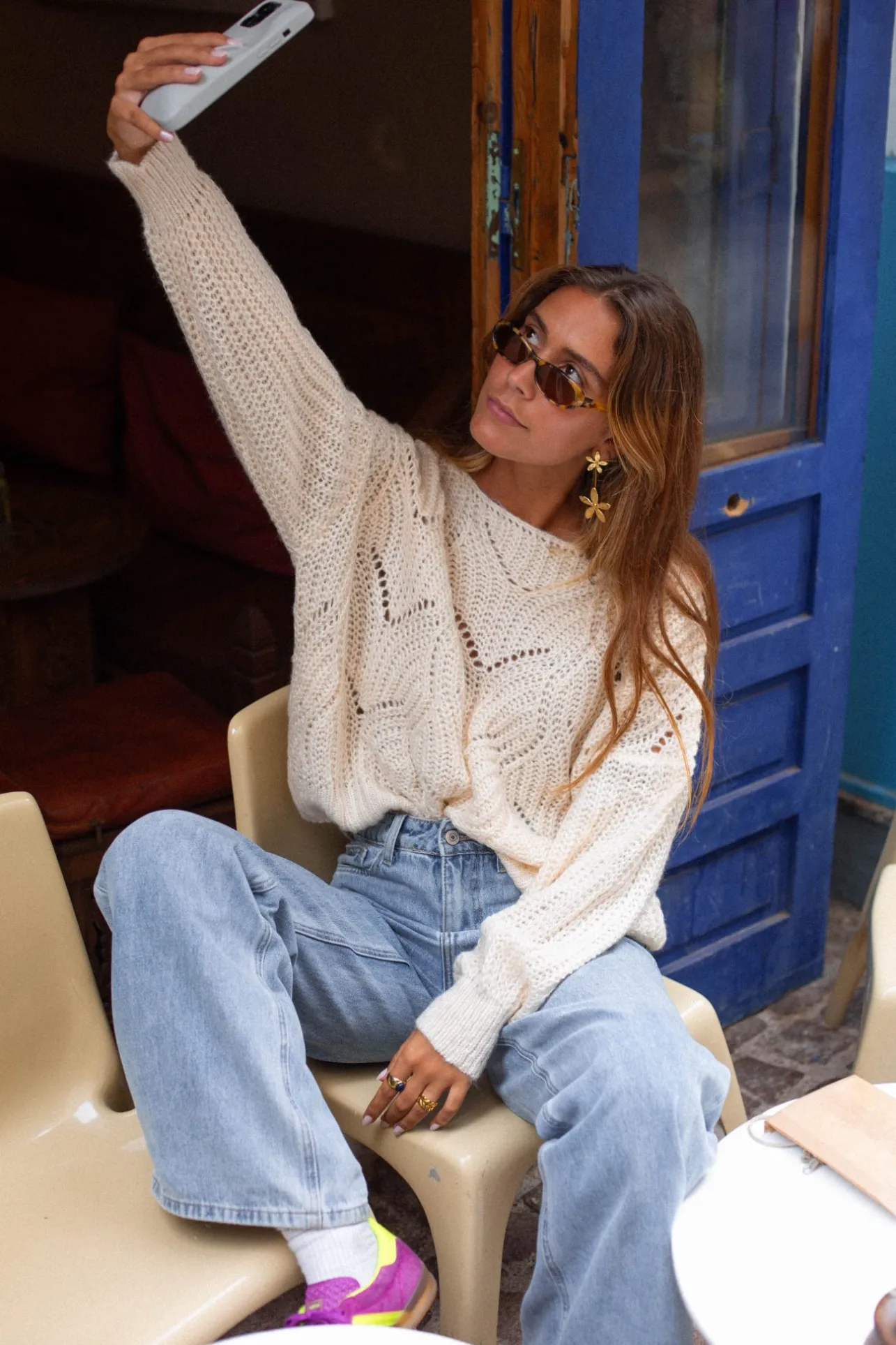 – Taille unique : convient pour un S M L– Pull en maille ajourée– Col rond– Coupe loose– …