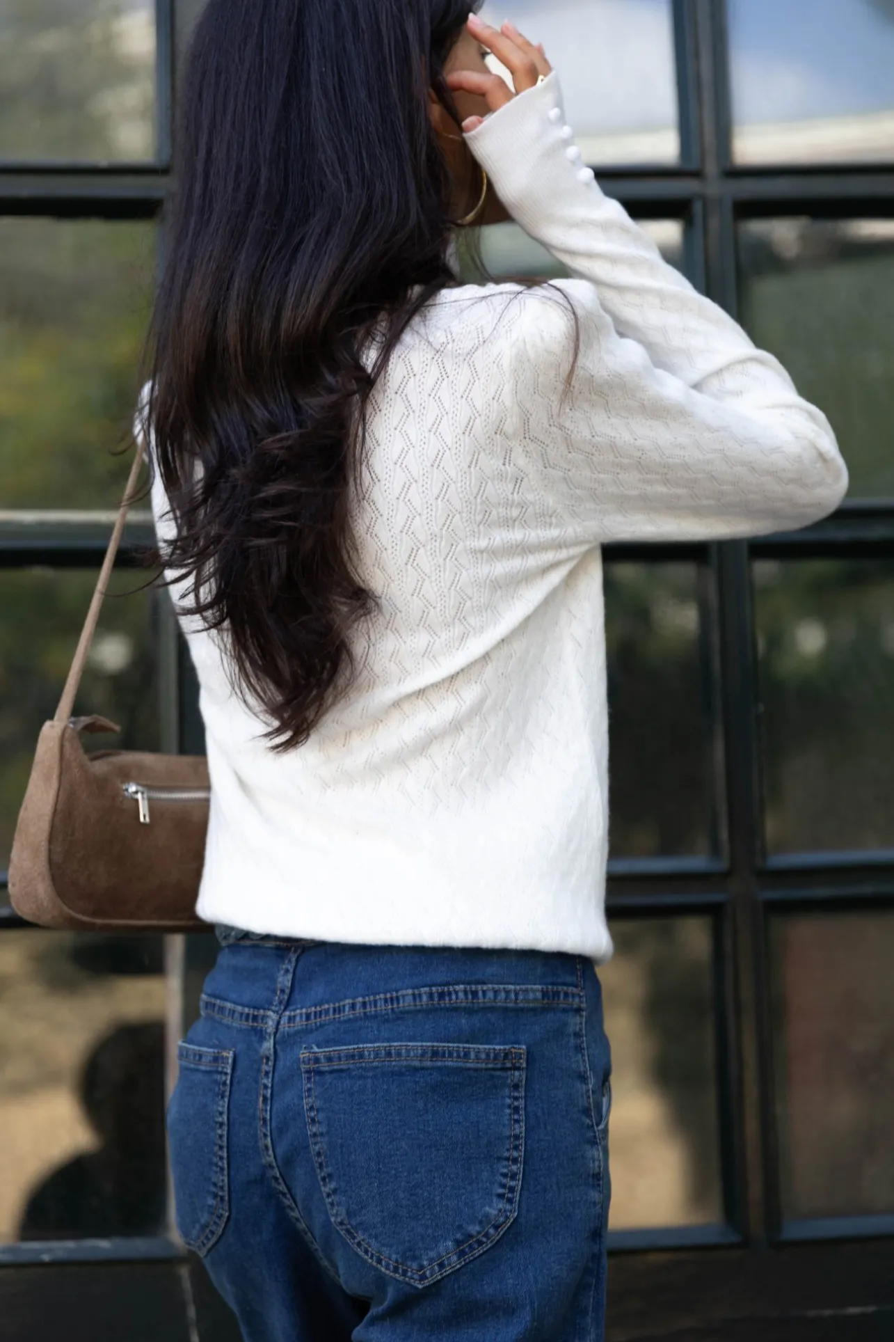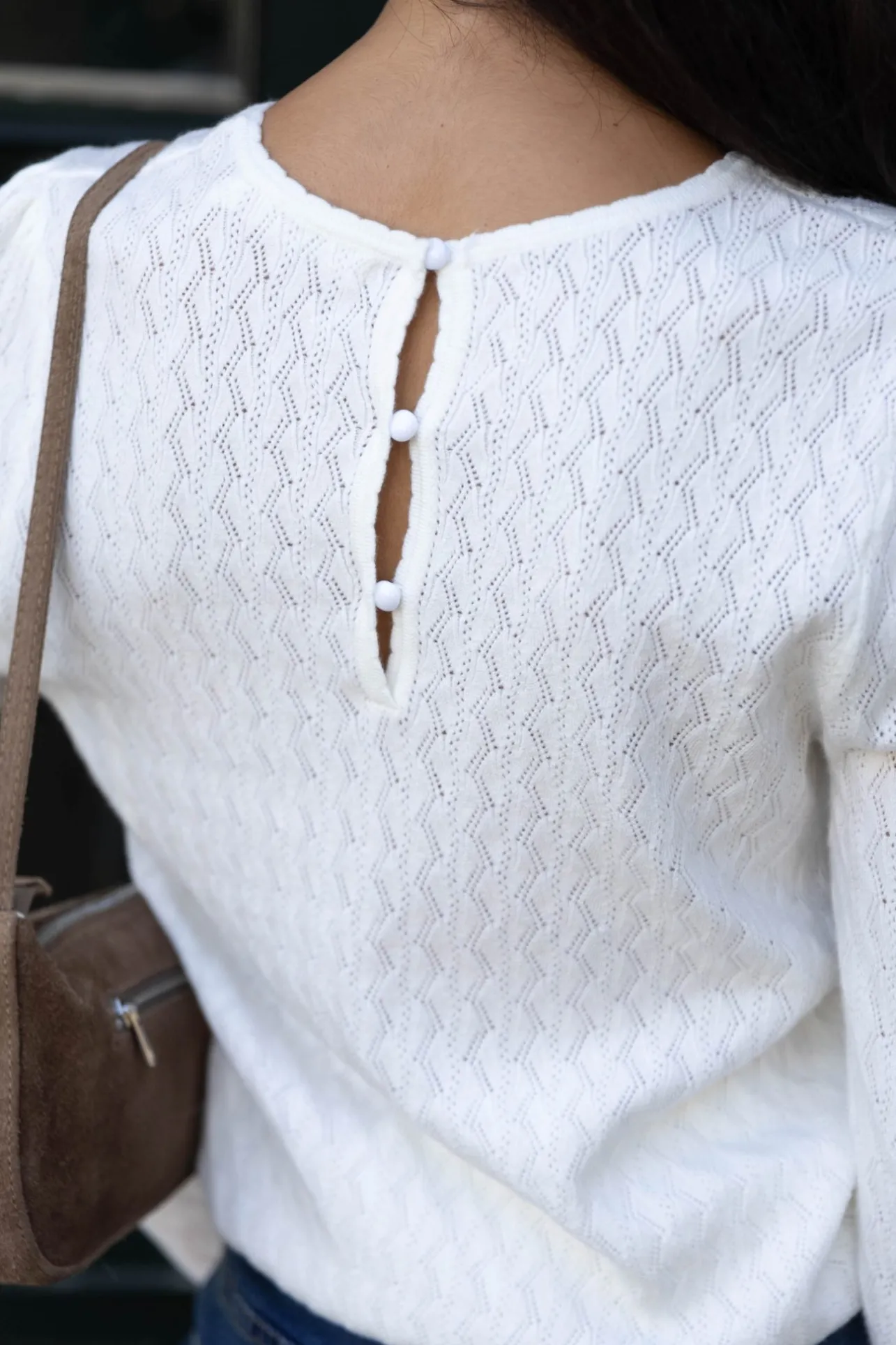 – Top en maille– Maille ajourée– Manches longues resserrées aux poignets– Fermeture par bouton…