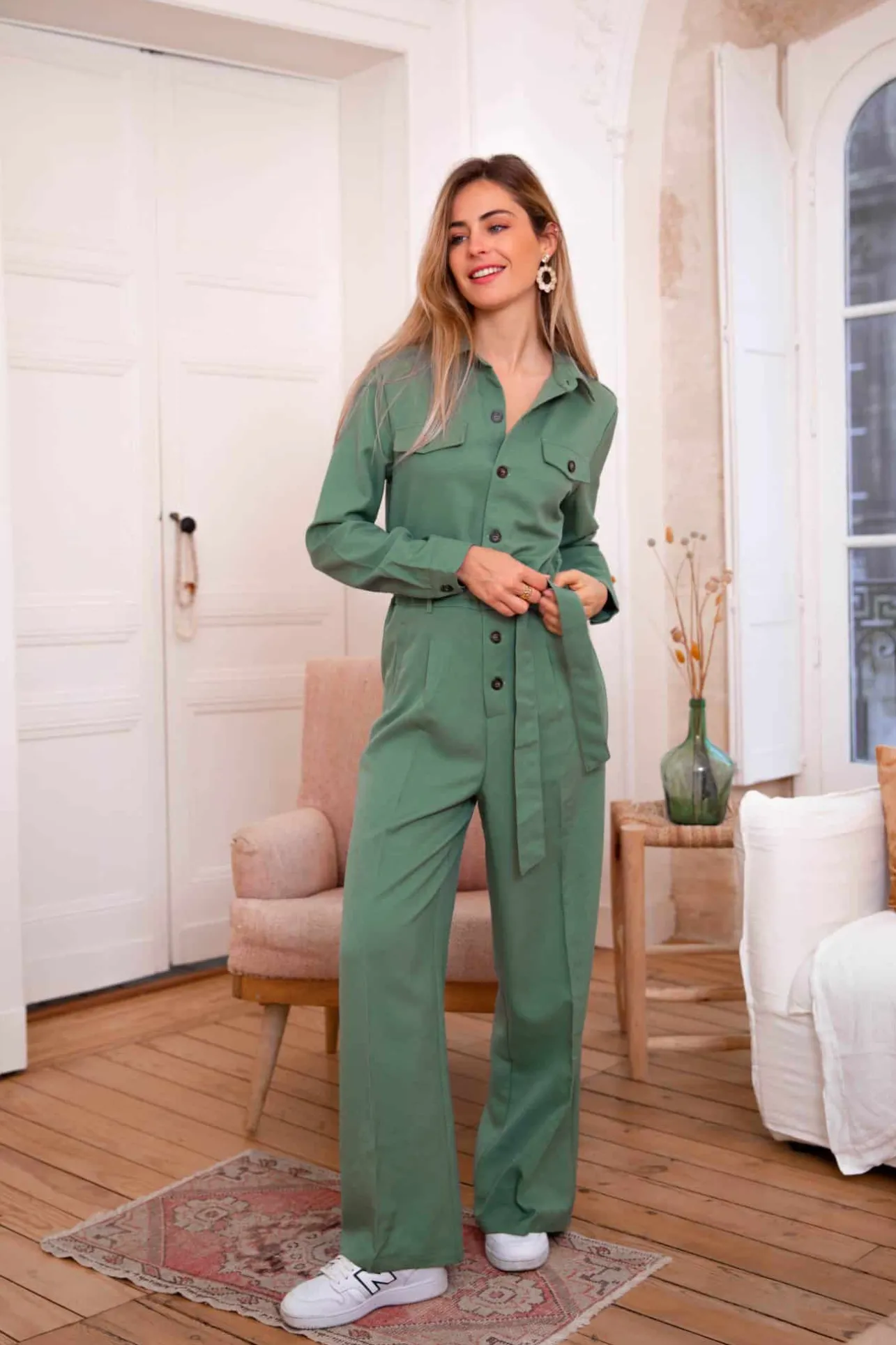 – Combinaison pantalon– Manches longues– Fermeture par boutons à l’avant– Ceinture amovib…