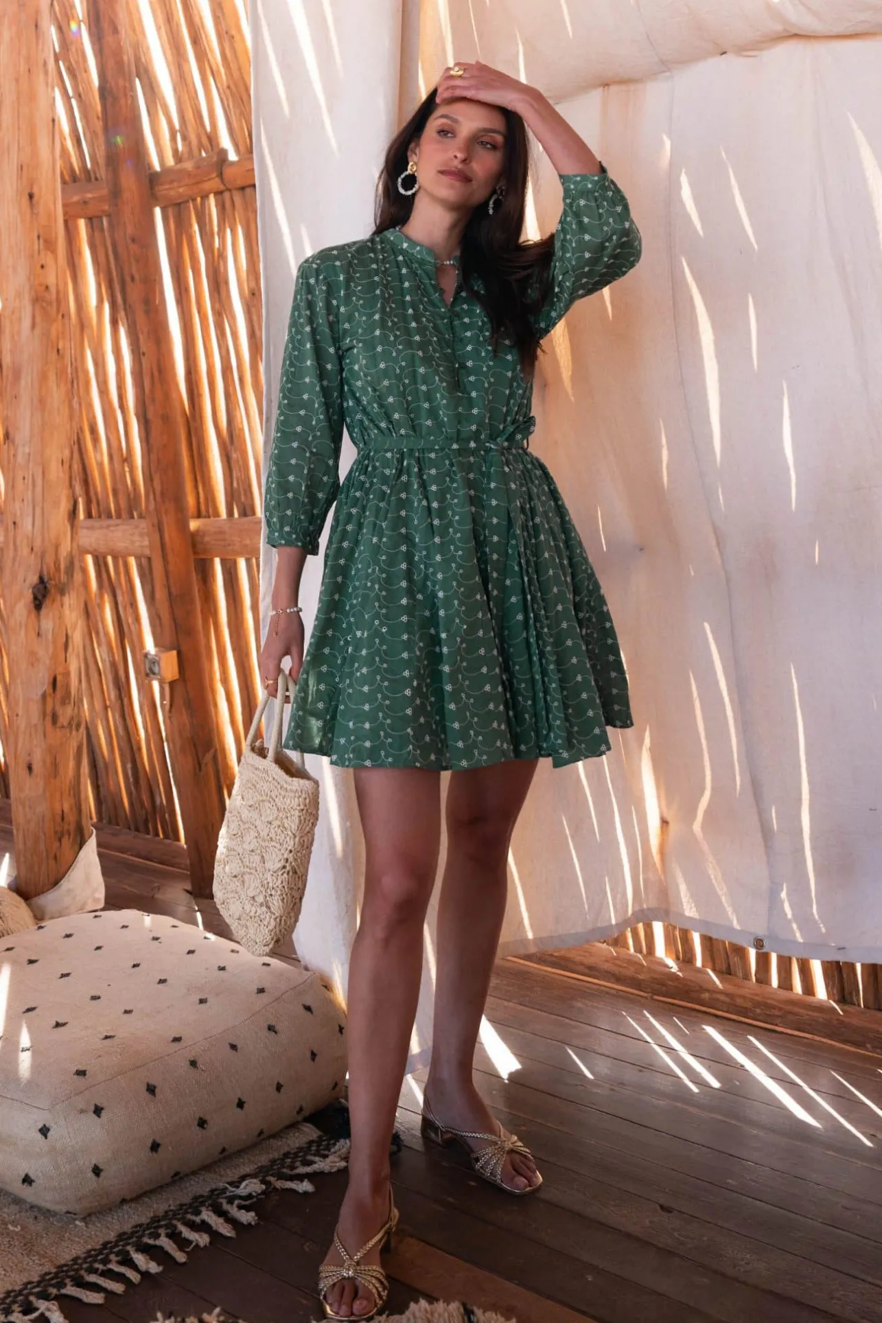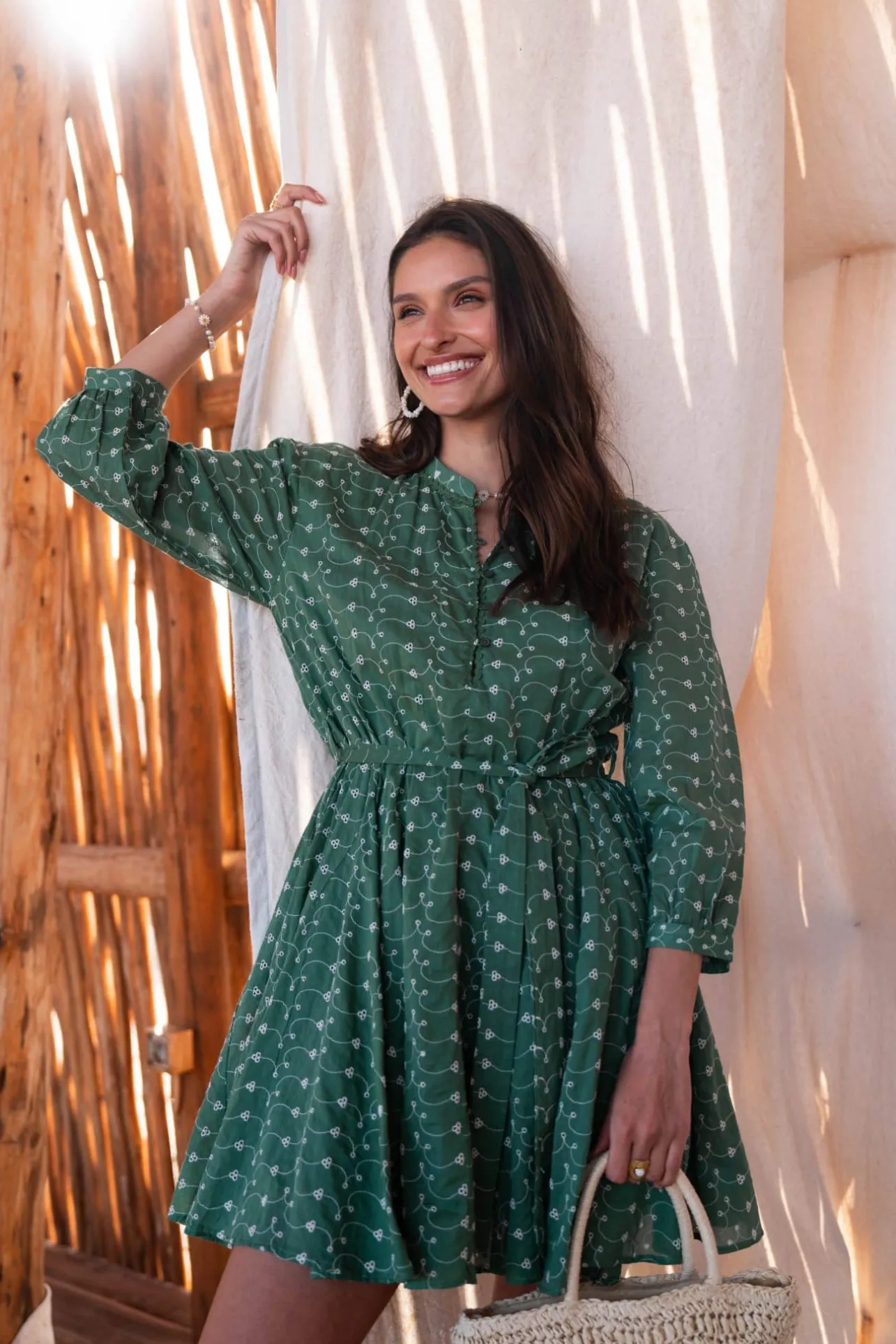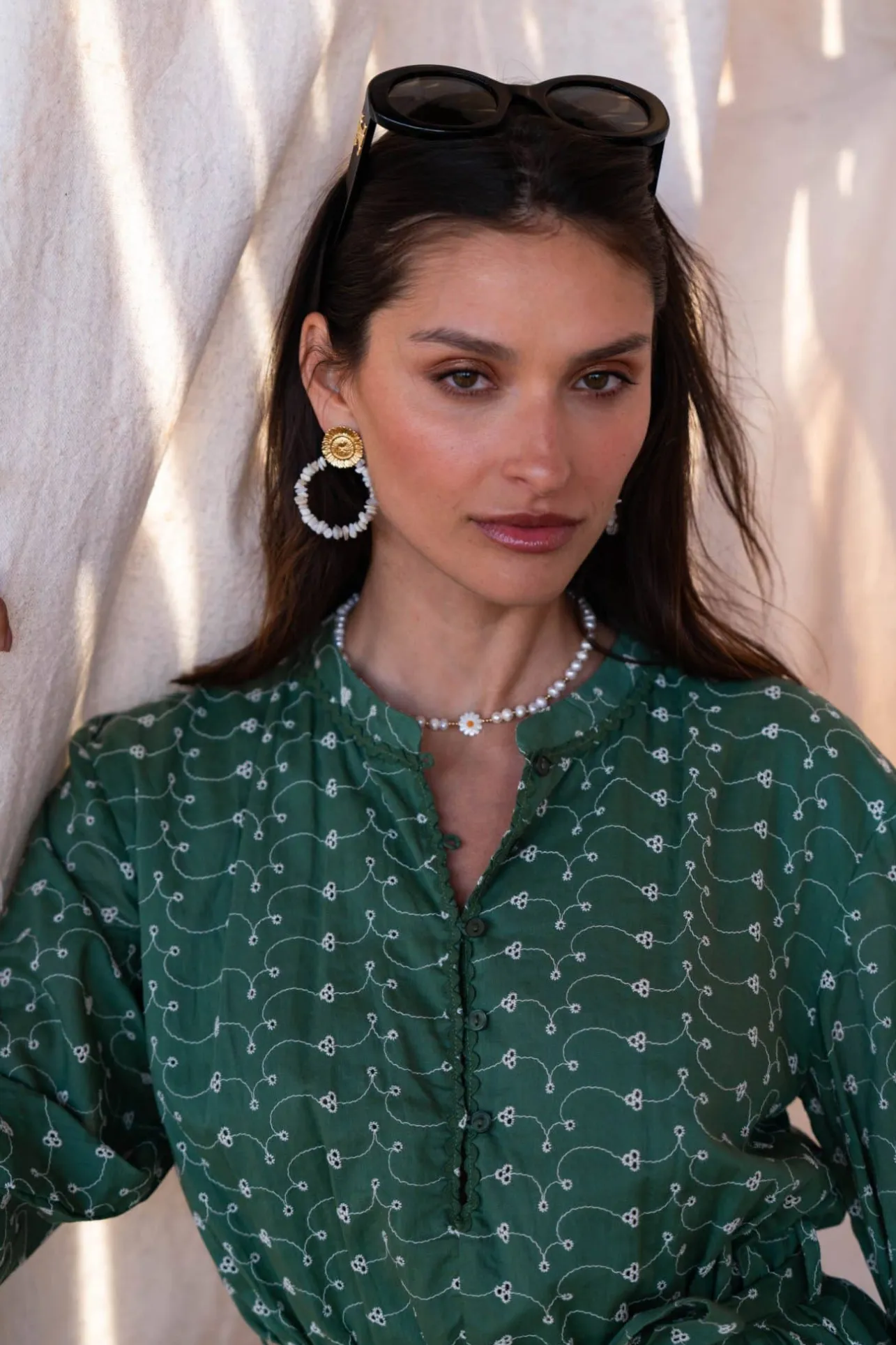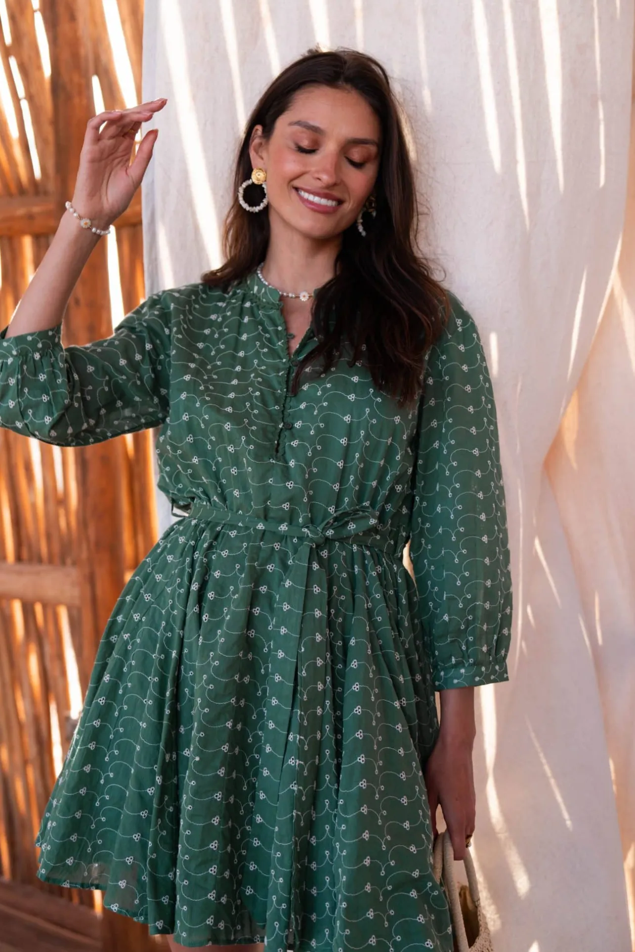 – Robe courte col rond– Coupe fluide– Doublée– Ceinture amovible– Broderies blanches̵…