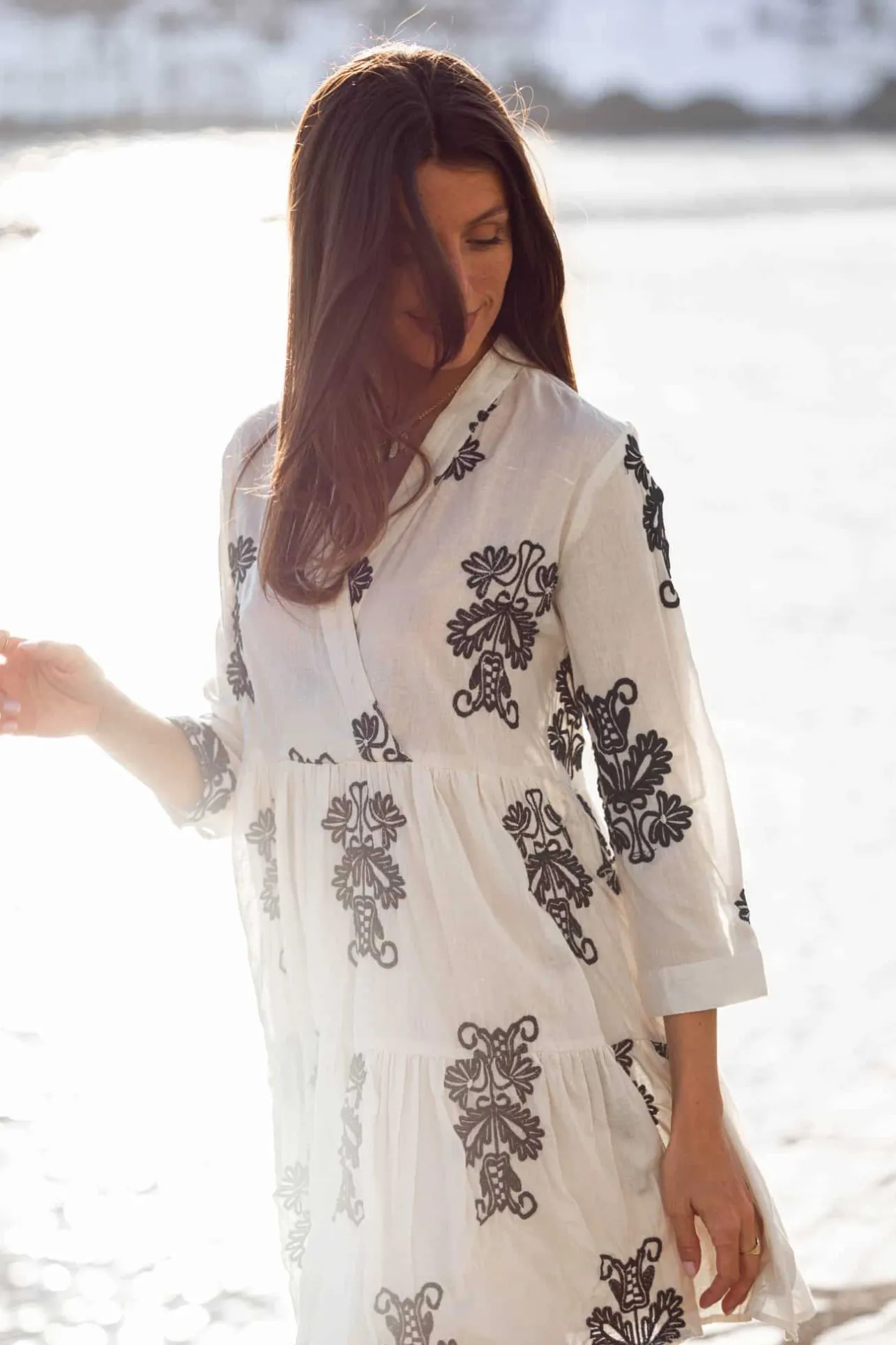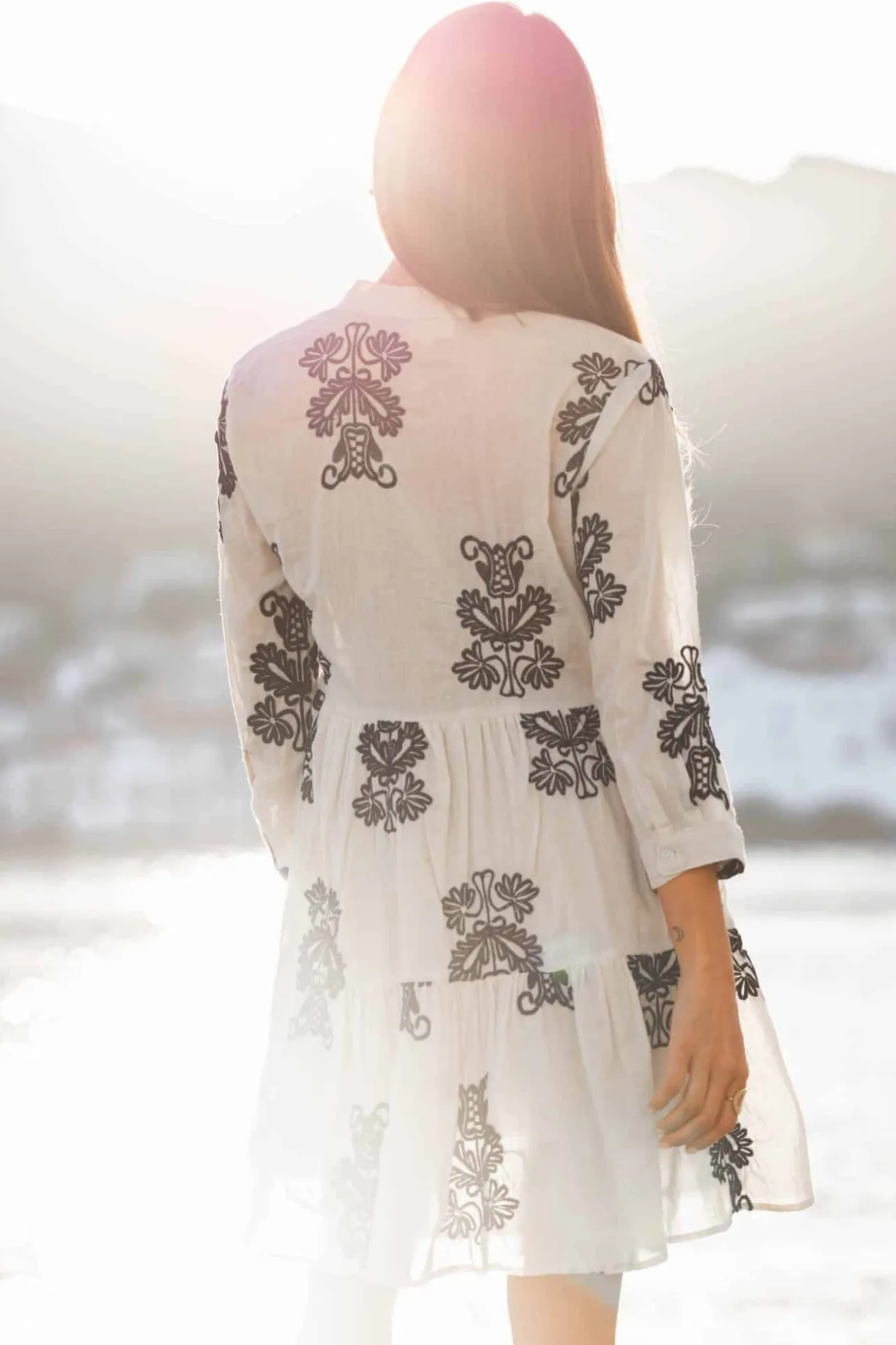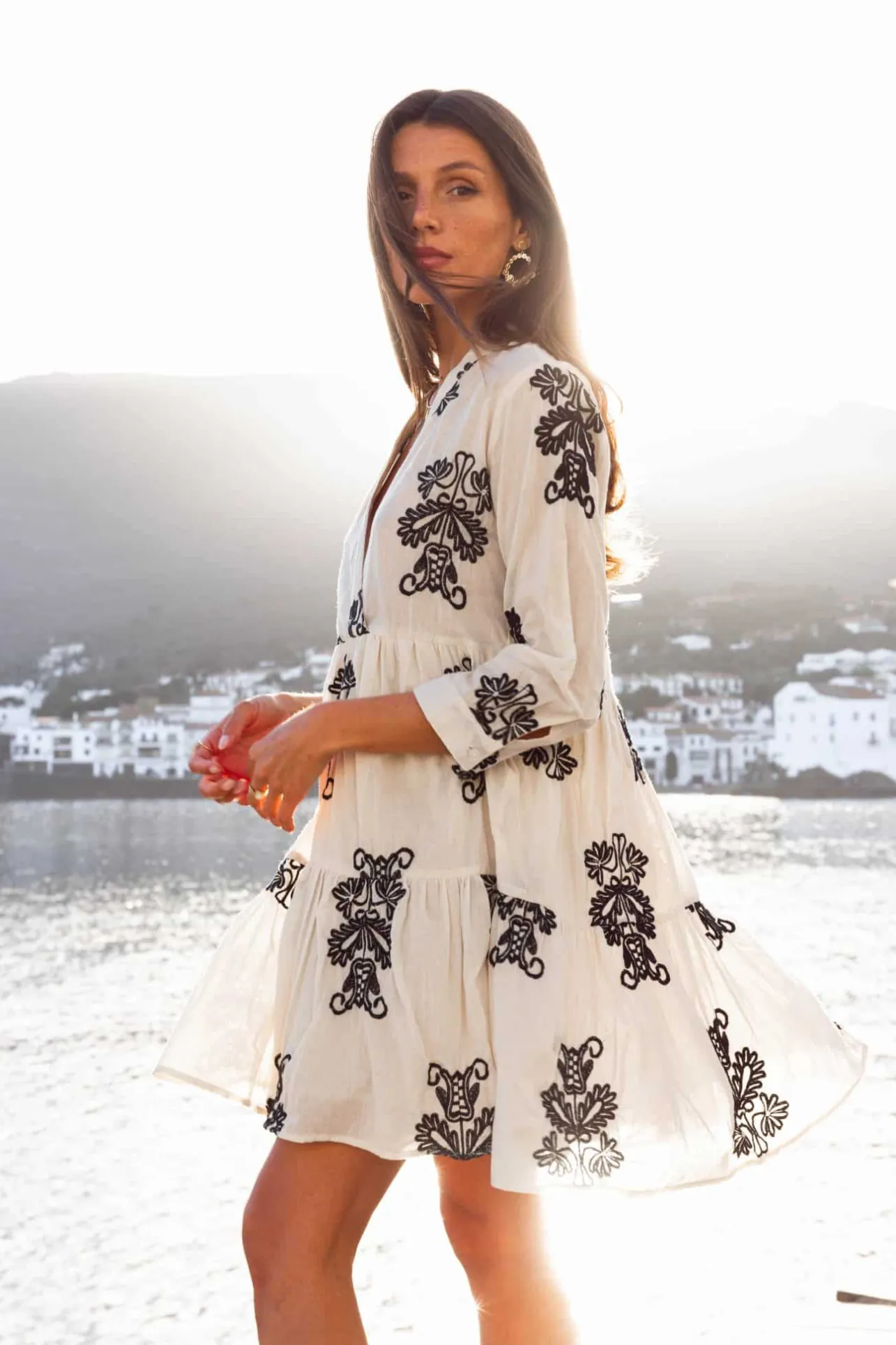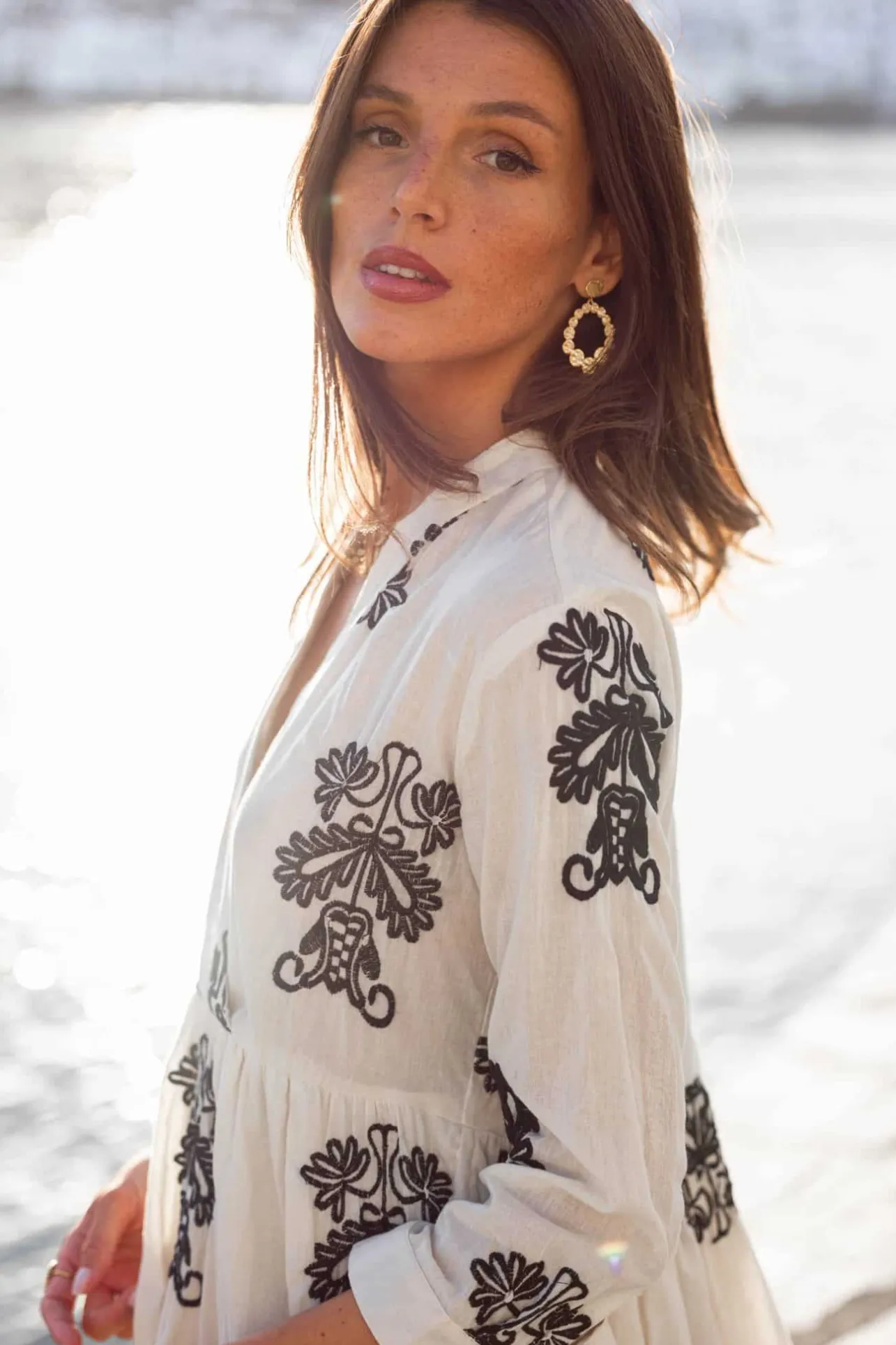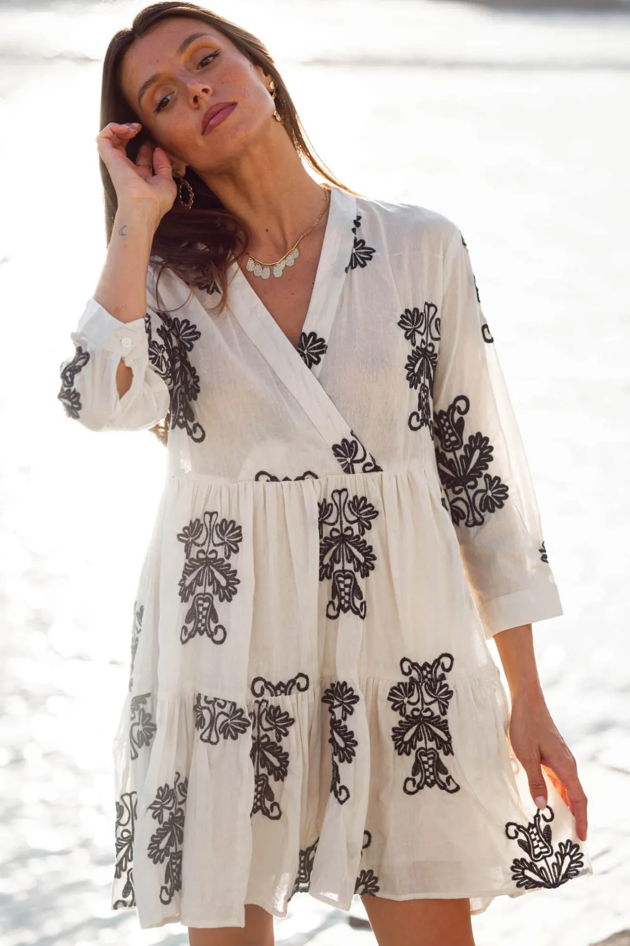 – Robe courte col V– Manches longues 3/4– Doublée– Coupe évasée– Broderies fleuriesR…
