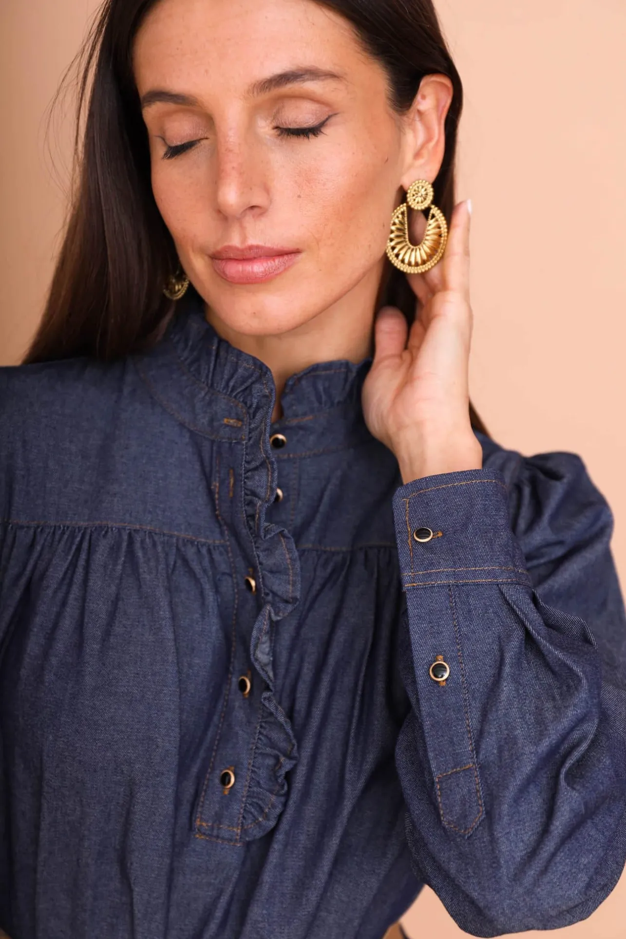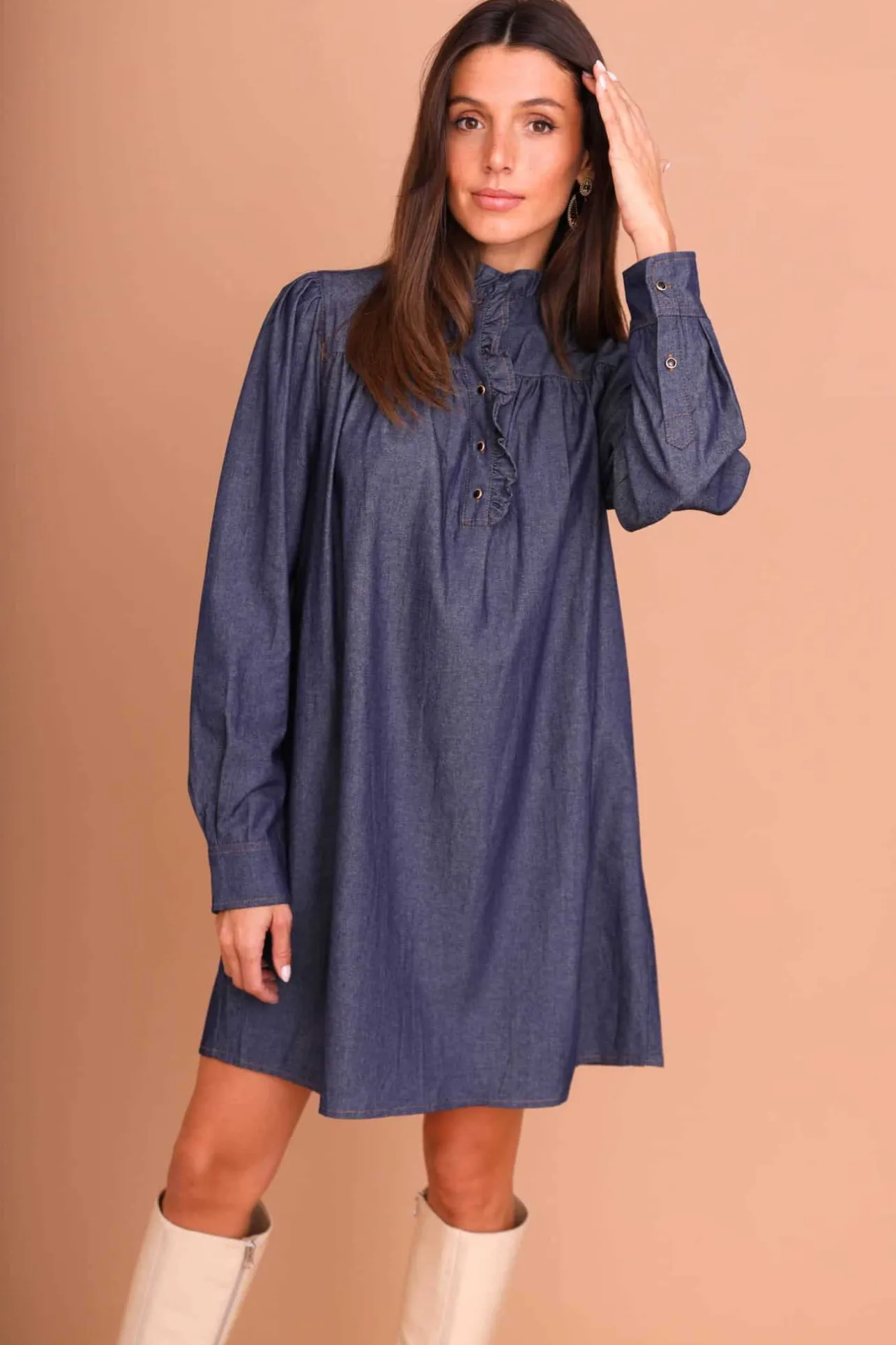 – Robe courte col rond– Manches longues resserrées aux poignets– Coupe droite– Fermeture par bo…