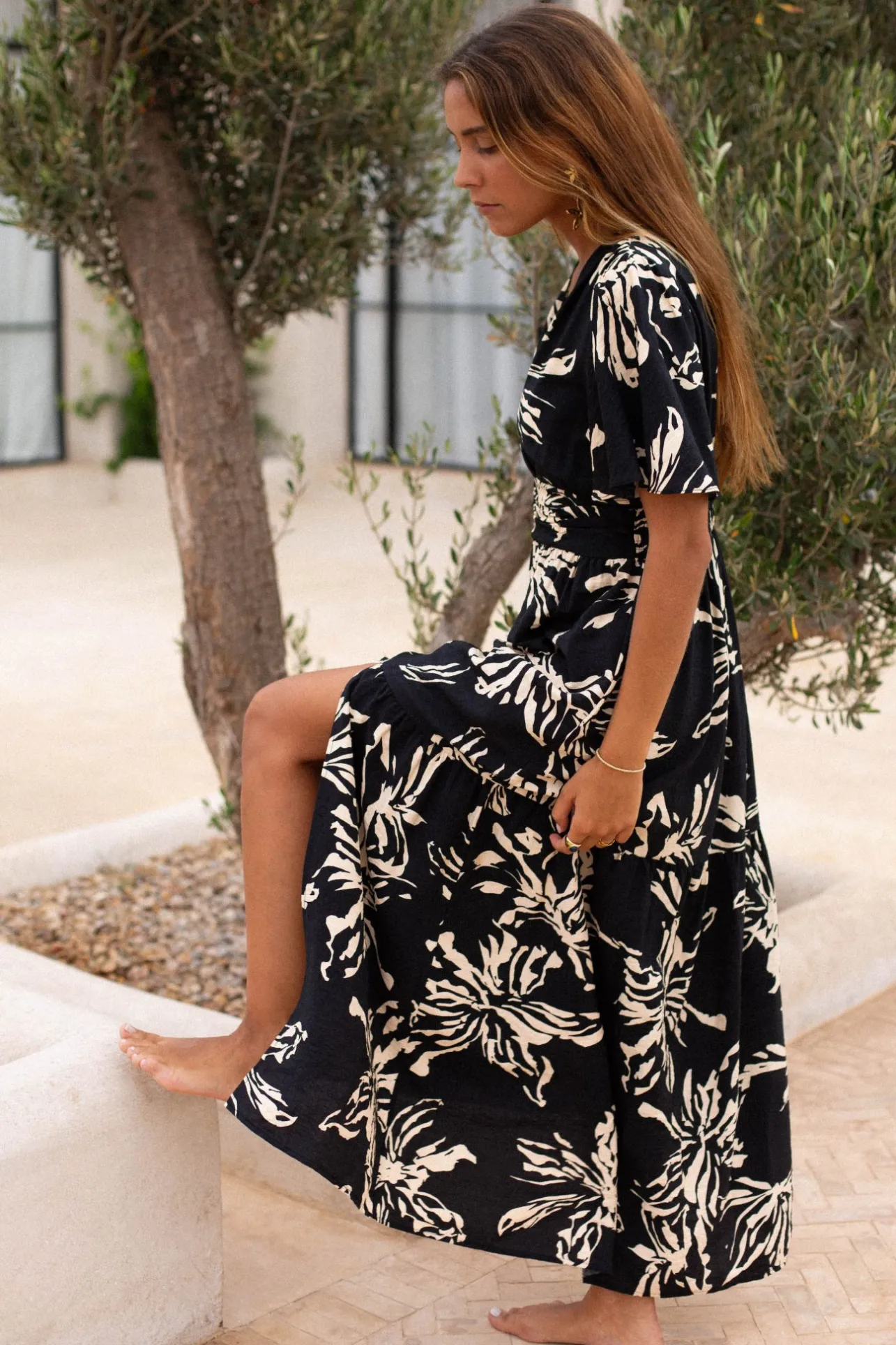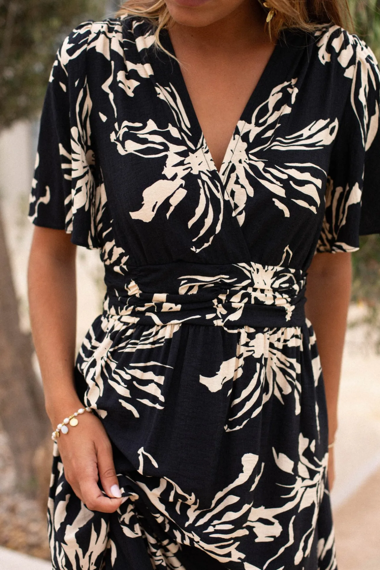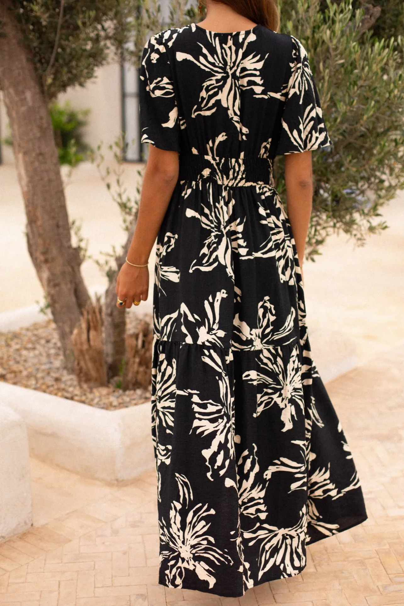 – Robe longue col V– Manches courtes– Fendue sur le côté– Coupe fluide– Couleur : noir e…