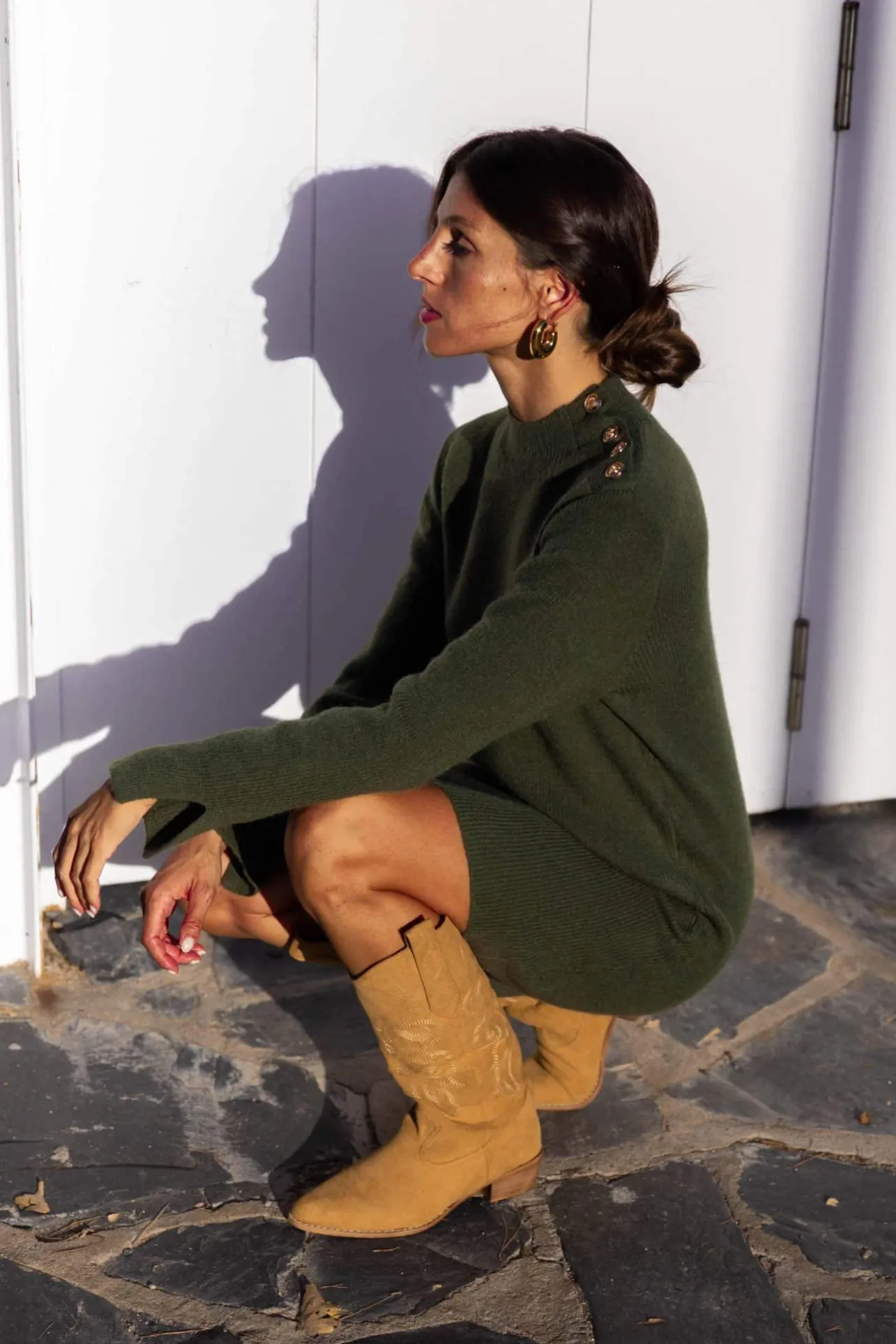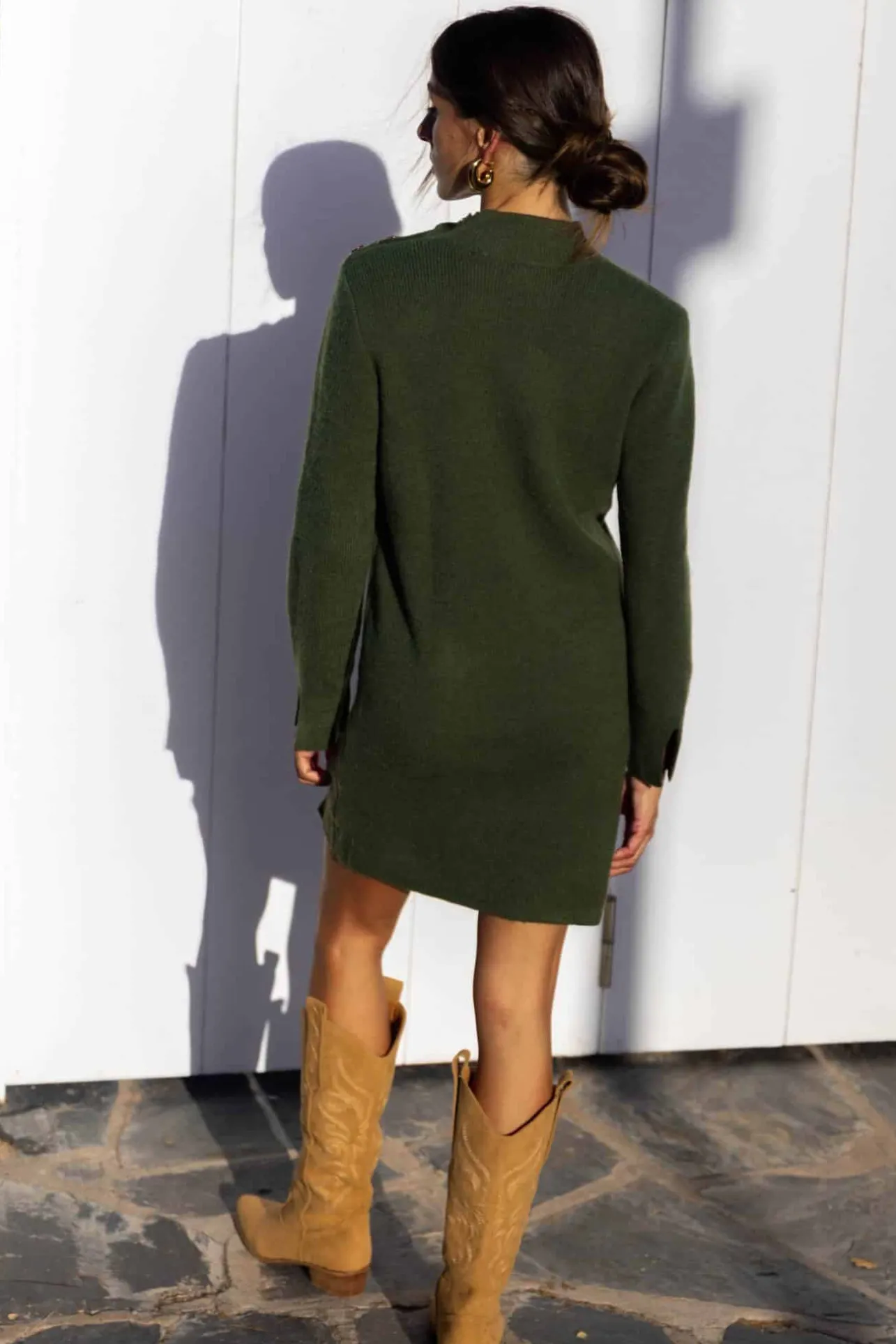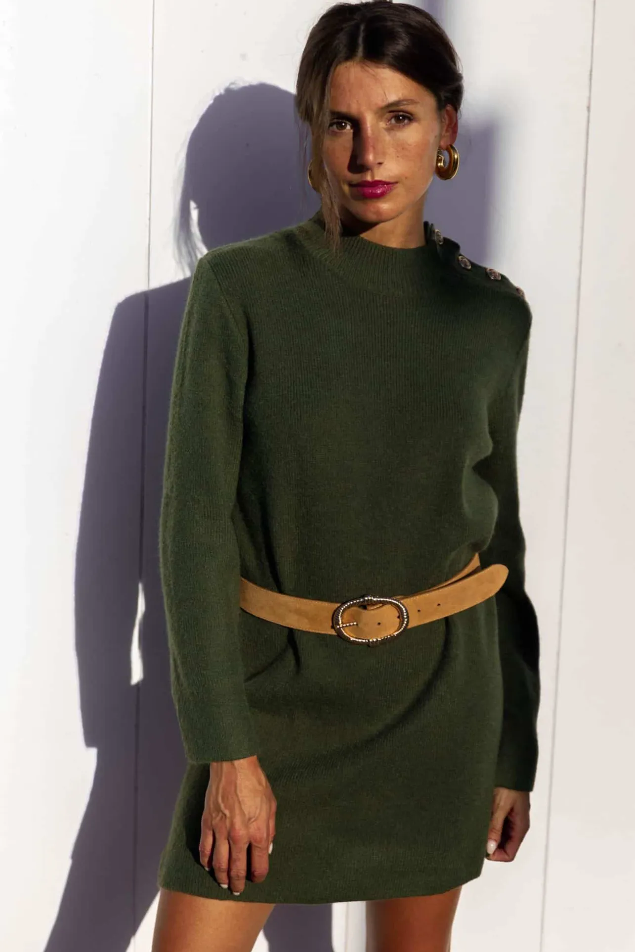 – Fermeture par boutons dorés sur l’épaule