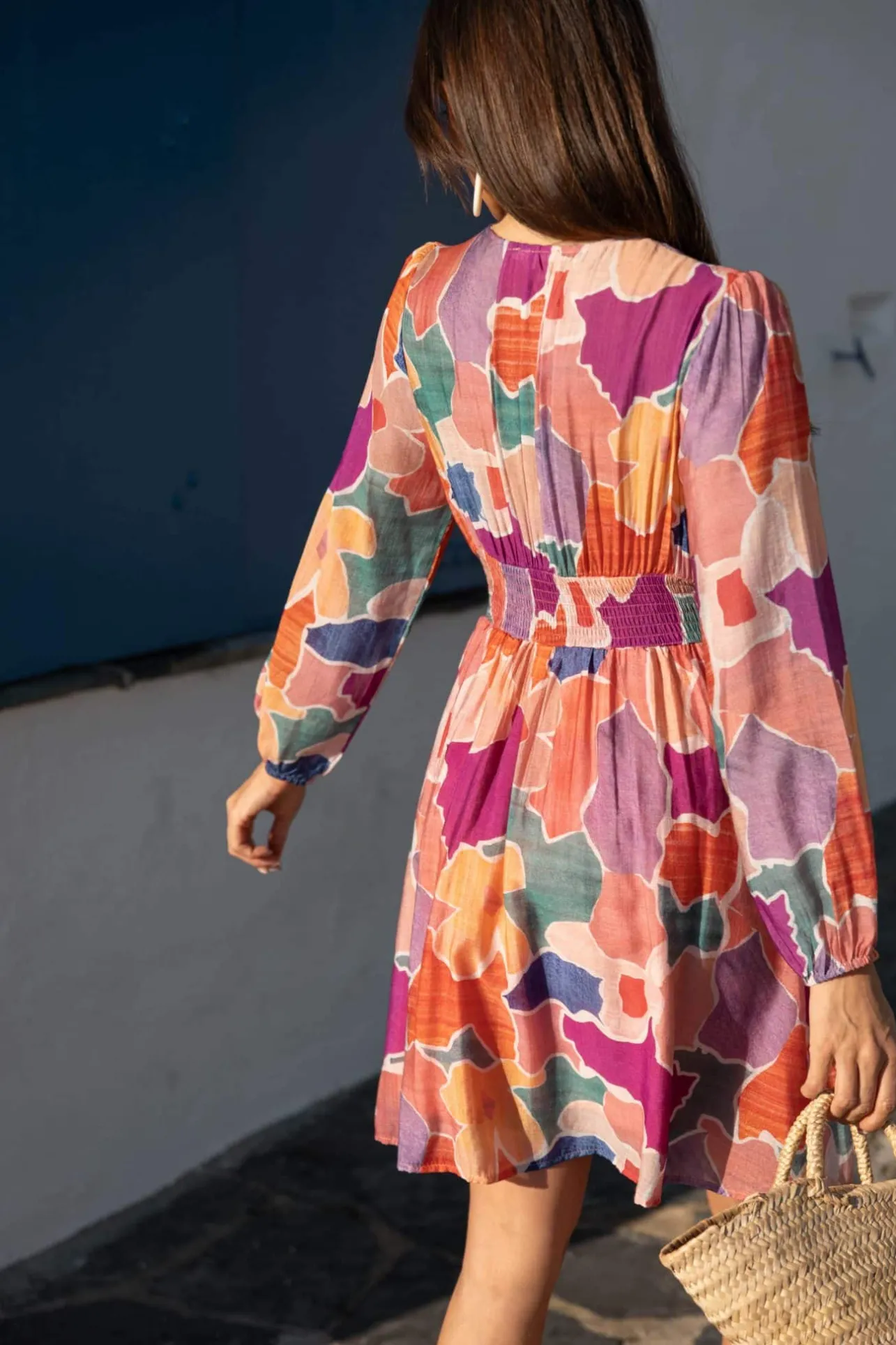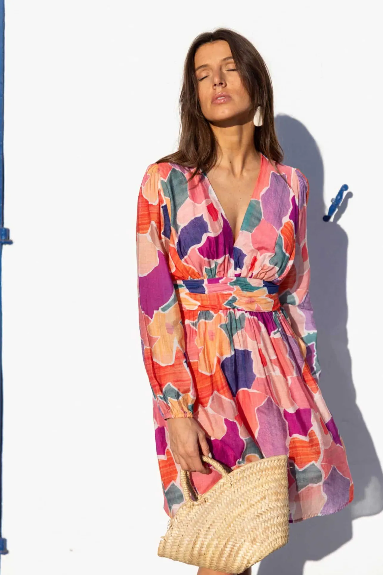 – Robe courte col V– Manches longues resserrées aux poignets– Élastique à l’arrière de la taille…