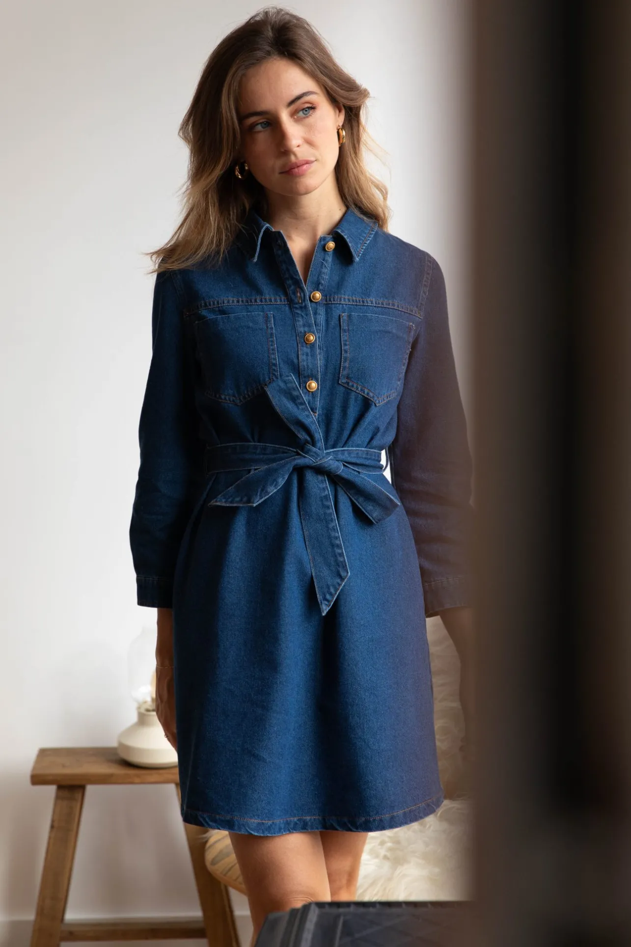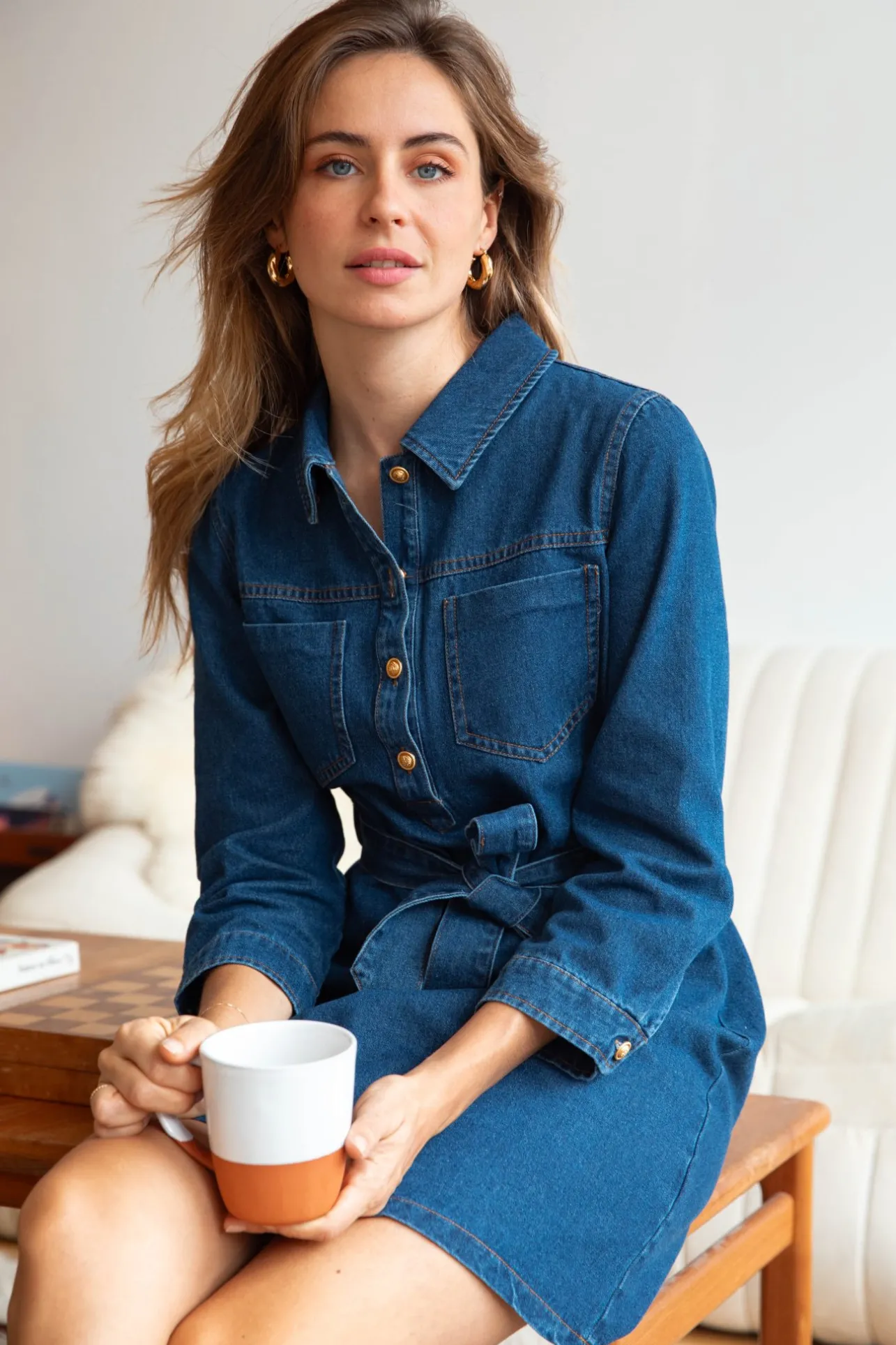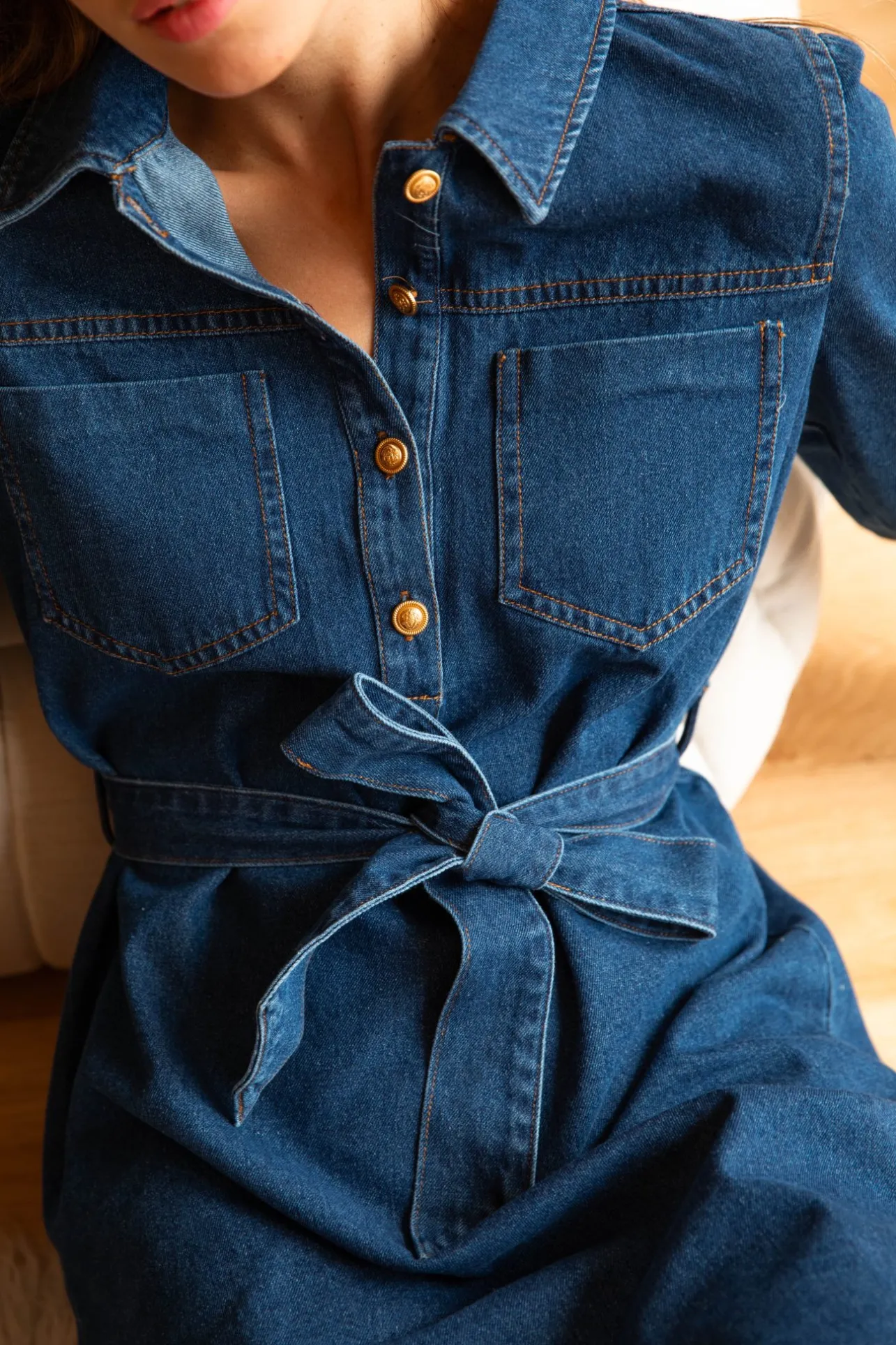 – Robe chemise en jean– Col chemise– Fermeture par boutons dorés– Manches courtes longues–…