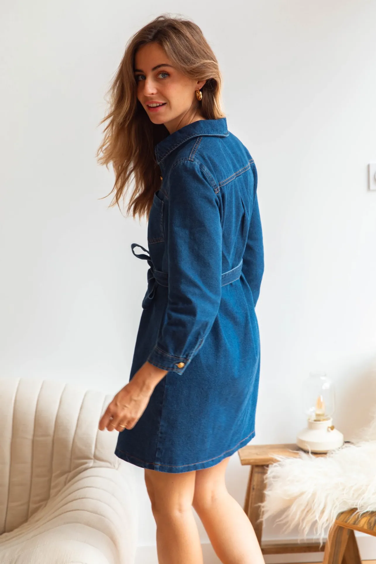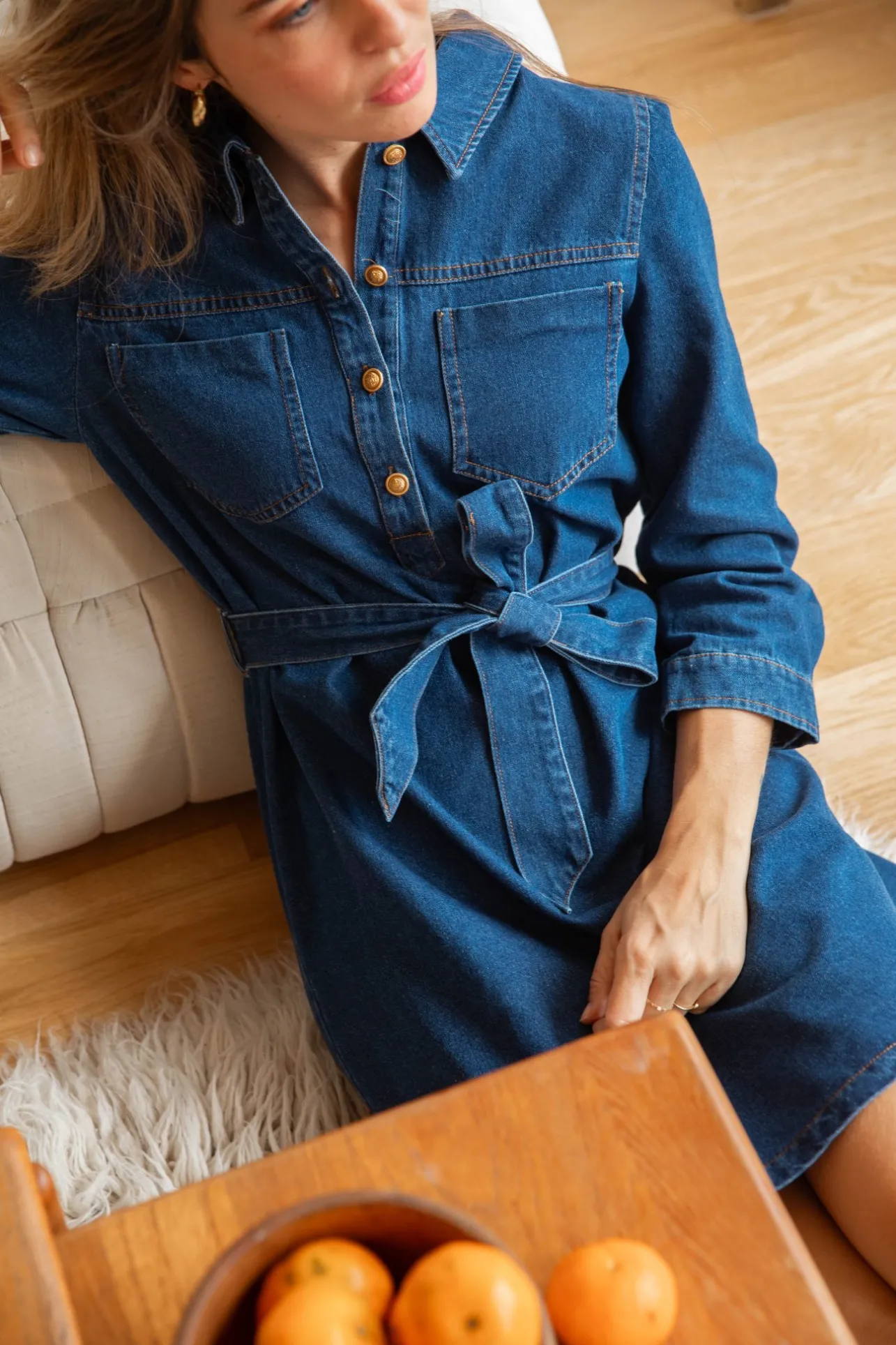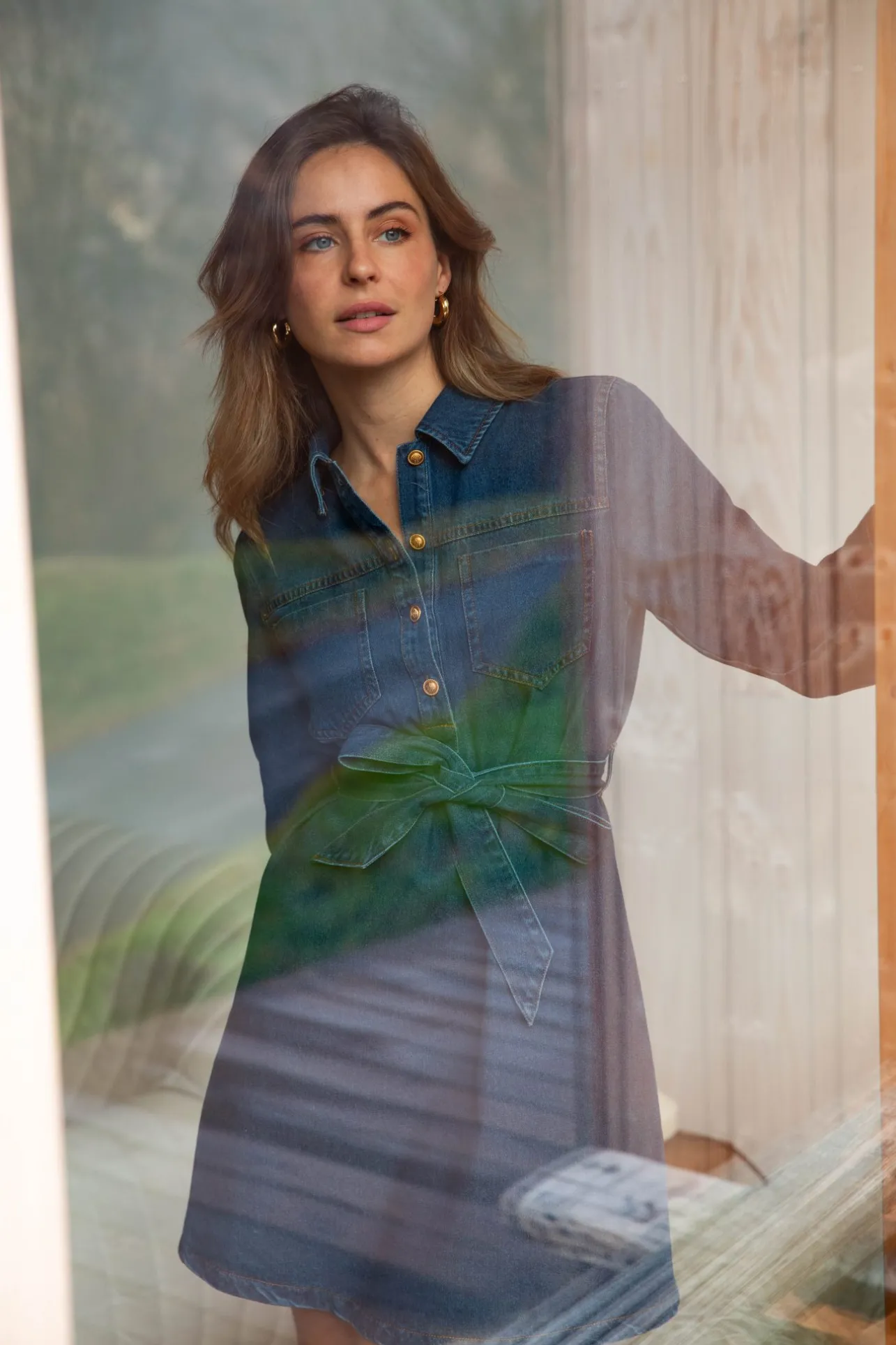 – Robe chemise en jean– Col chemise– Fermeture par boutons dorés– Manches courtes longues–…