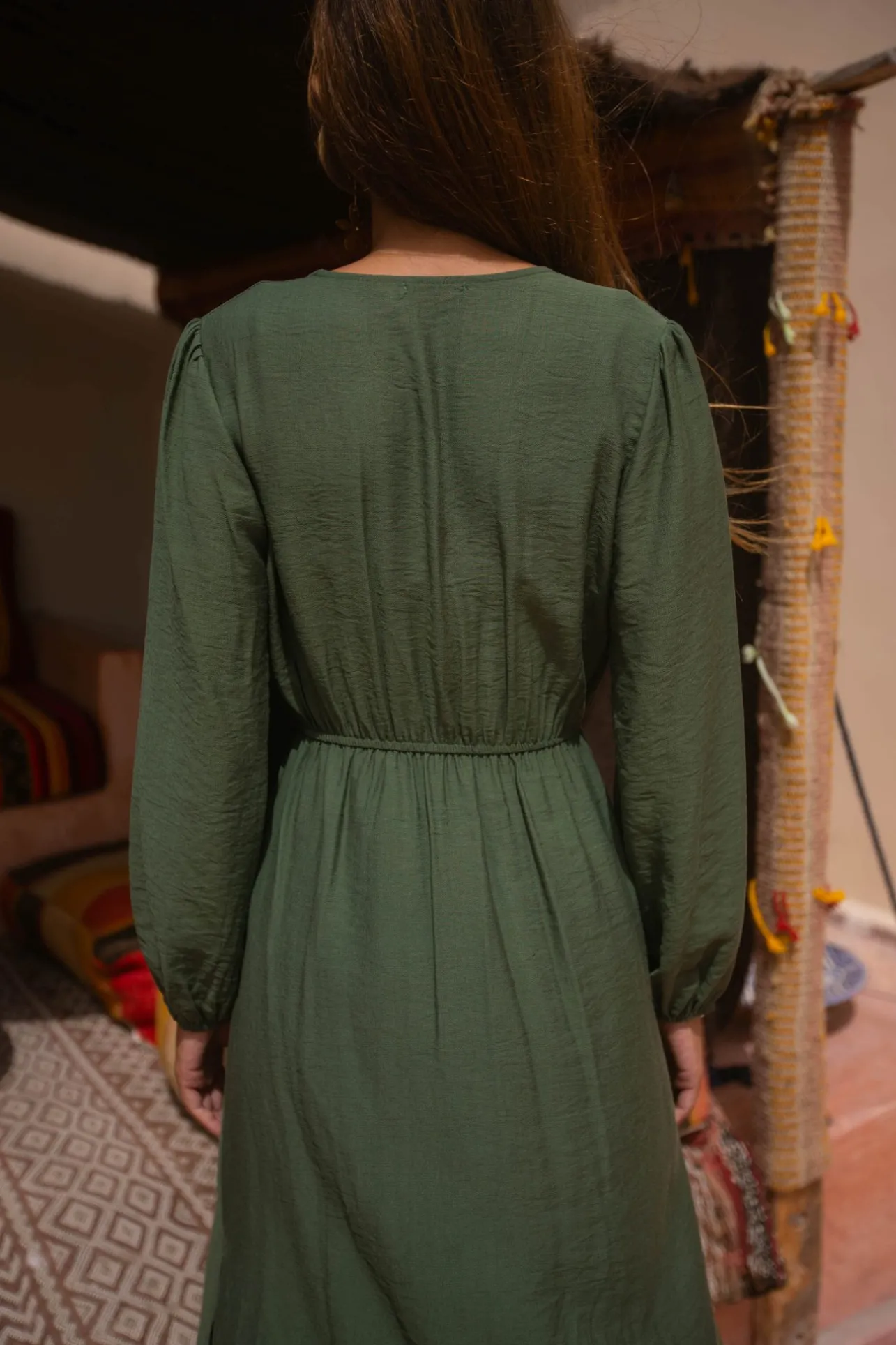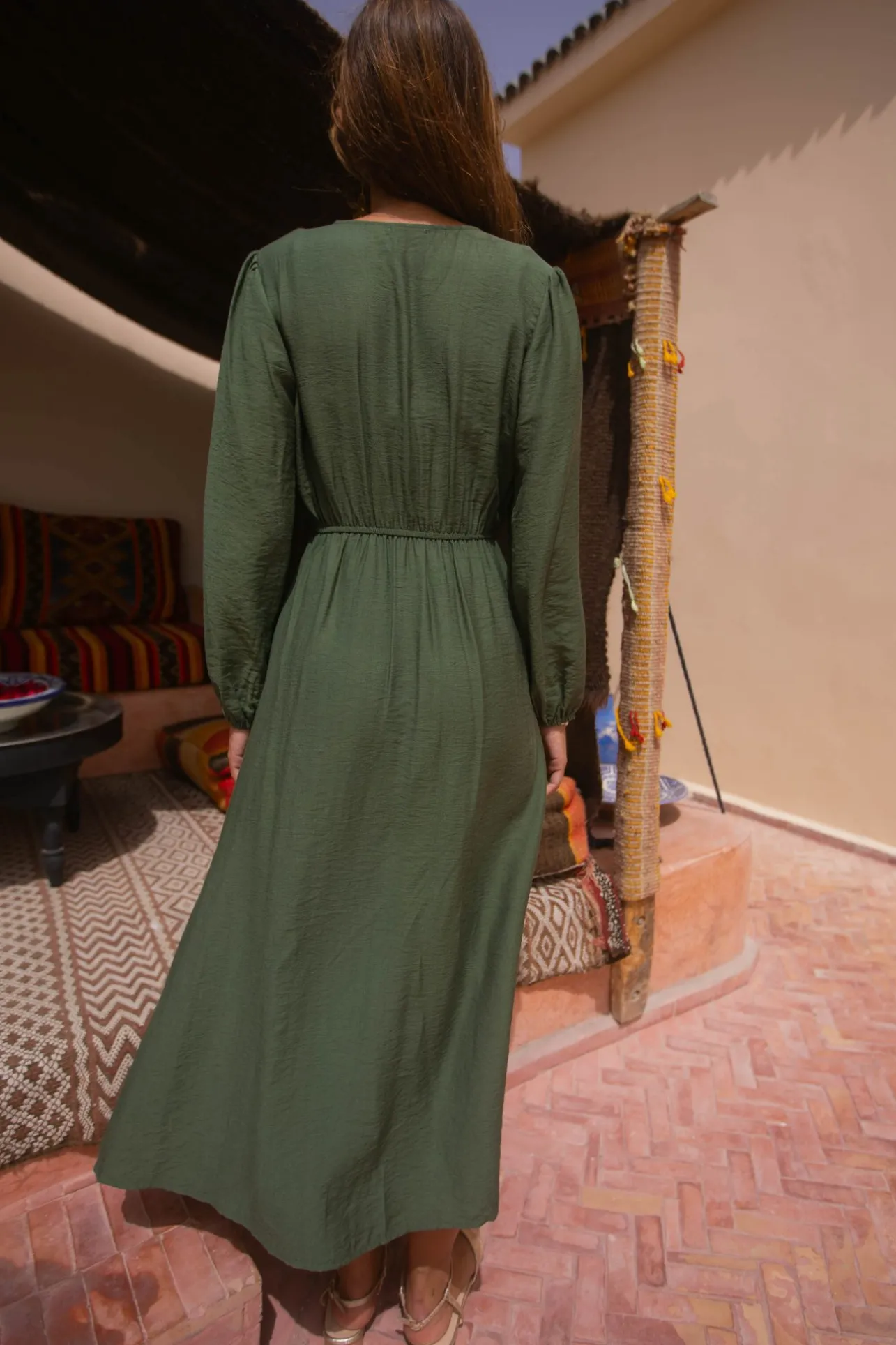 – Robe longue col V– Manches longues resserrées aux poignets– Fendue sur le côté– Coupe fluid…