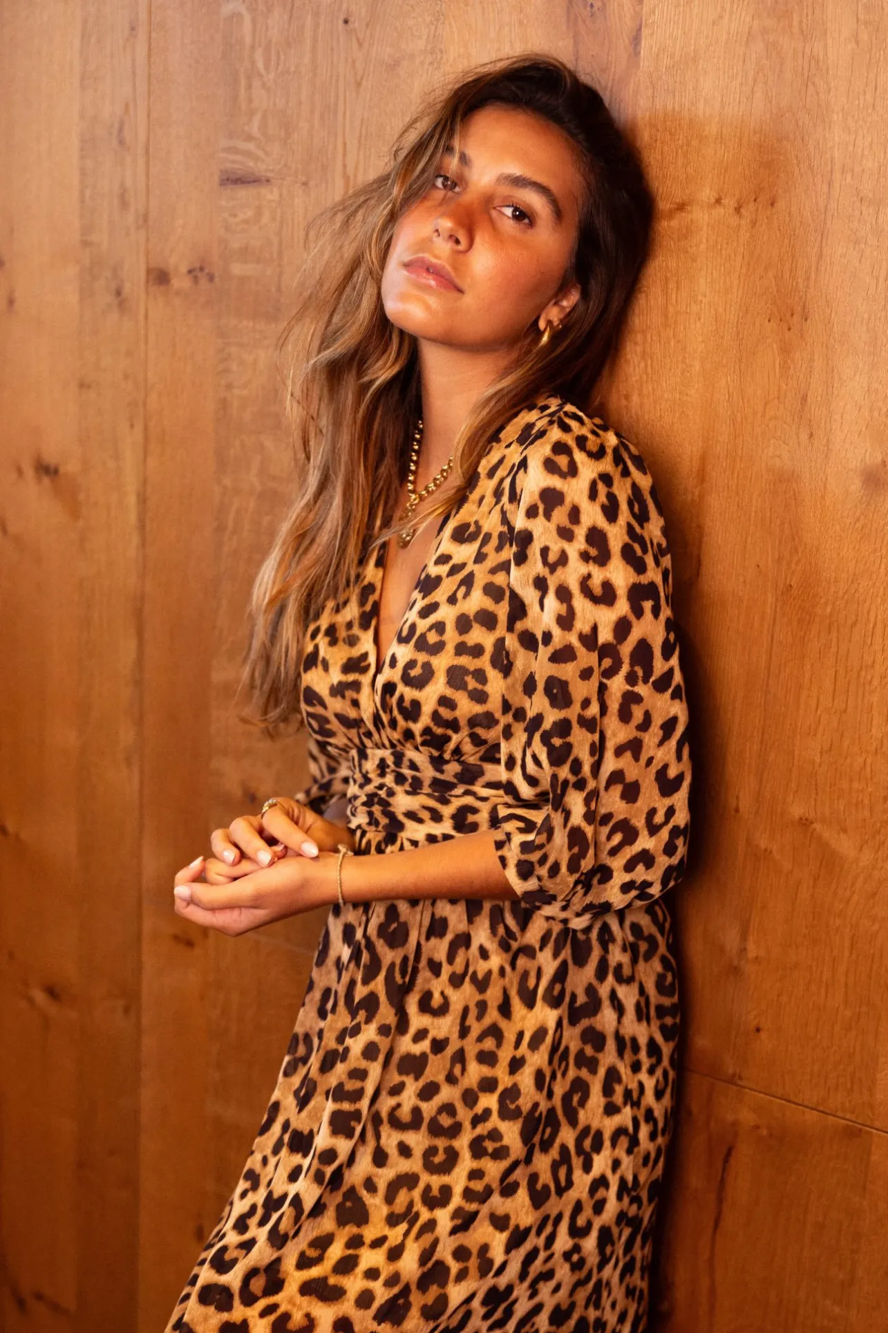 Robe col en V– Manches 3/4– Coupe fluide– Élastique à l’arrière de la taille– Doublée&…
