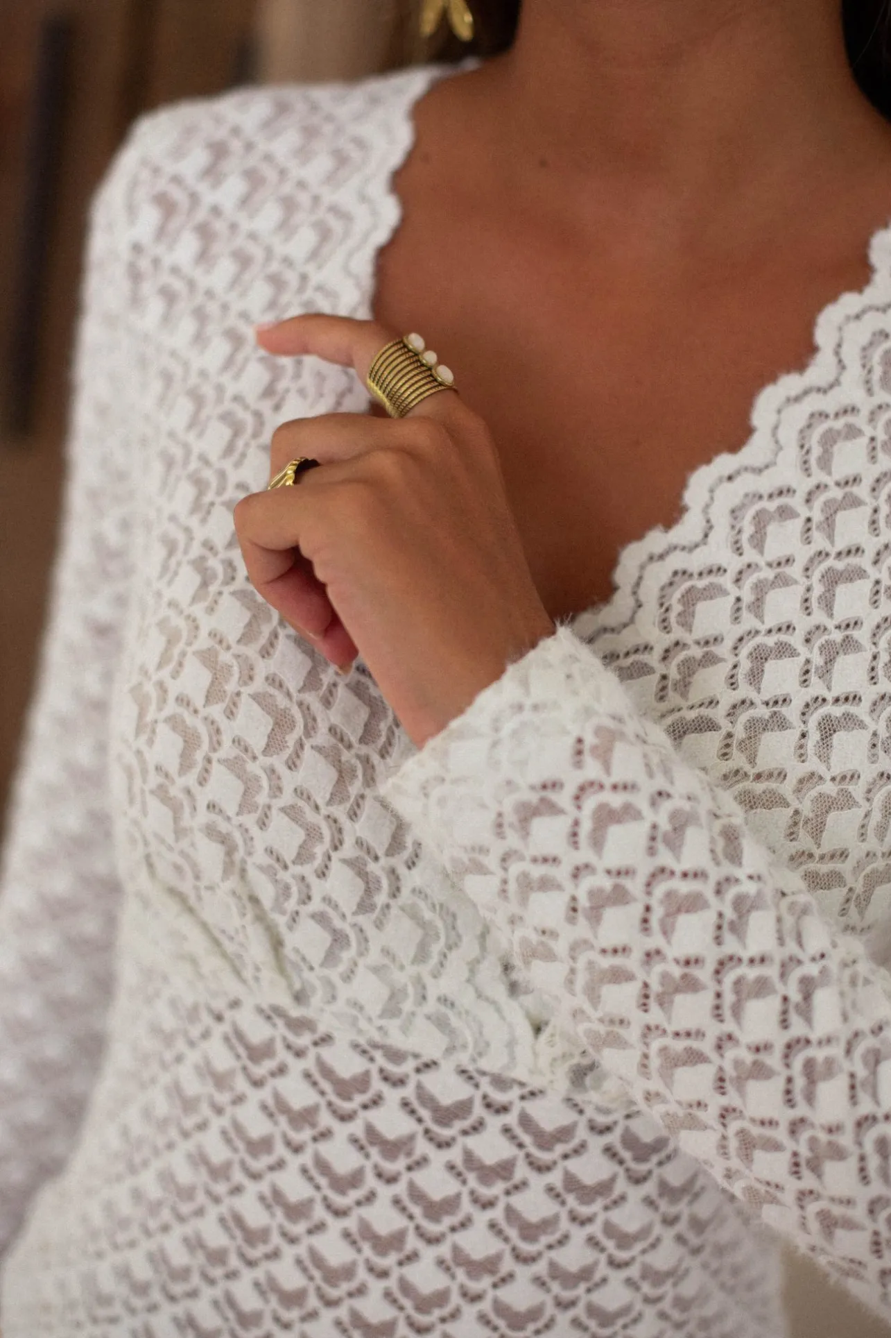 – Body en dentelle– Fermeture par boutons pressions– Bas forme culotte– Couleur : écruLe manneq…
